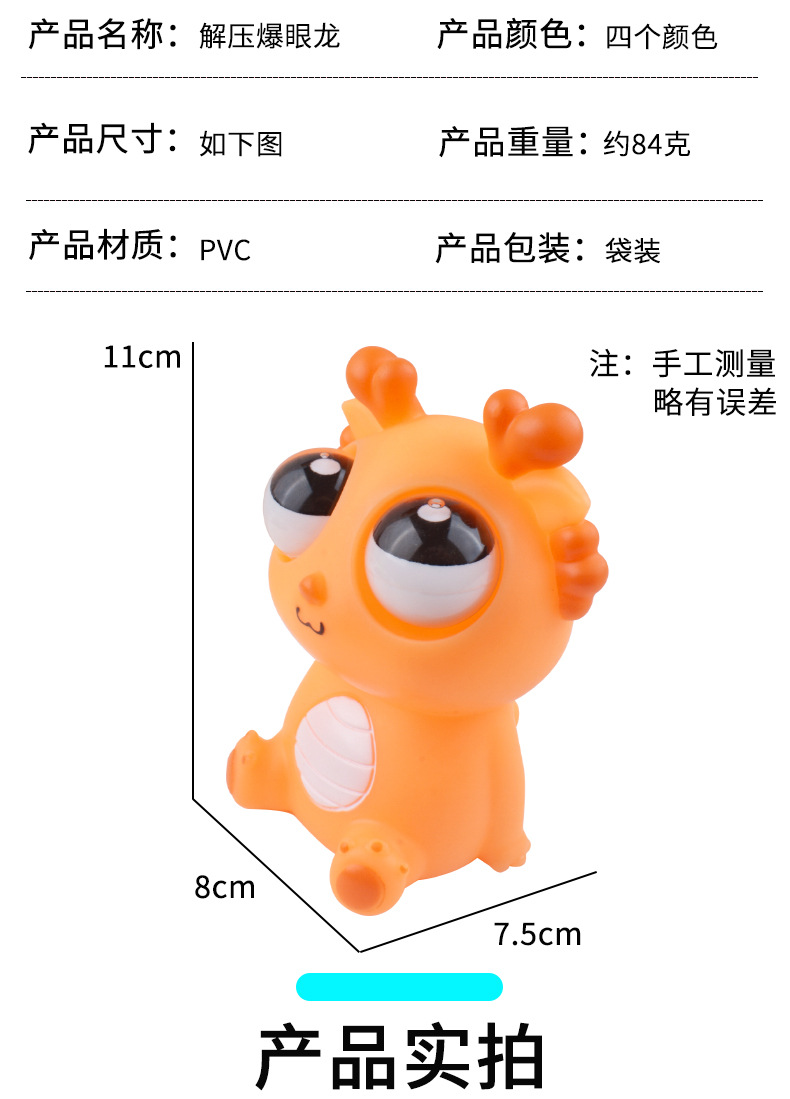 爆眼龙捏捏乐瞪眼小龙公仔挤压搞怪发泄创意爆款减压玩具地摊批发