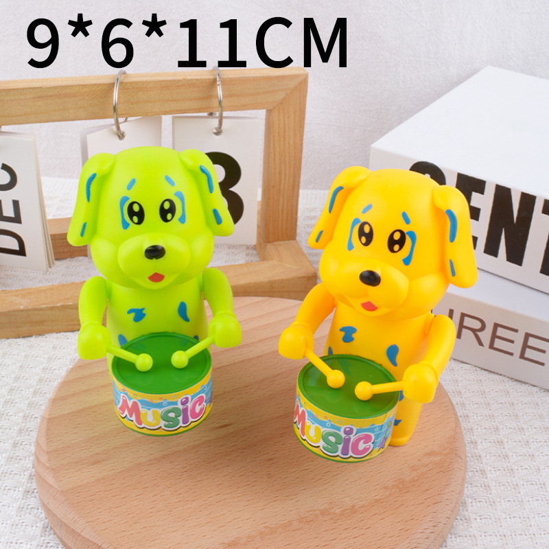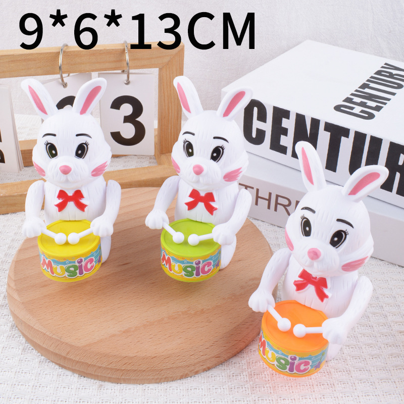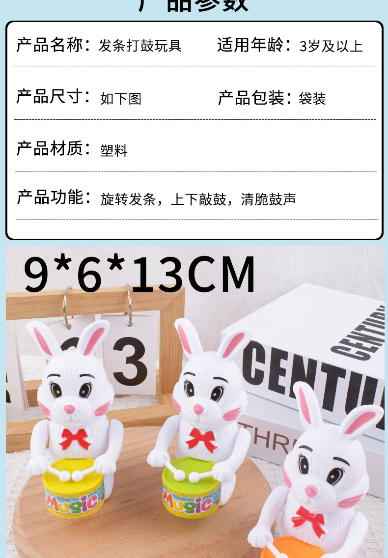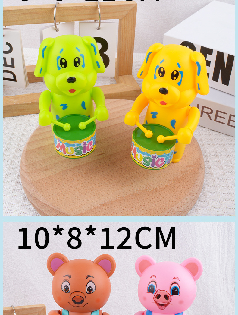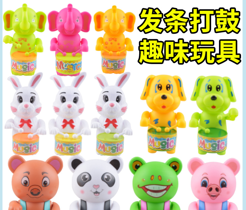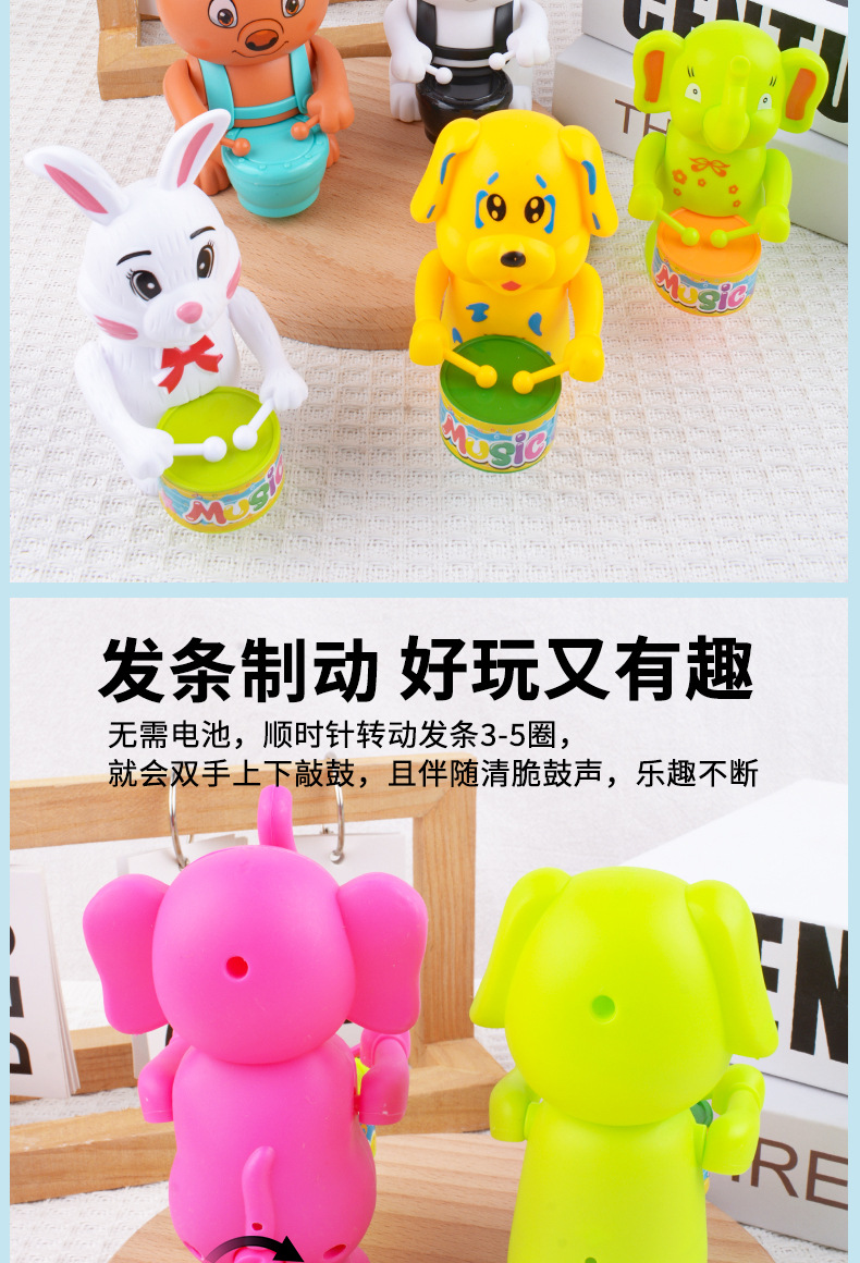 儿童上链发条打鼓兔子玩具打鼓狗象上弦敲鼓卡通动物玩具地摊批发