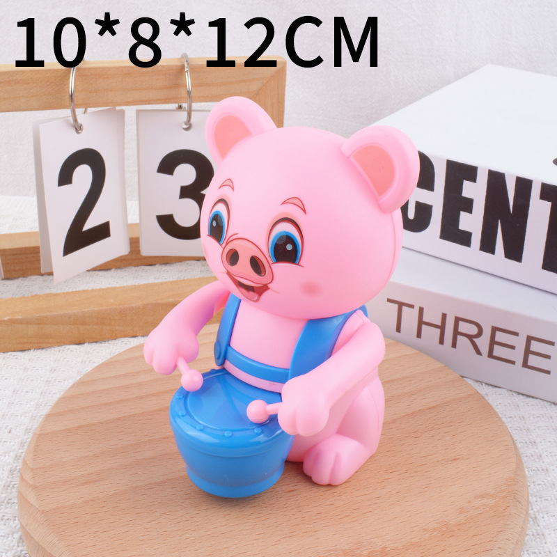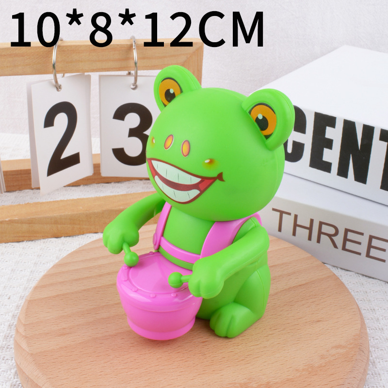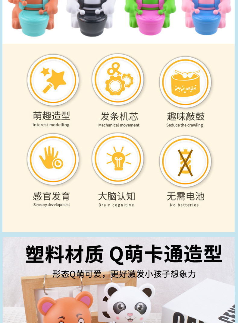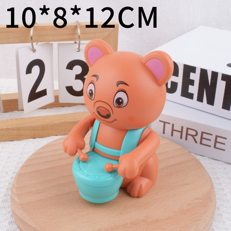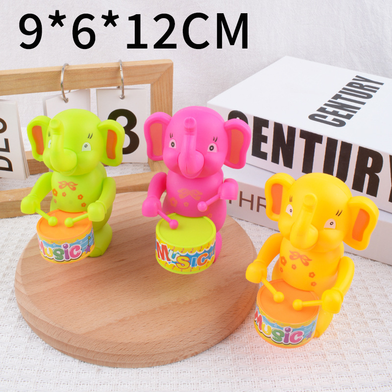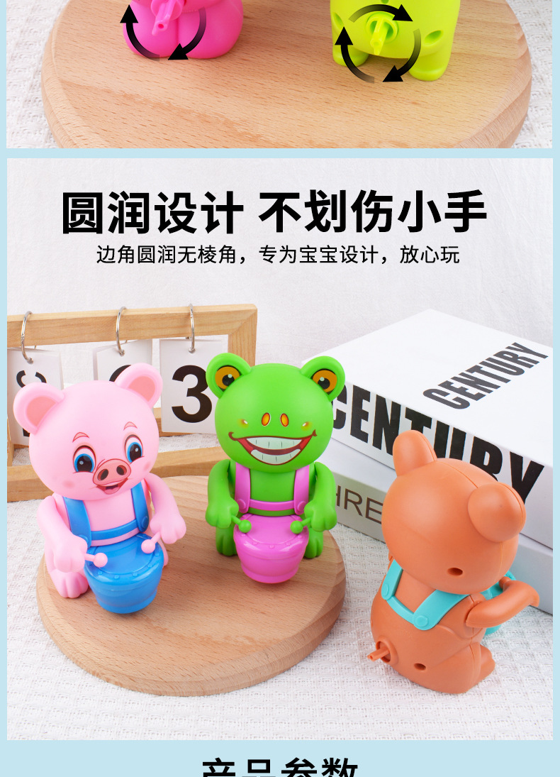 儿童上链发条打鼓兔子玩具打鼓狗象上弦敲鼓卡通动物玩具地摊批发