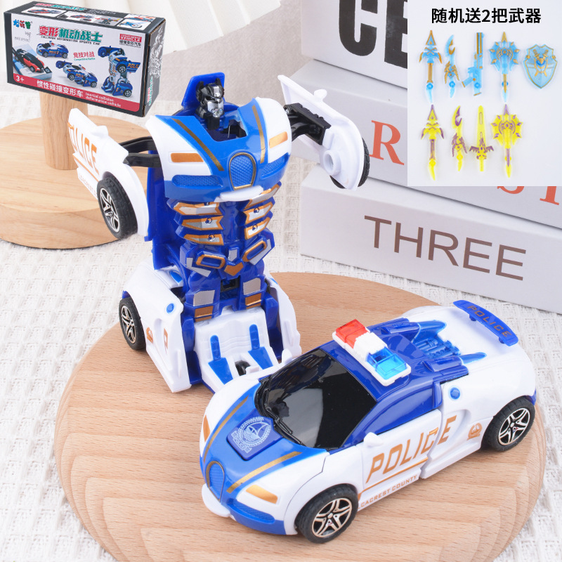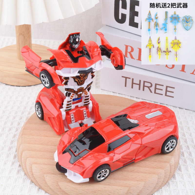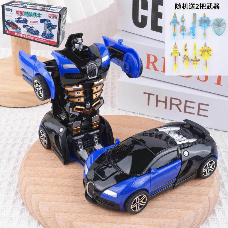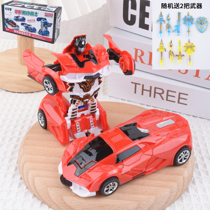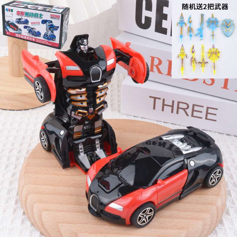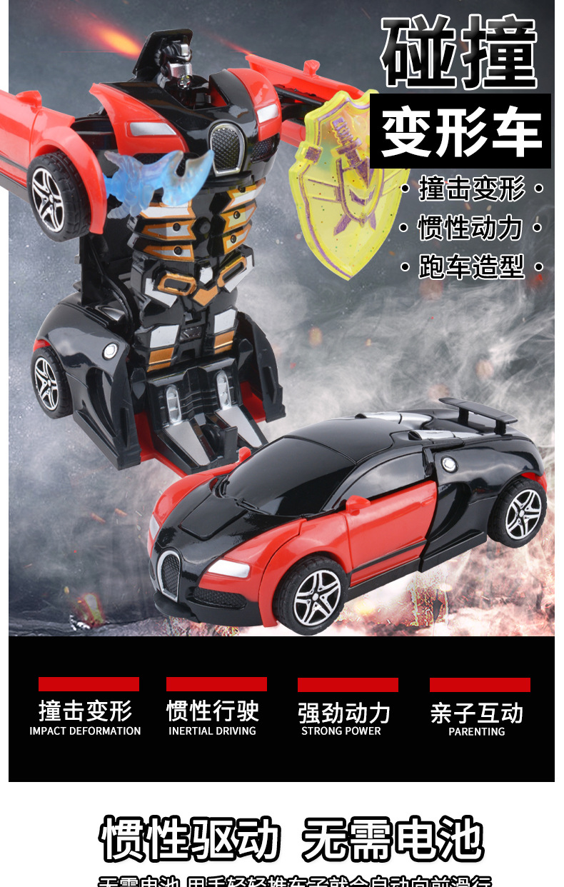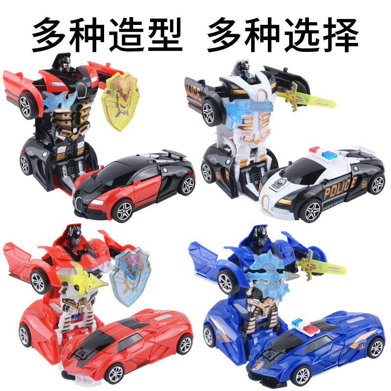 儿童变形车玩具惯性碰撞一键变形男孩汽车模型变形机器人地摊批发