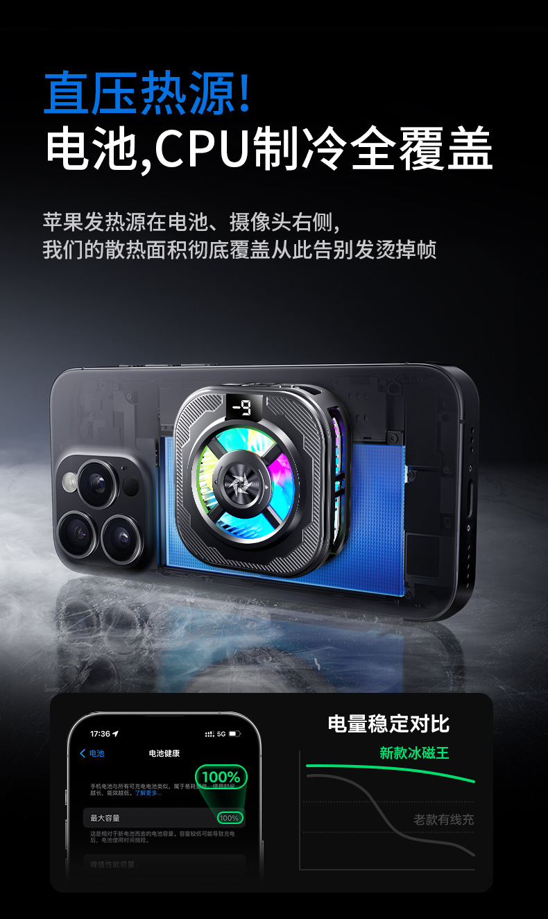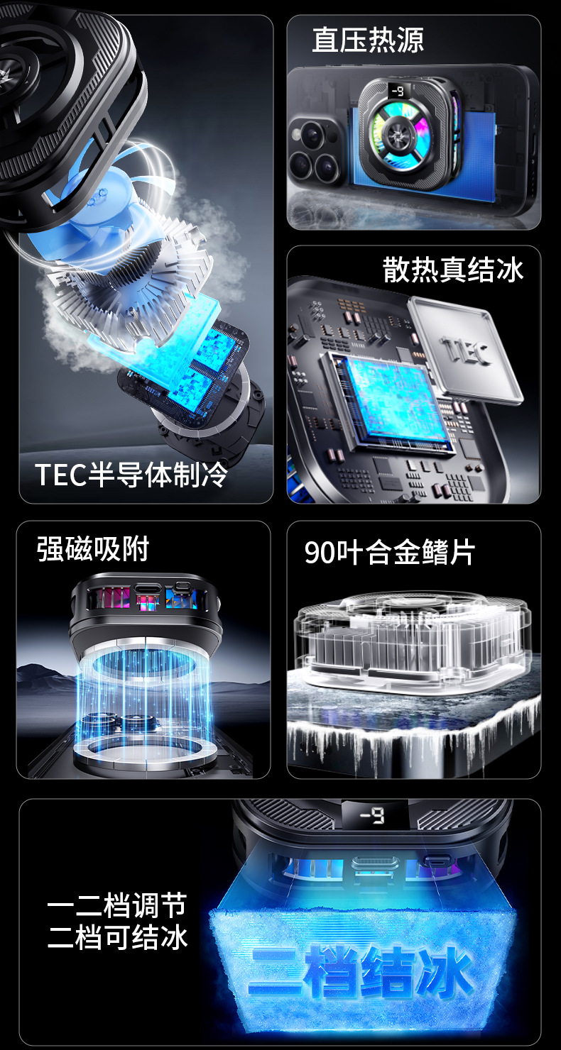 SL39数显结冰款手机散热器半导体制冷急速结冰打游戏直播降温神器