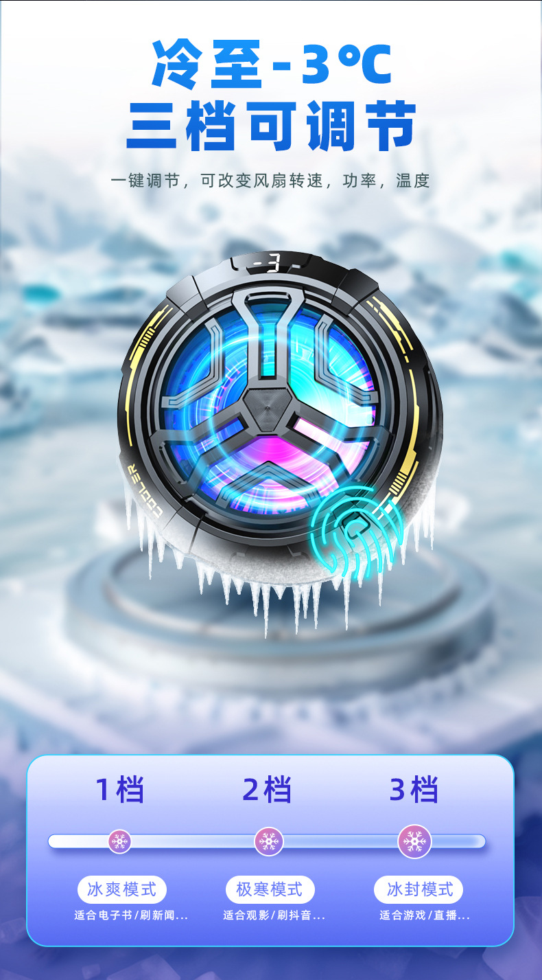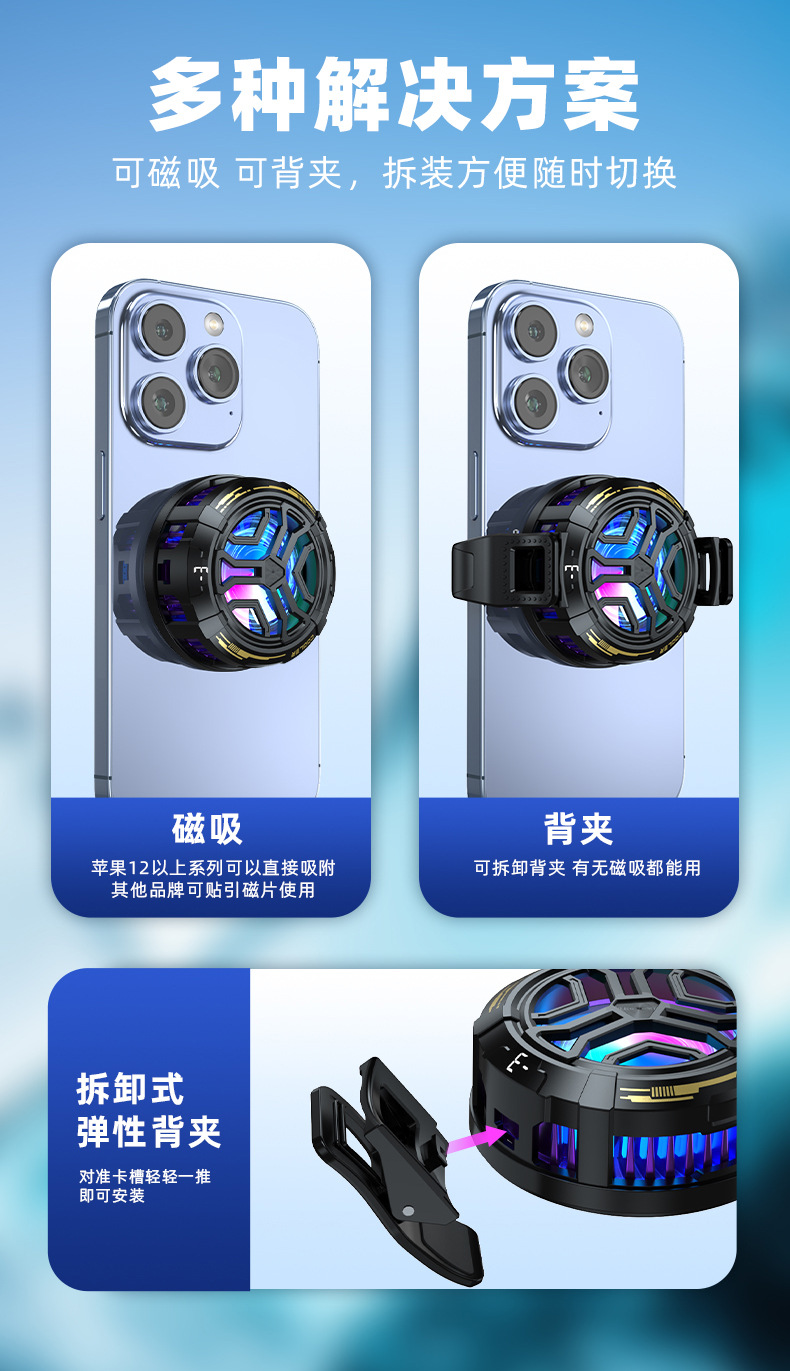24新款半导体制冷磁吸手机散热器三档调节可拆卸背夹游戏直播通用