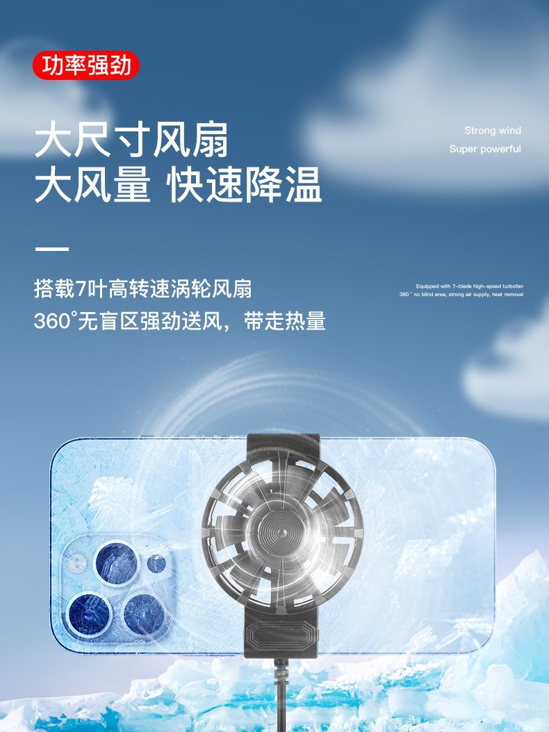 X16手机散热器带灯光冰冻散热风冷散热 夏天拒绝手机发烫散热器