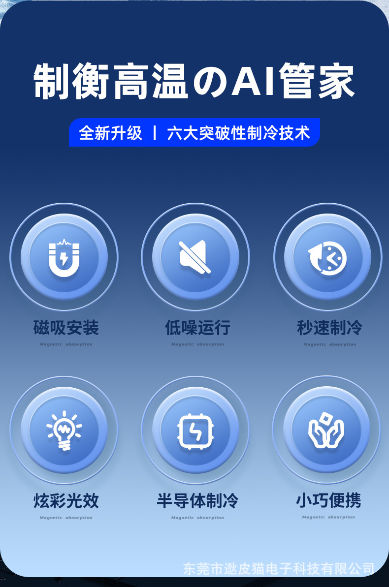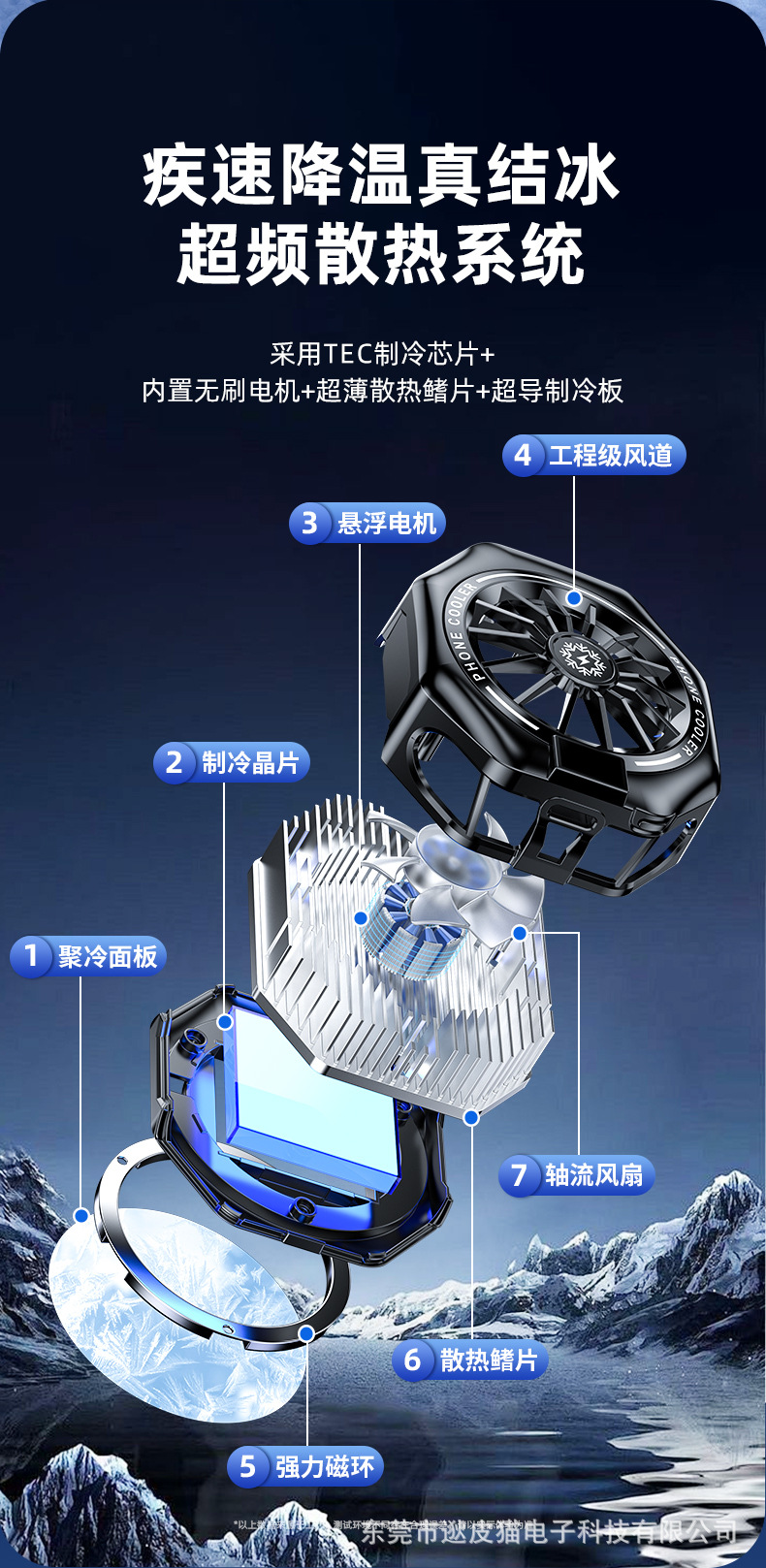 2025新款磁吸手机散热器 可结冰款半导体制冷 直播降温带数显背夹