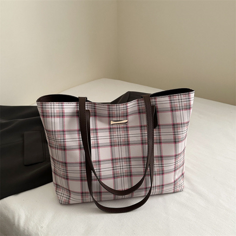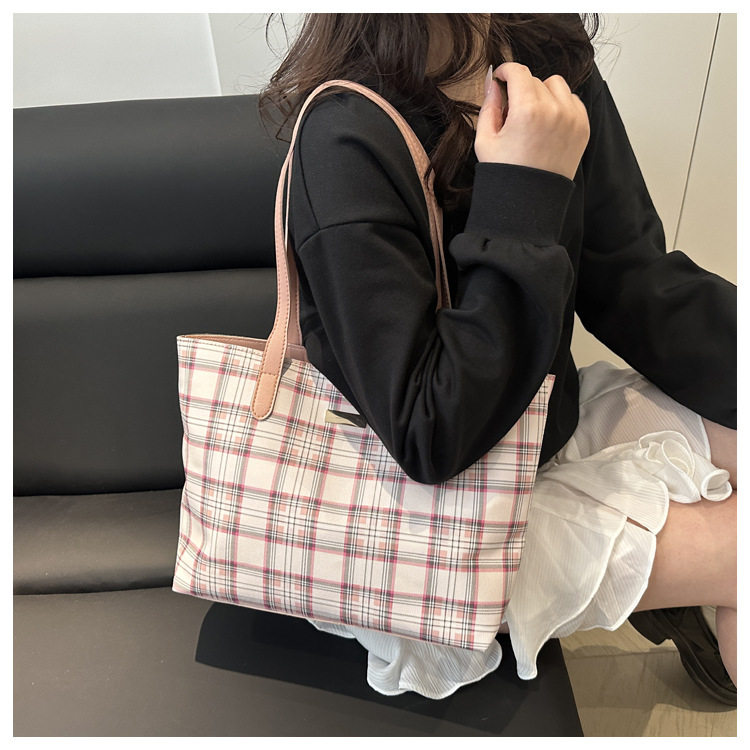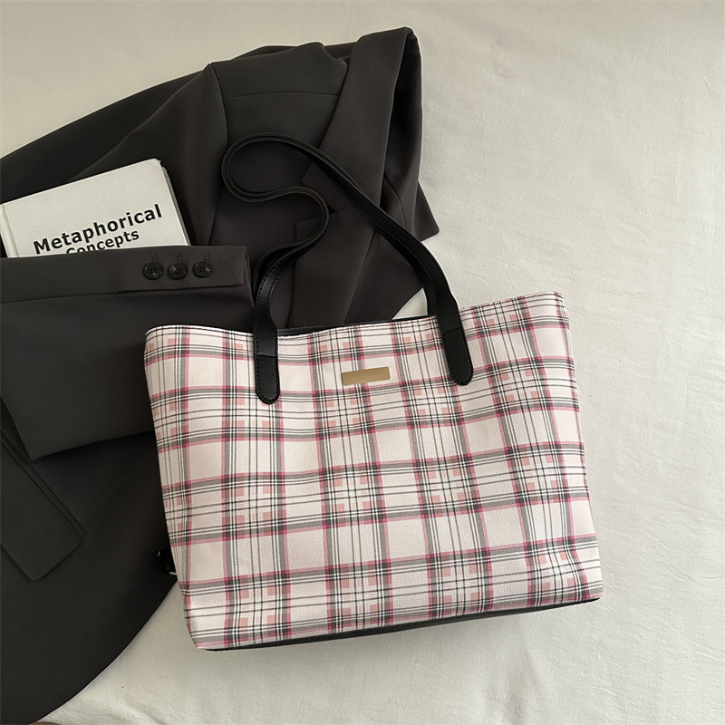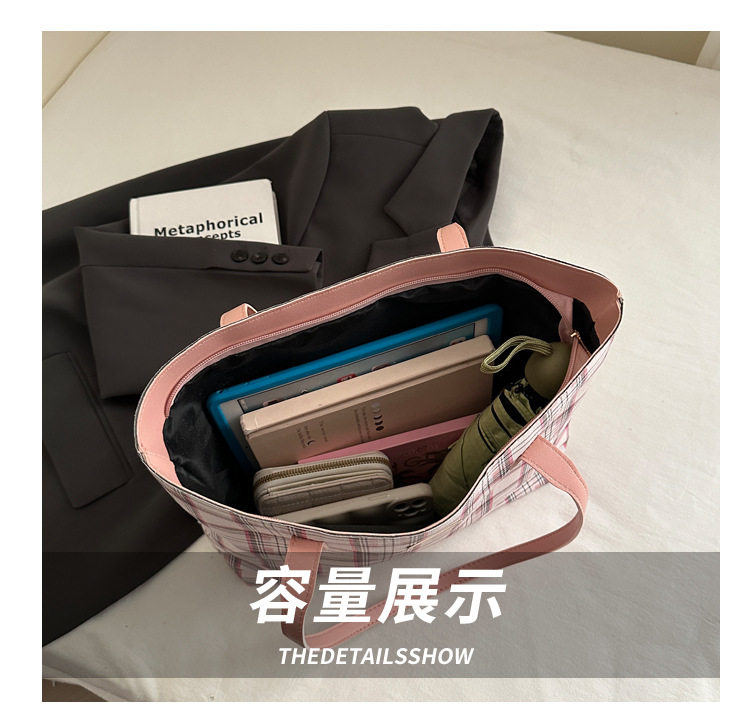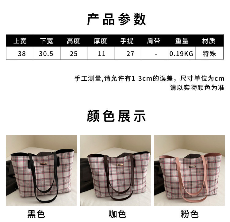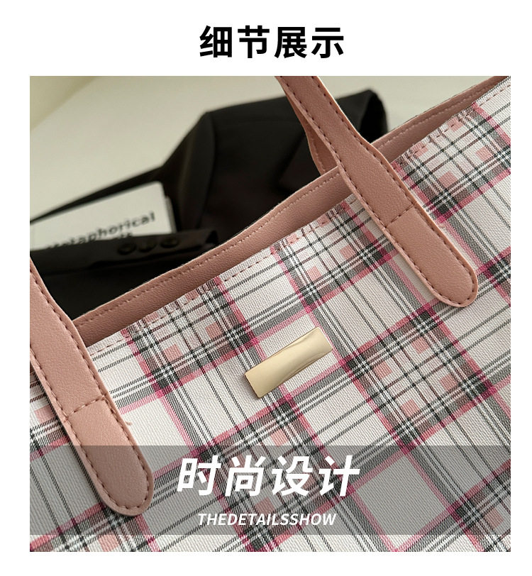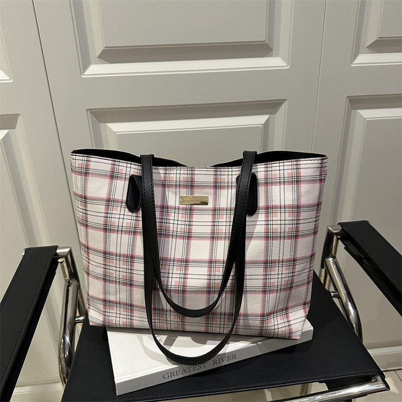 格纹印花托特包大容量单肩包女韩版购物袋通用款女包有日常搭配