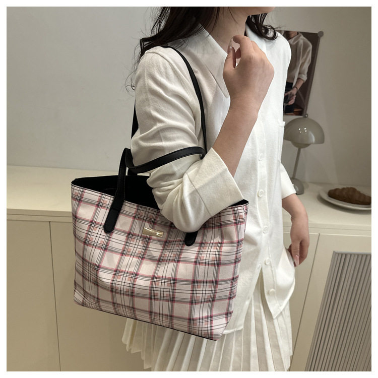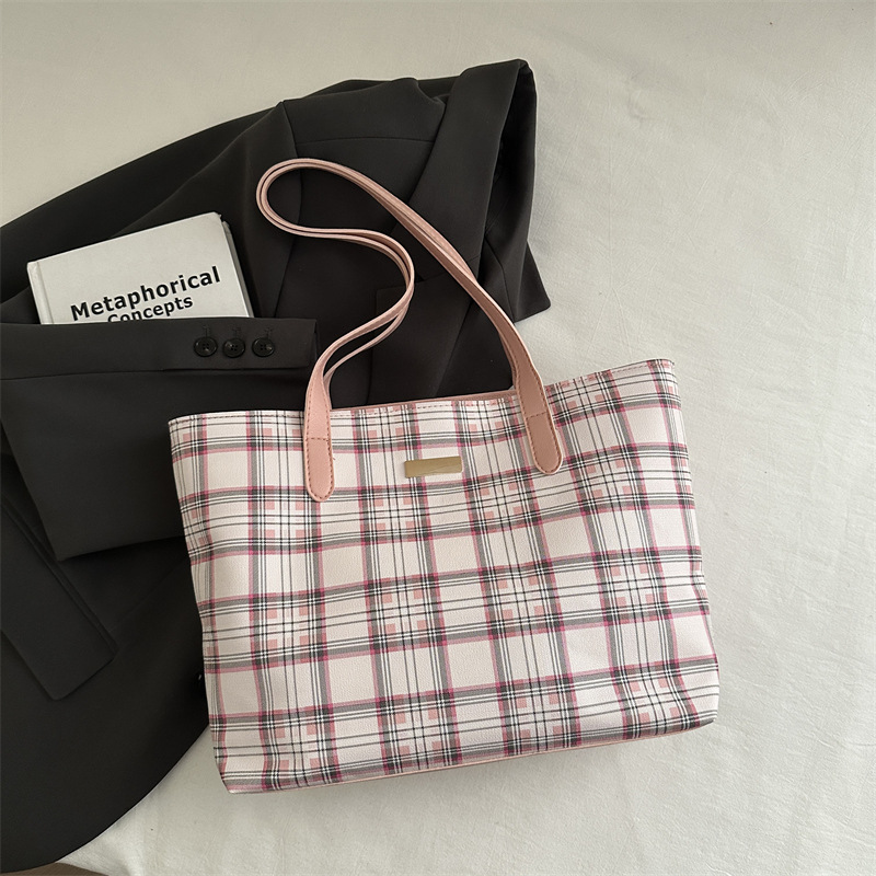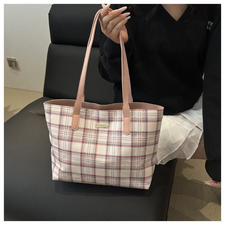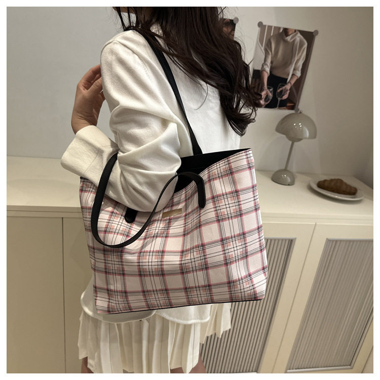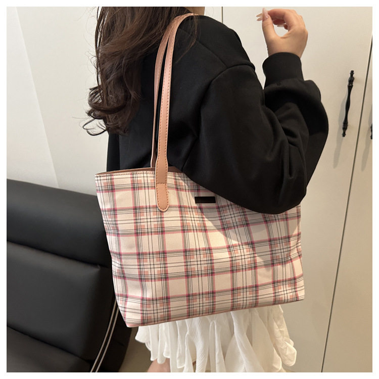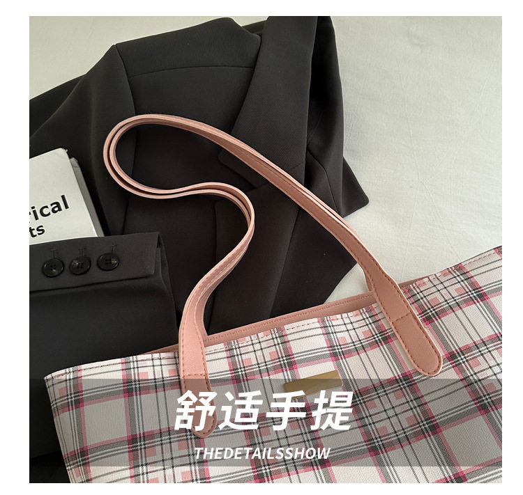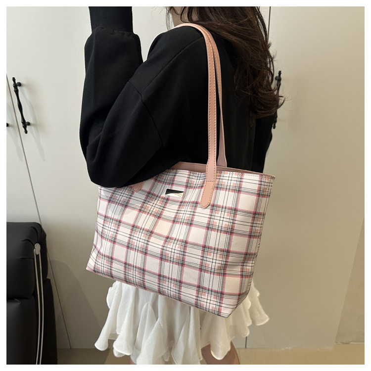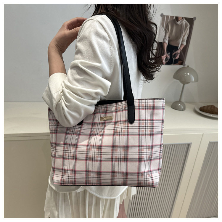 格纹印花托特包大容量单肩包女韩版购物袋通用款女包有日常搭配