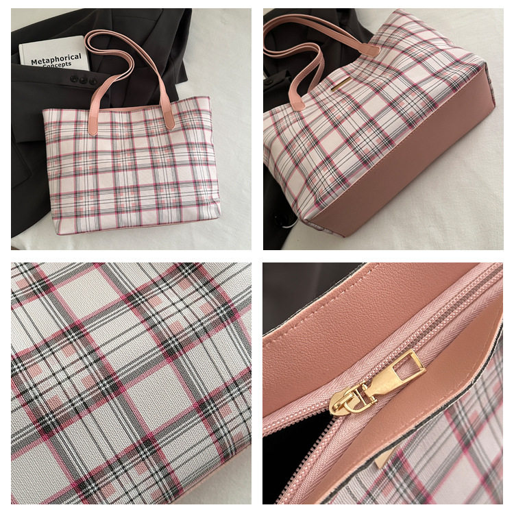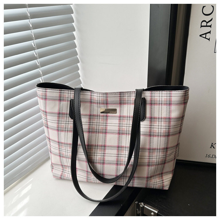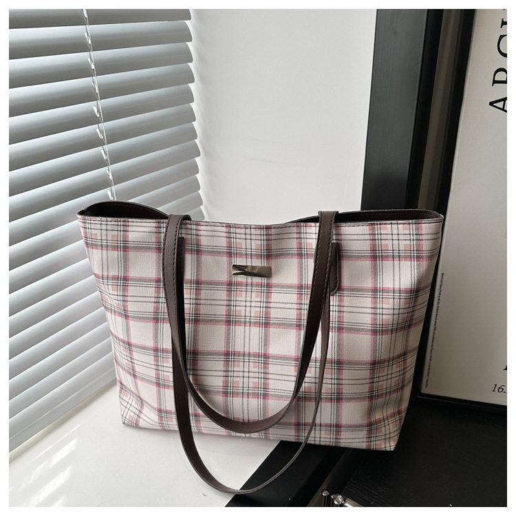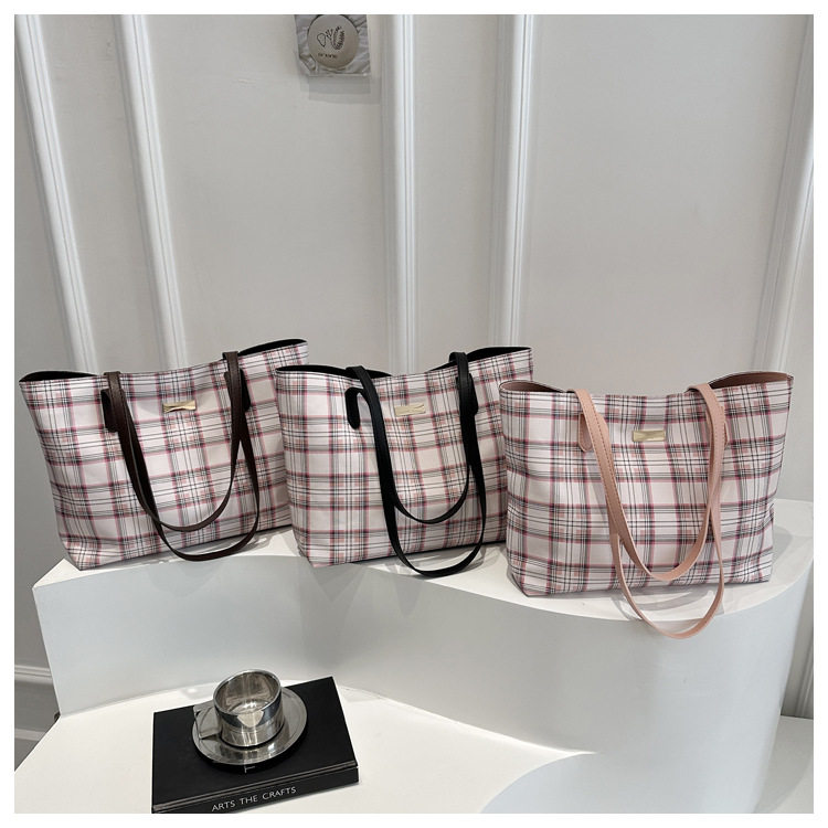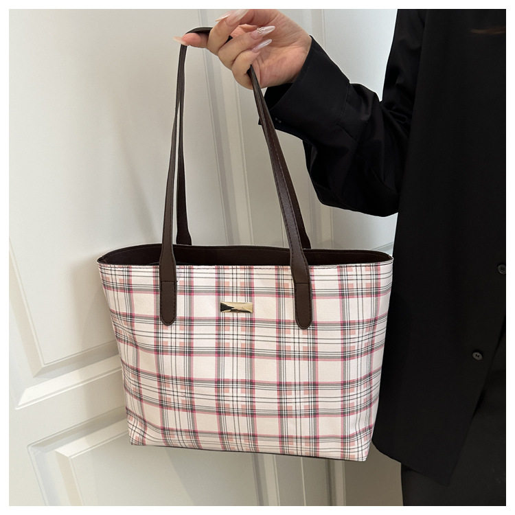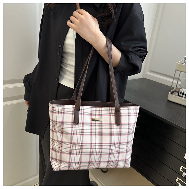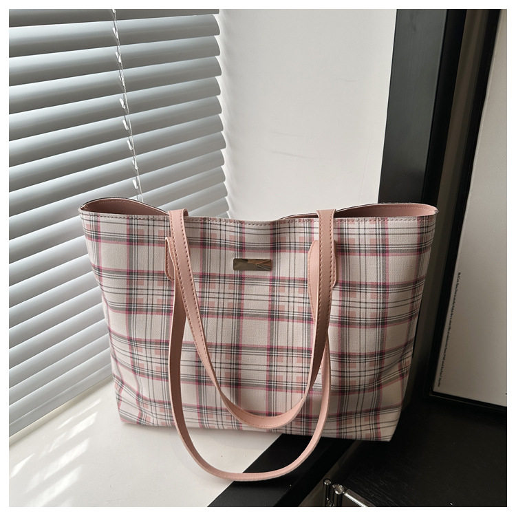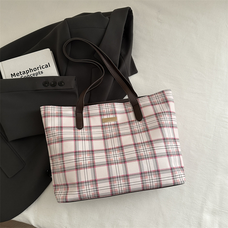 格纹印花托特包大容量单肩包女韩版购物袋通用款女包有日常搭配