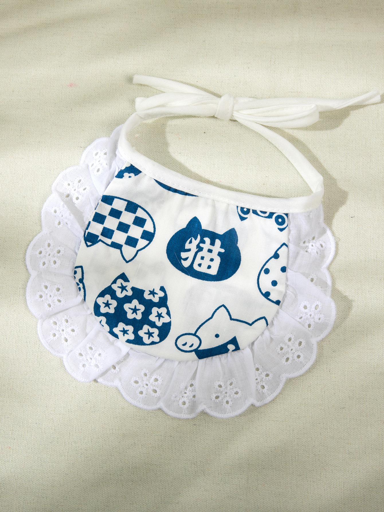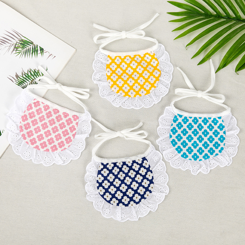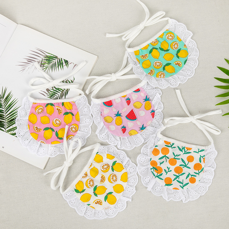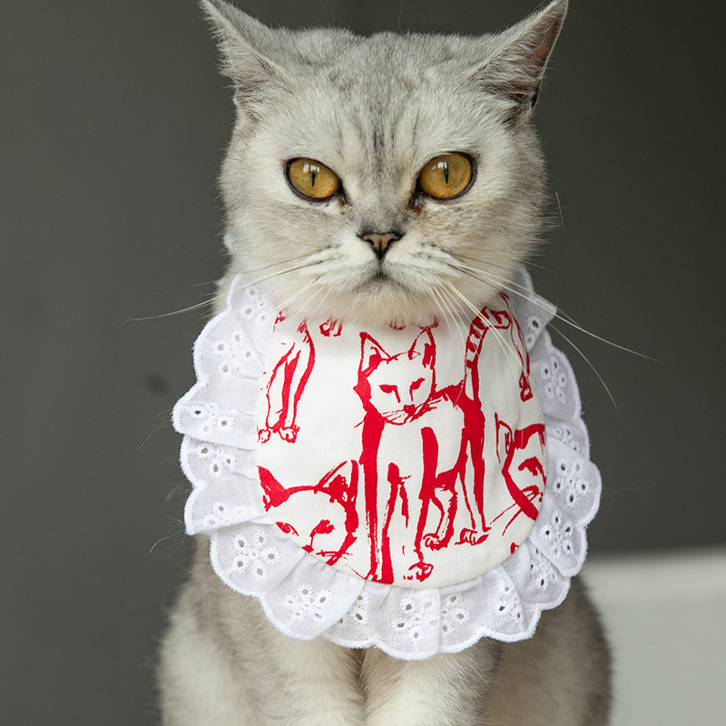 韩式格子小花围兜猫咪围巾宠物狗狗口水巾比熊泰迪博美三角巾项圈