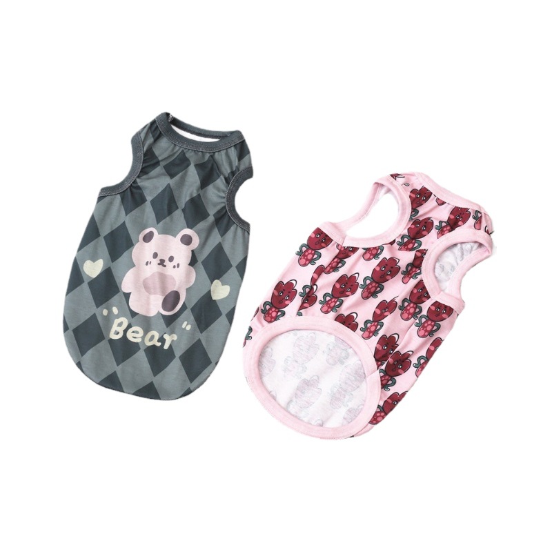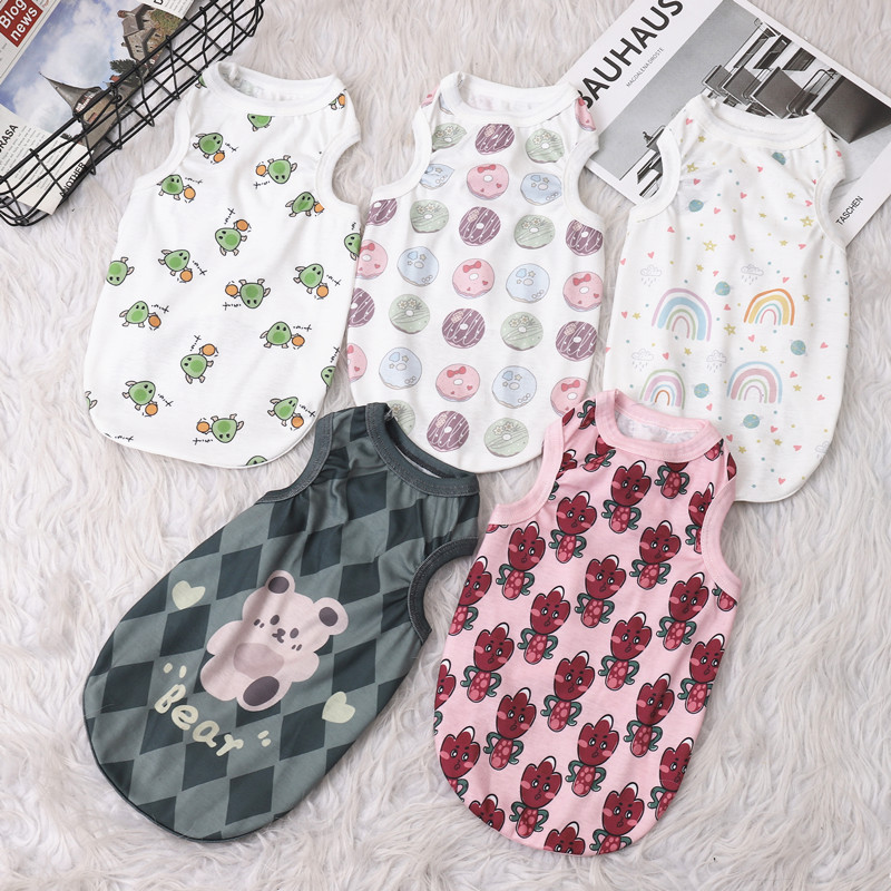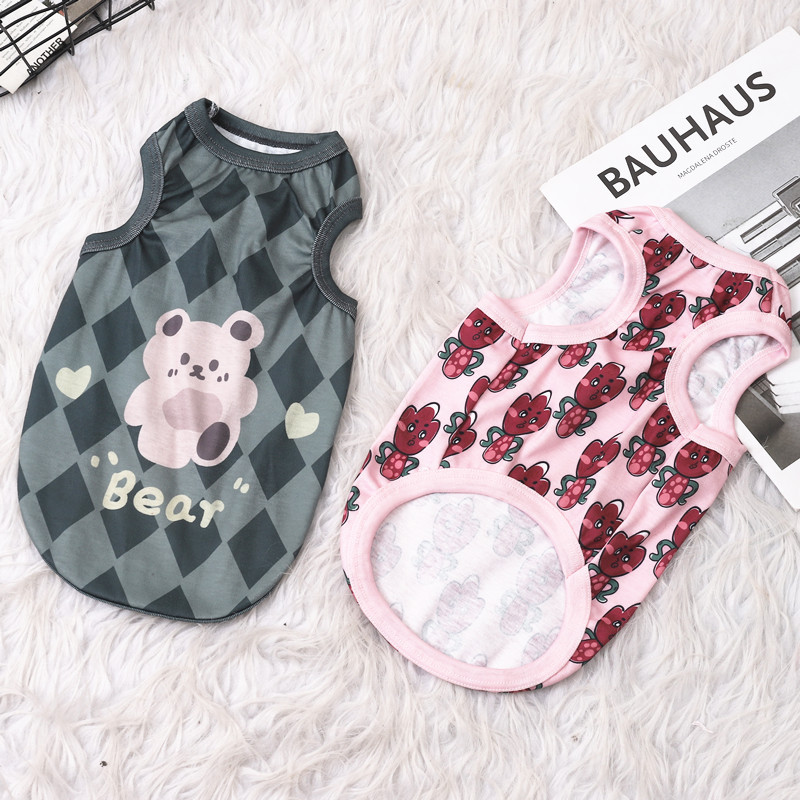 春夏季透气舒适宠物衣服背心欧美卡通猫咪泰迪比熊博美小狗狗衣服