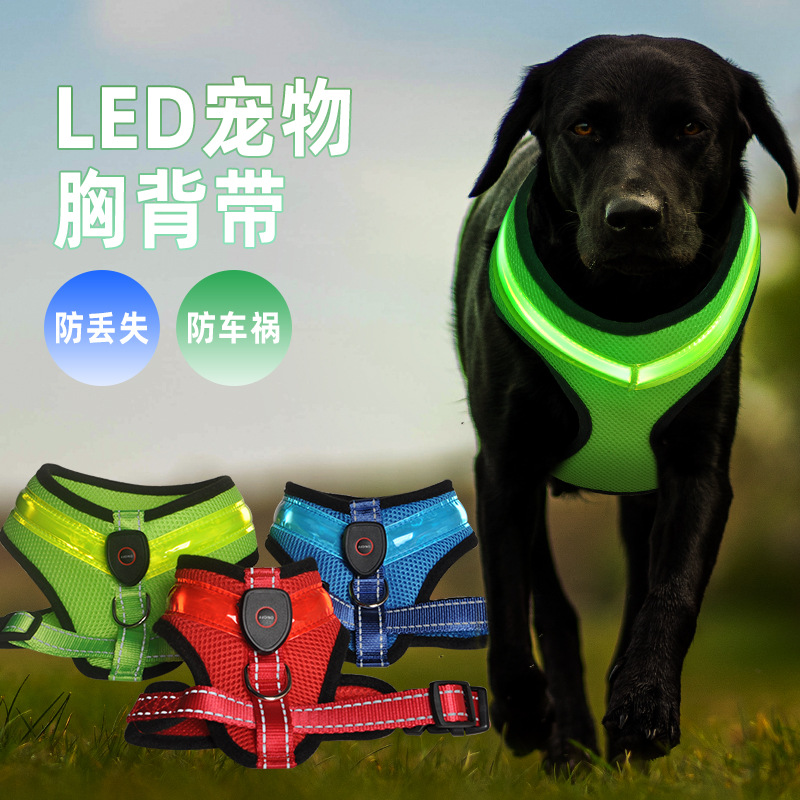 宠物发光狗背心 LED闪光狗狗外出牵引衣服 USB充电发光胸背带背心