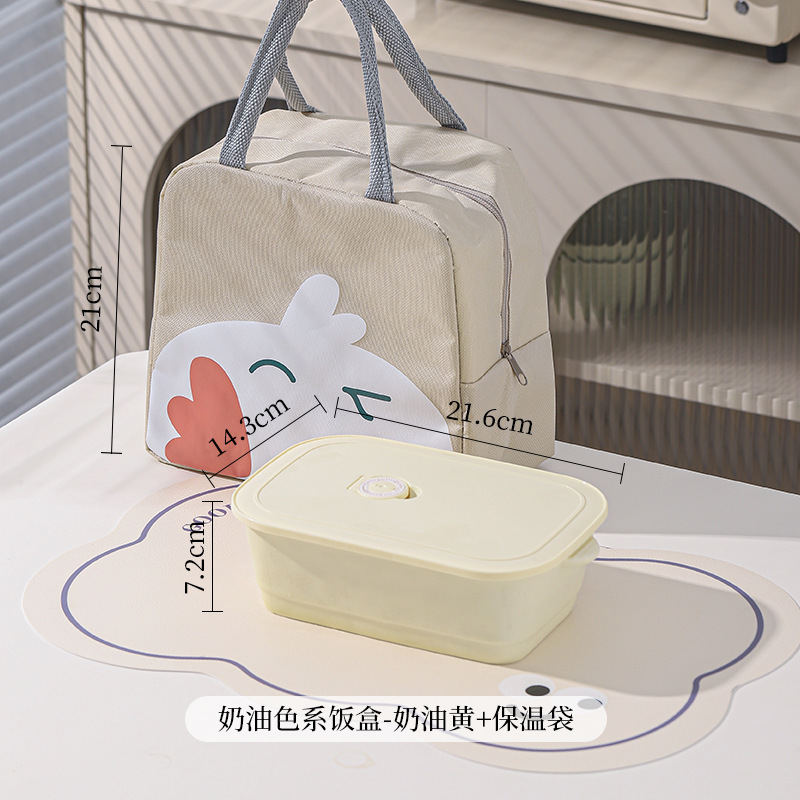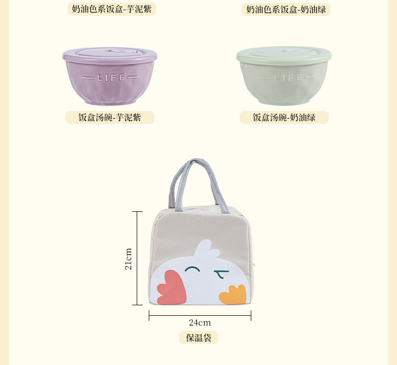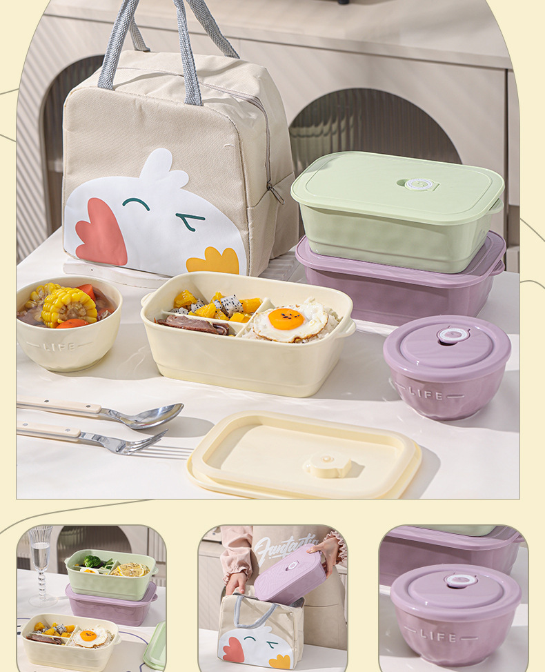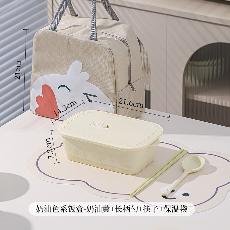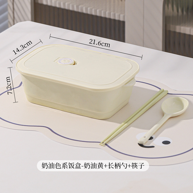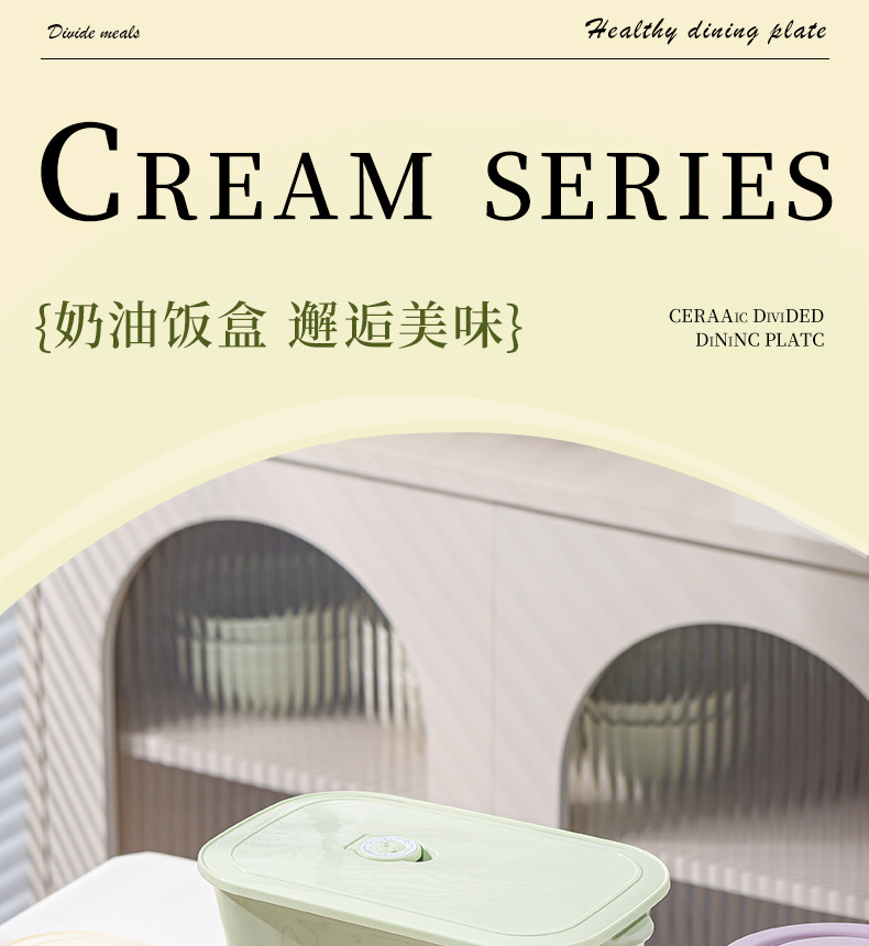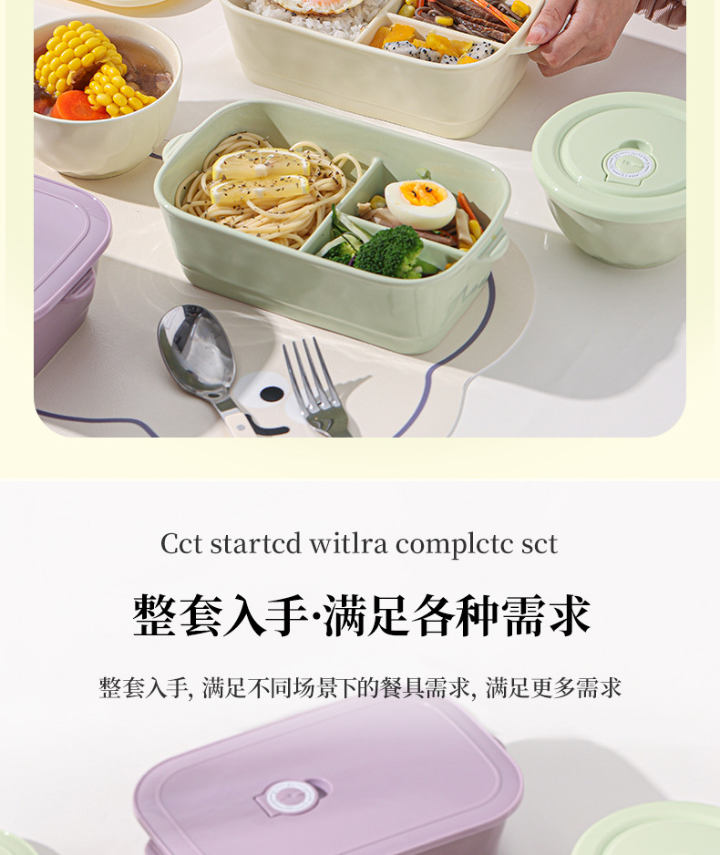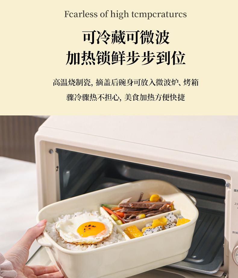 奶油风带盖便捷式陶瓷分格饭盒微波炉加热学生上班族专用便当盒