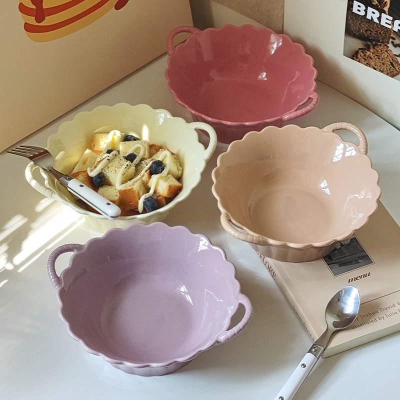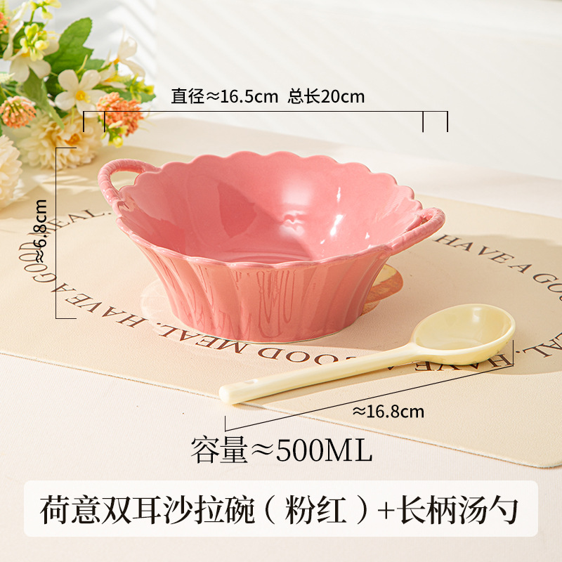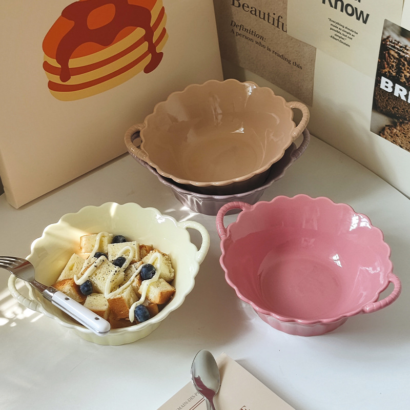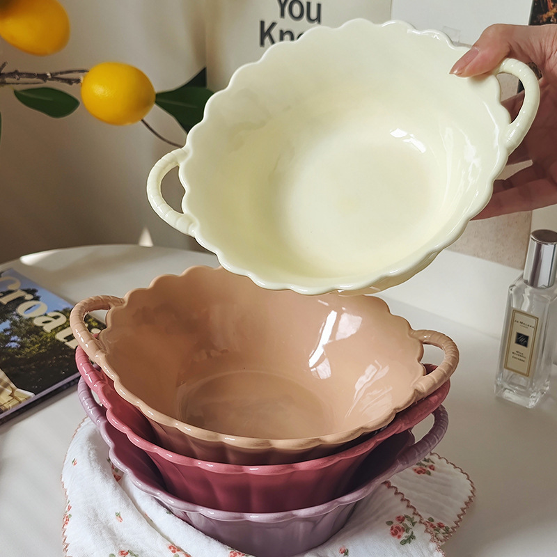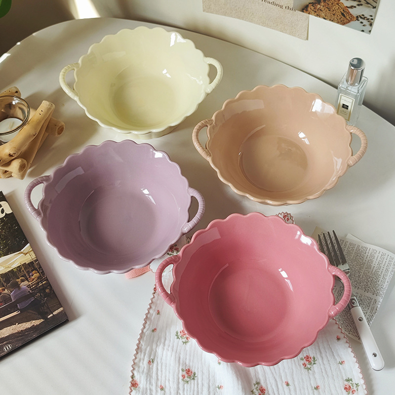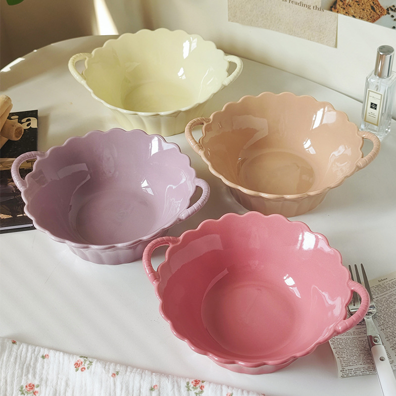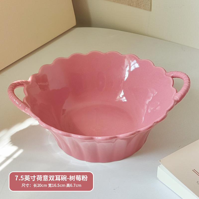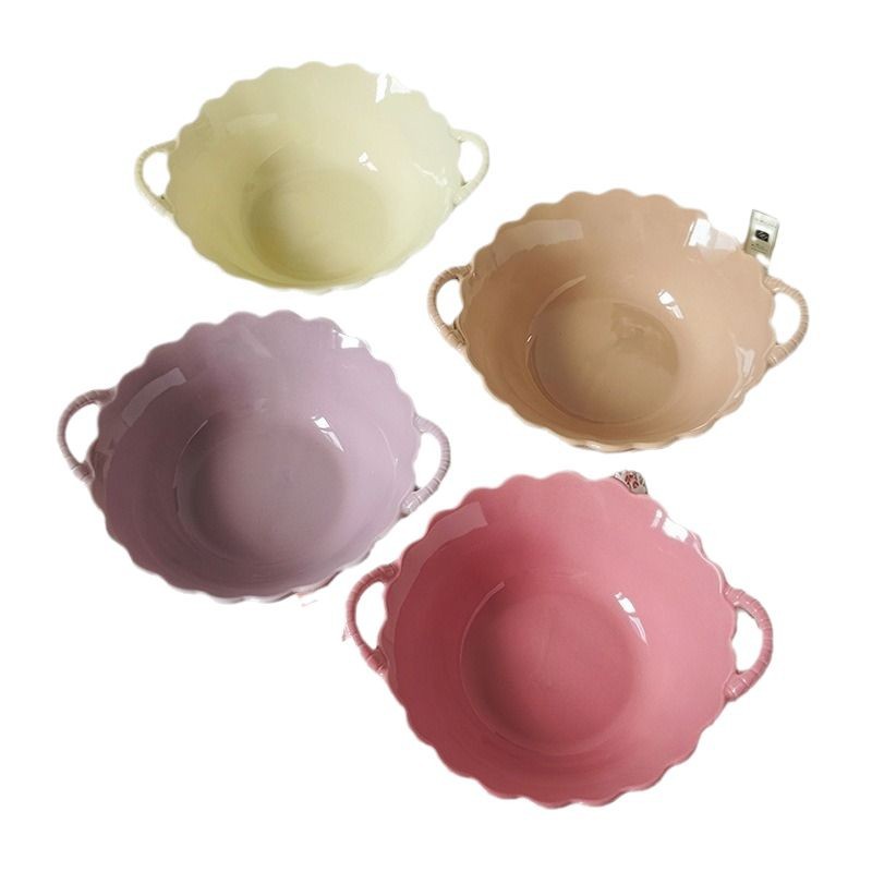 高颜值奶油ins风陶瓷双耳碗清新釉下彩陶瓷餐具沙拉碗泡面碗汤碗