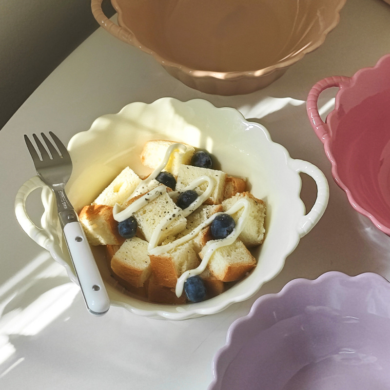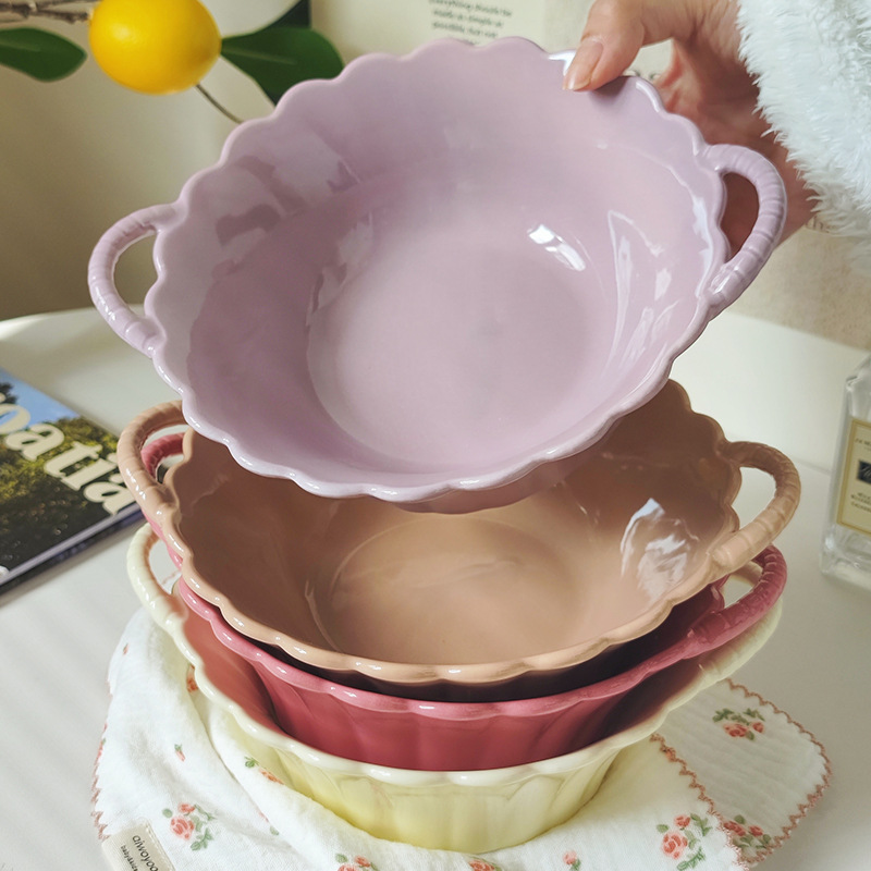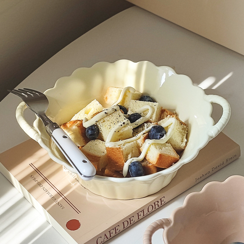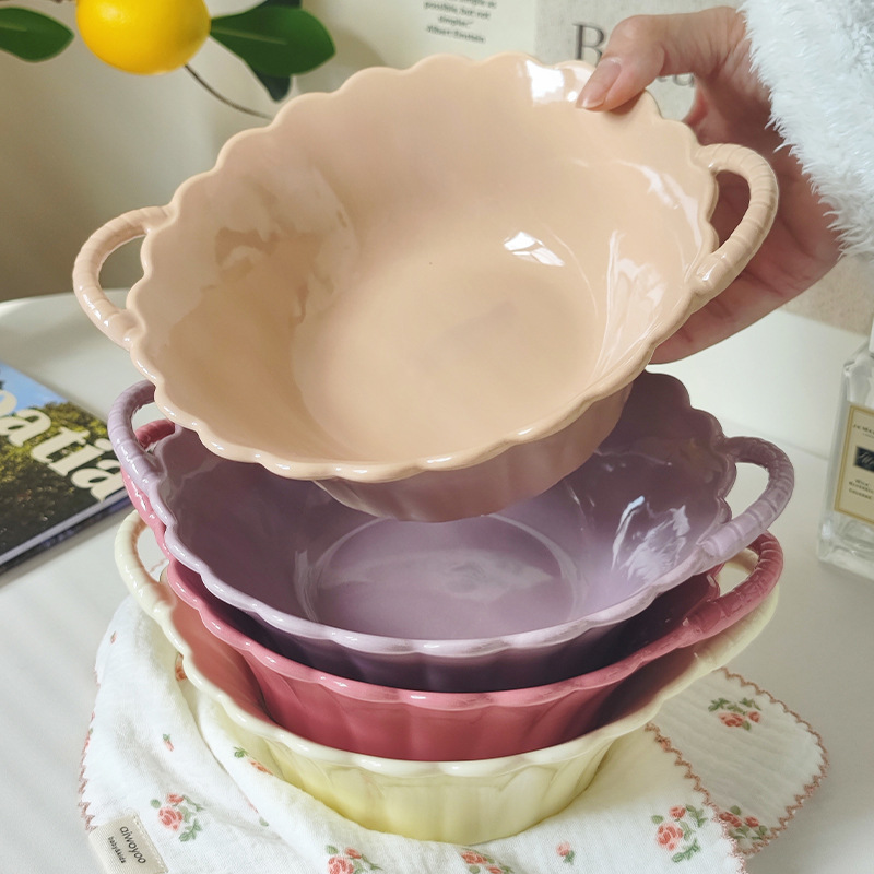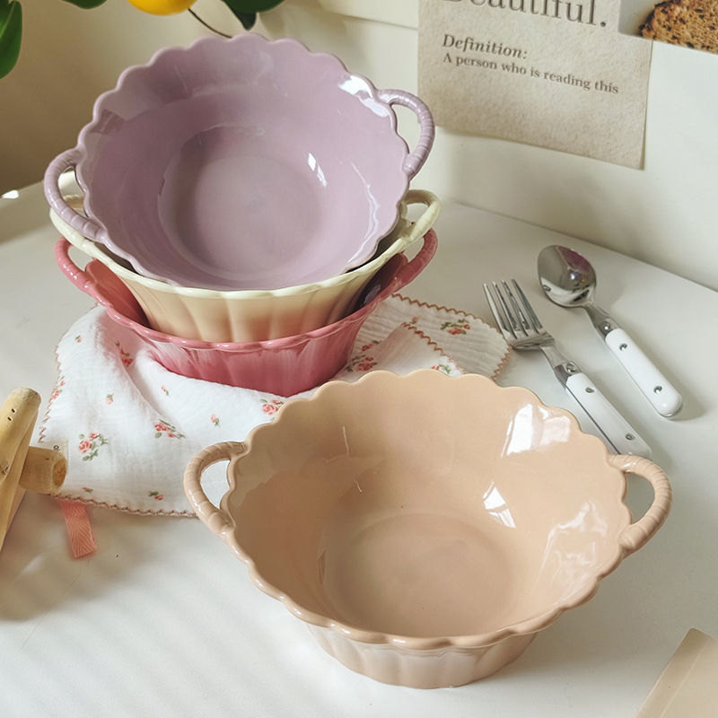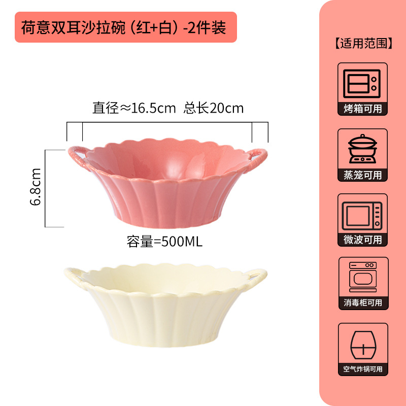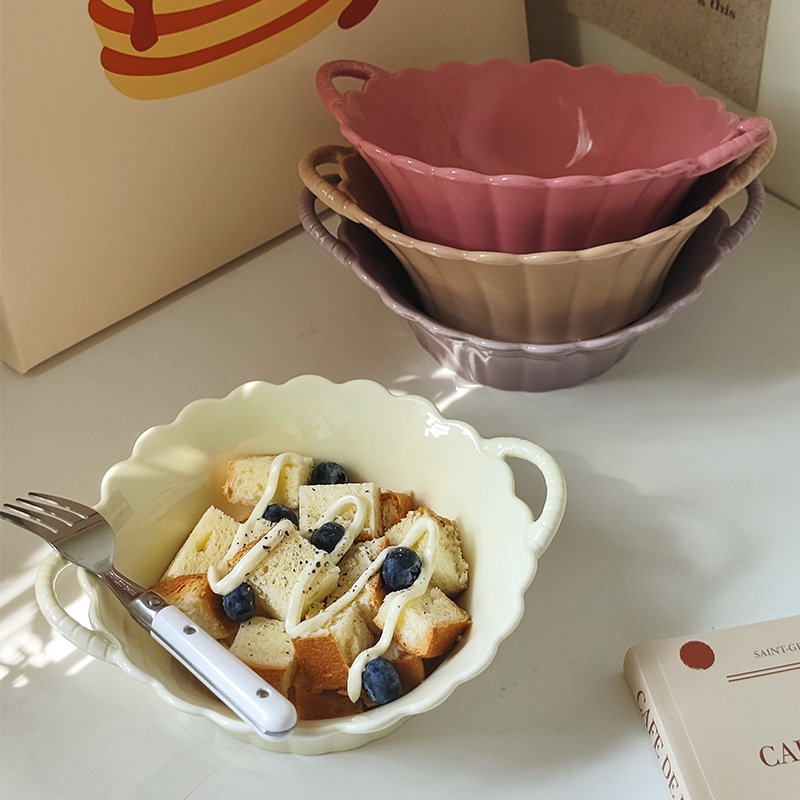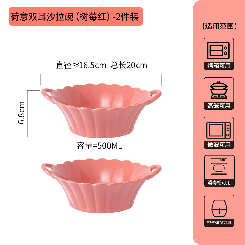 高颜值奶油ins风陶瓷双耳碗清新釉下彩陶瓷餐具沙拉碗泡面碗汤碗