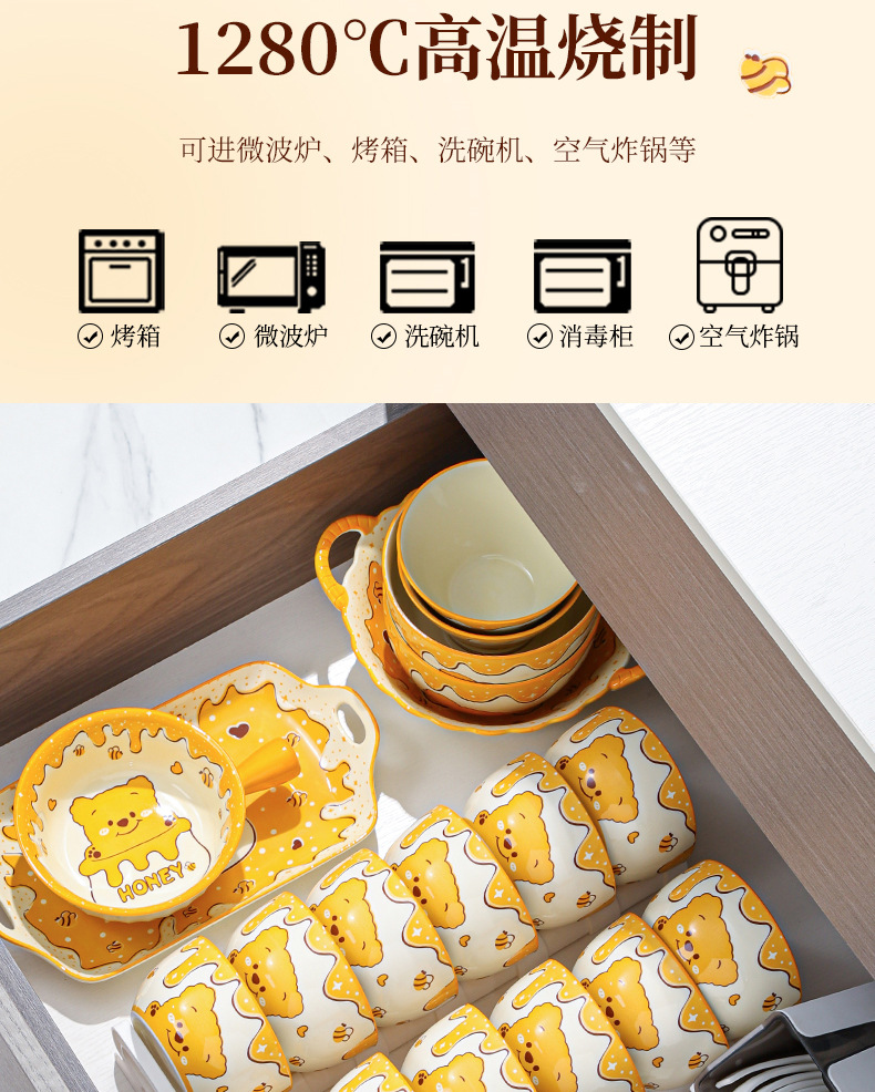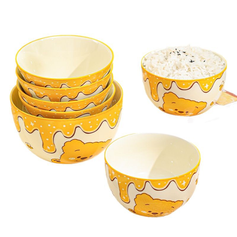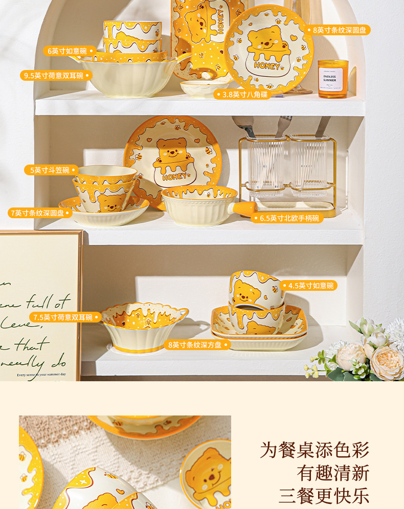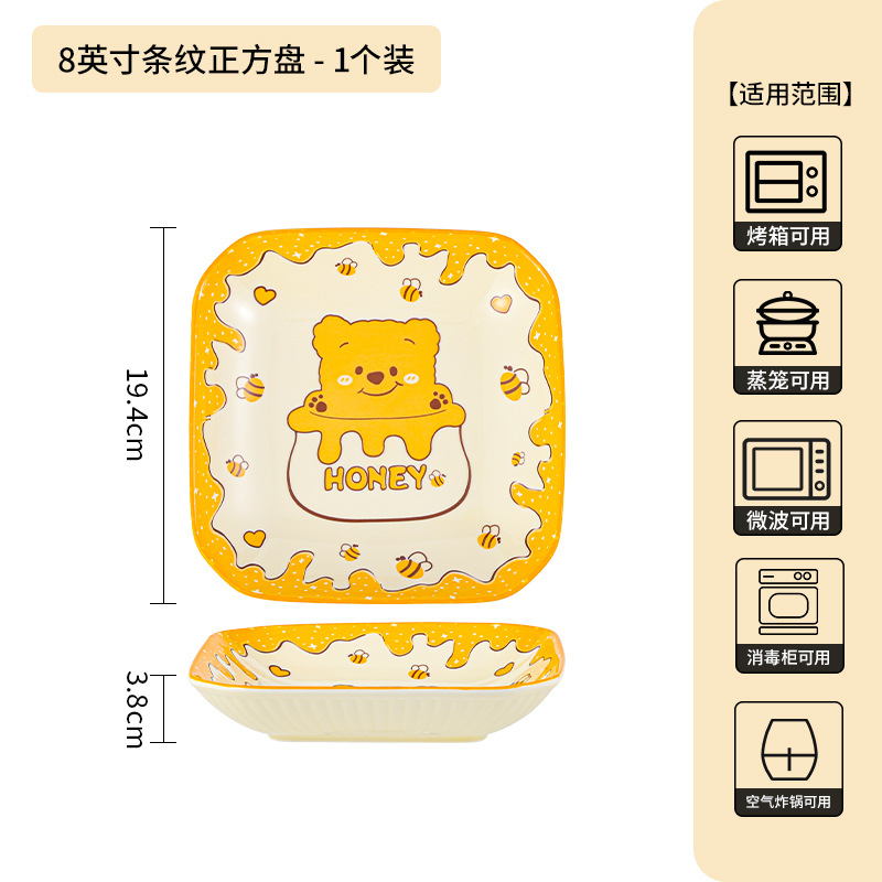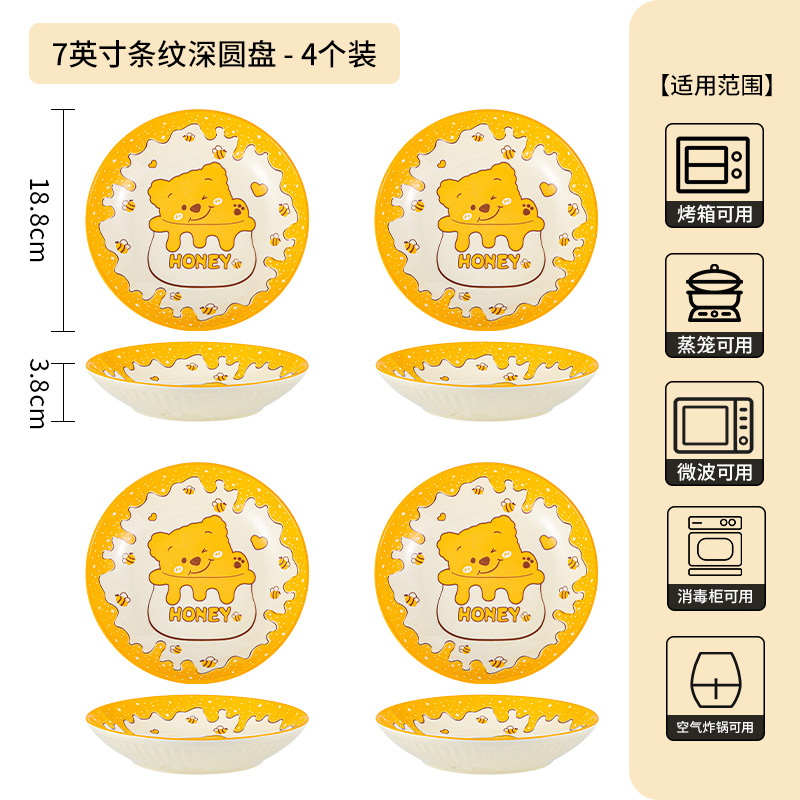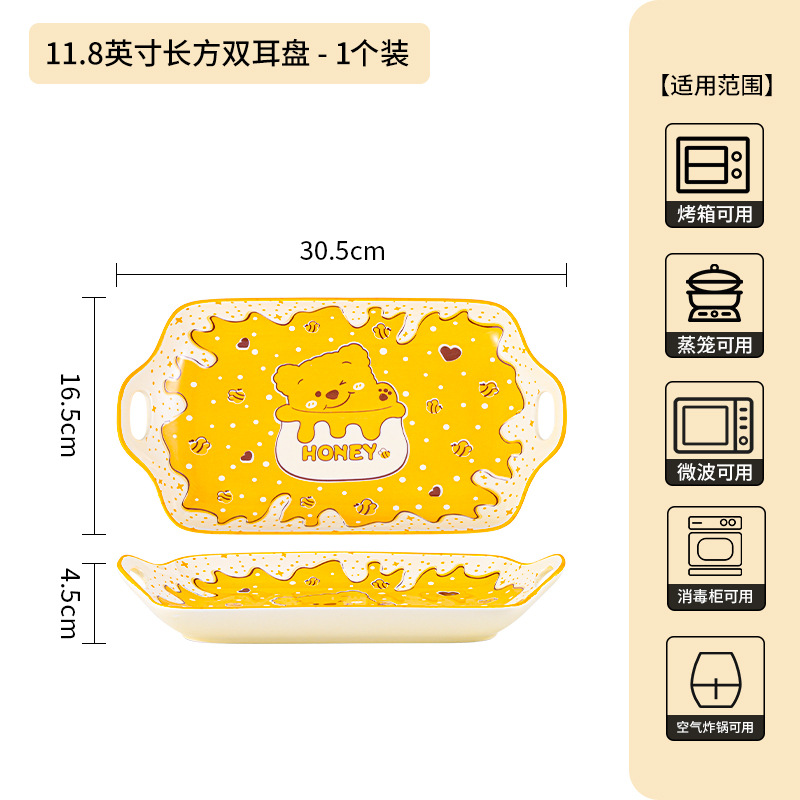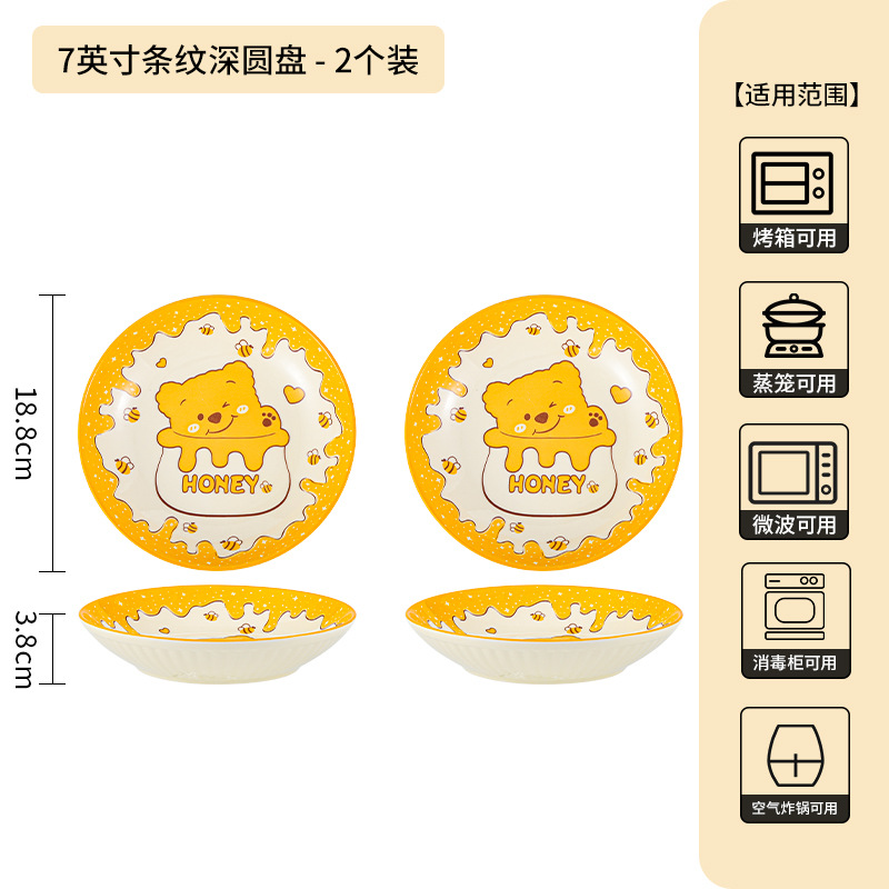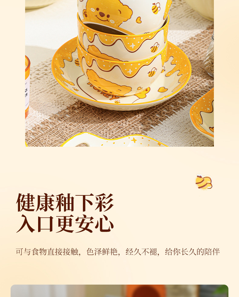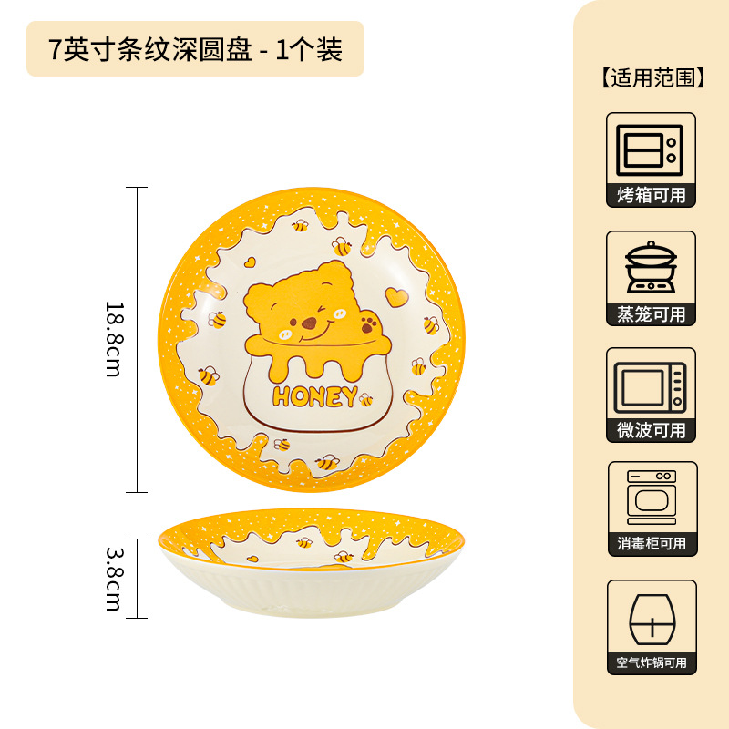 卡通可爱黄釉小黄熊陶瓷餐具盘子碗碟套装家用批发米饭碗菜盘鱼盘