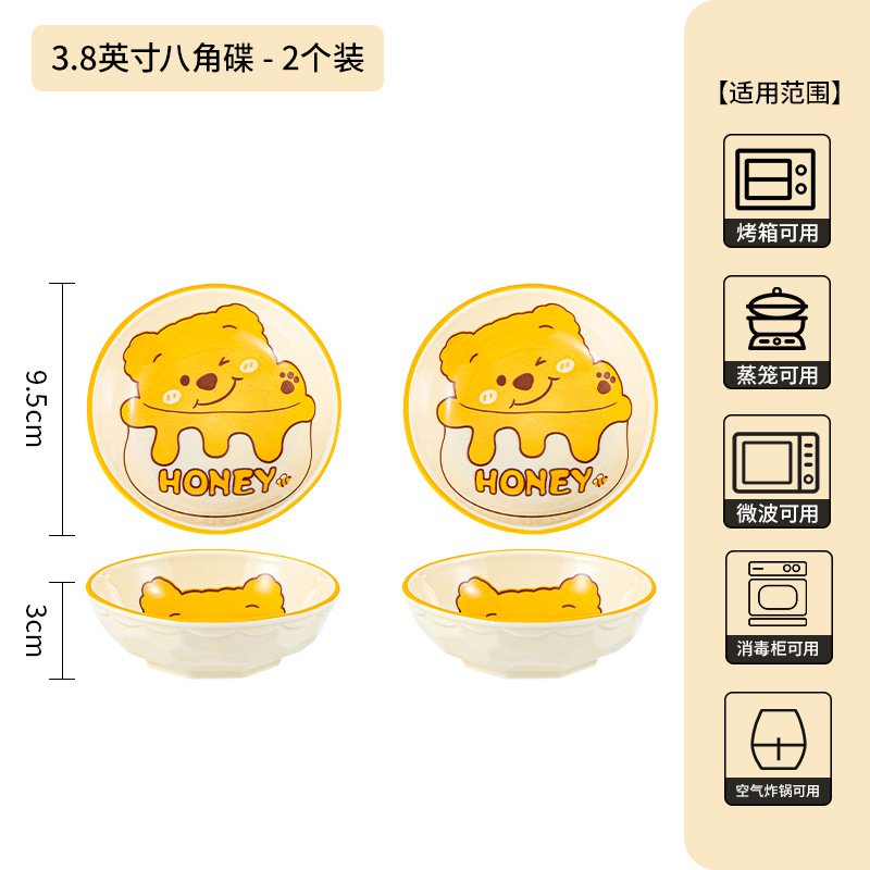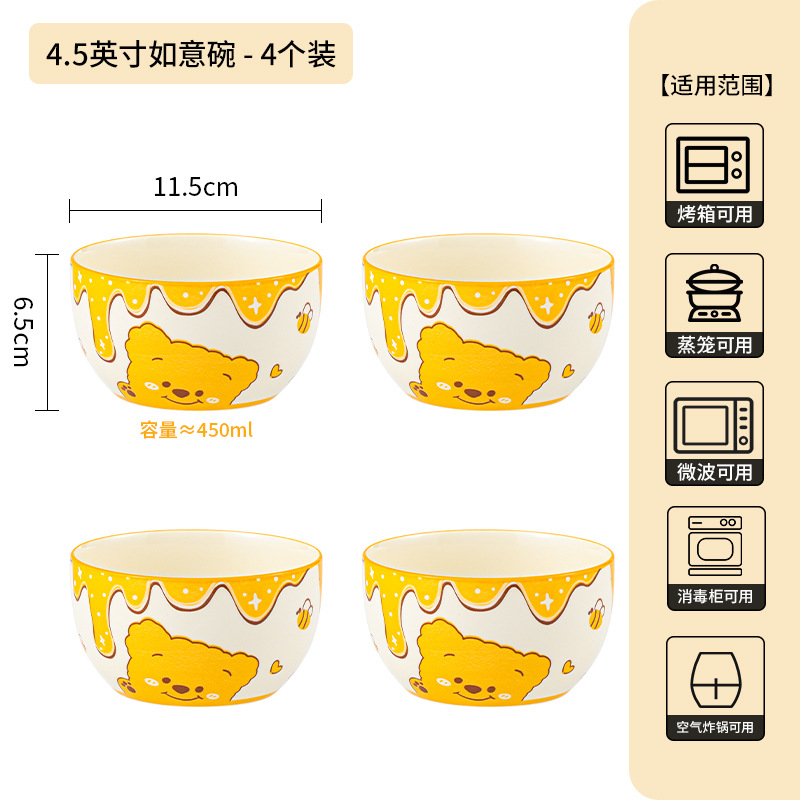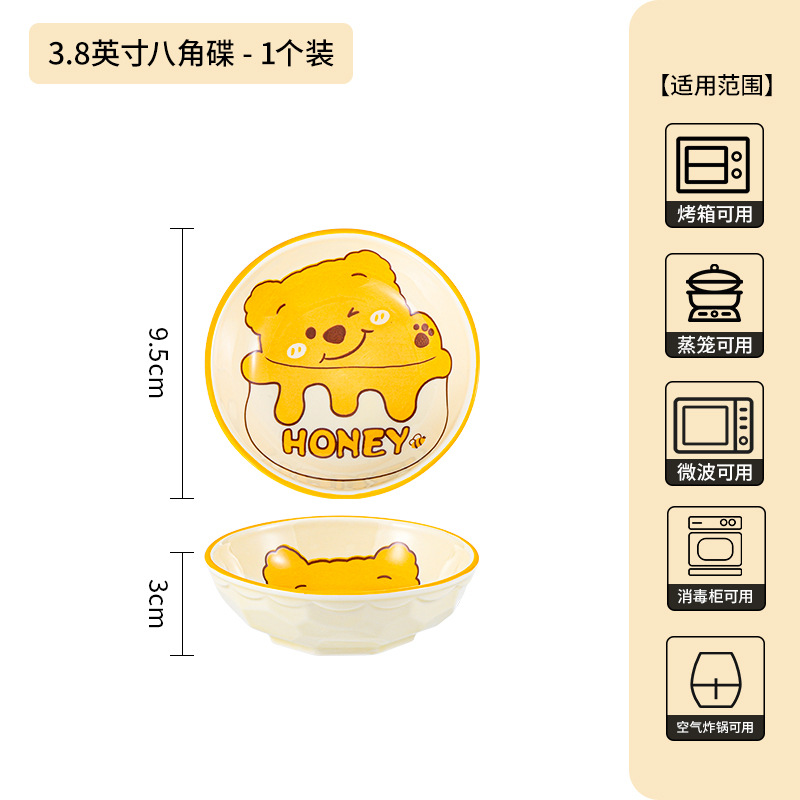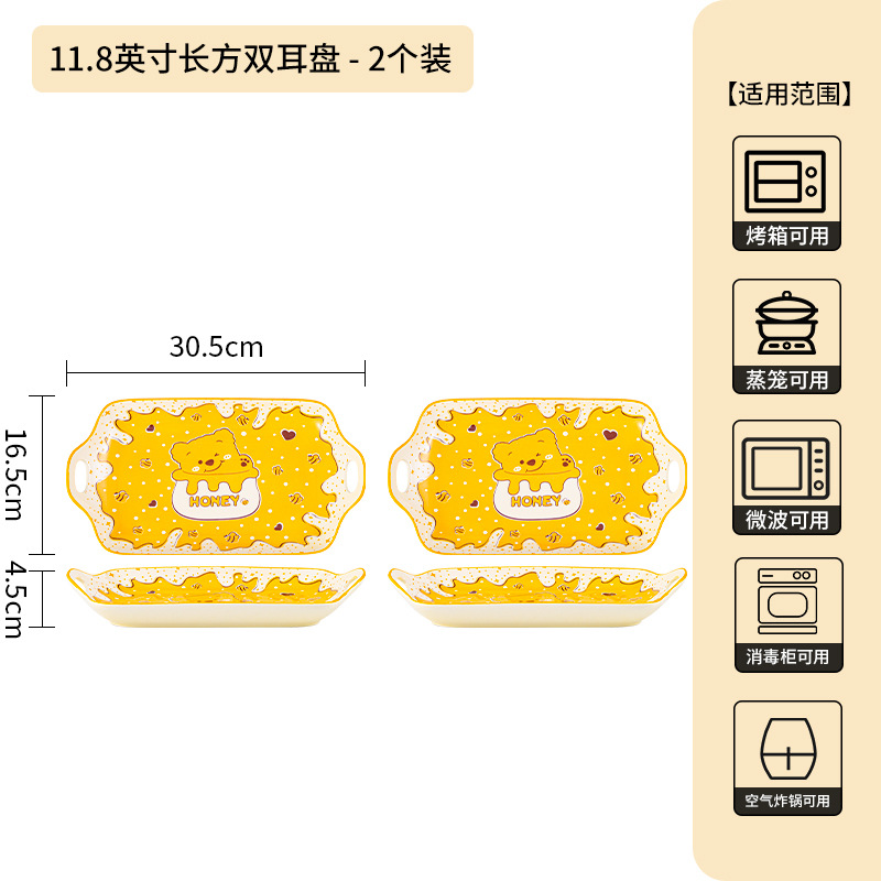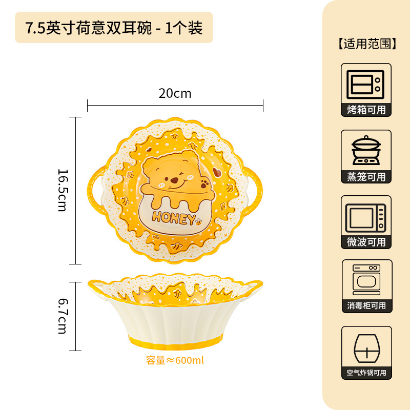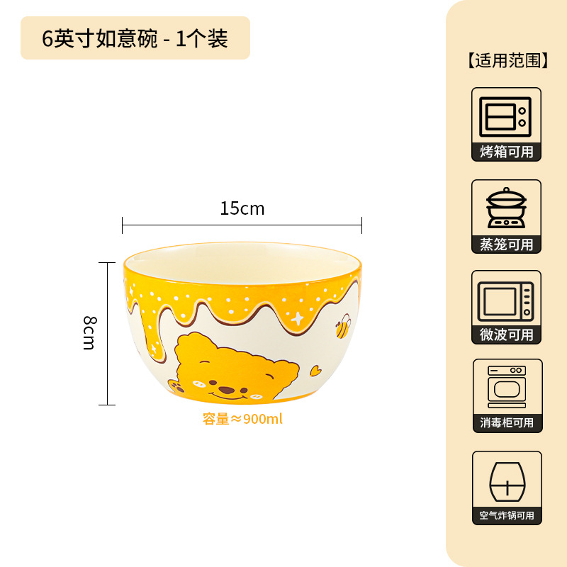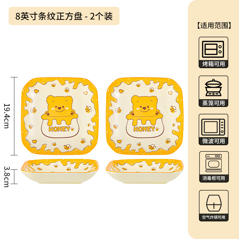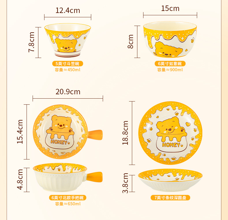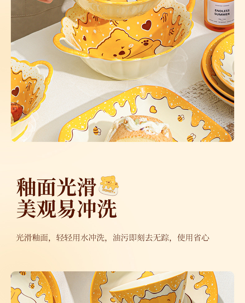 卡通可爱黄釉小黄熊陶瓷餐具盘子碗碟套装家用批发米饭碗菜盘鱼盘