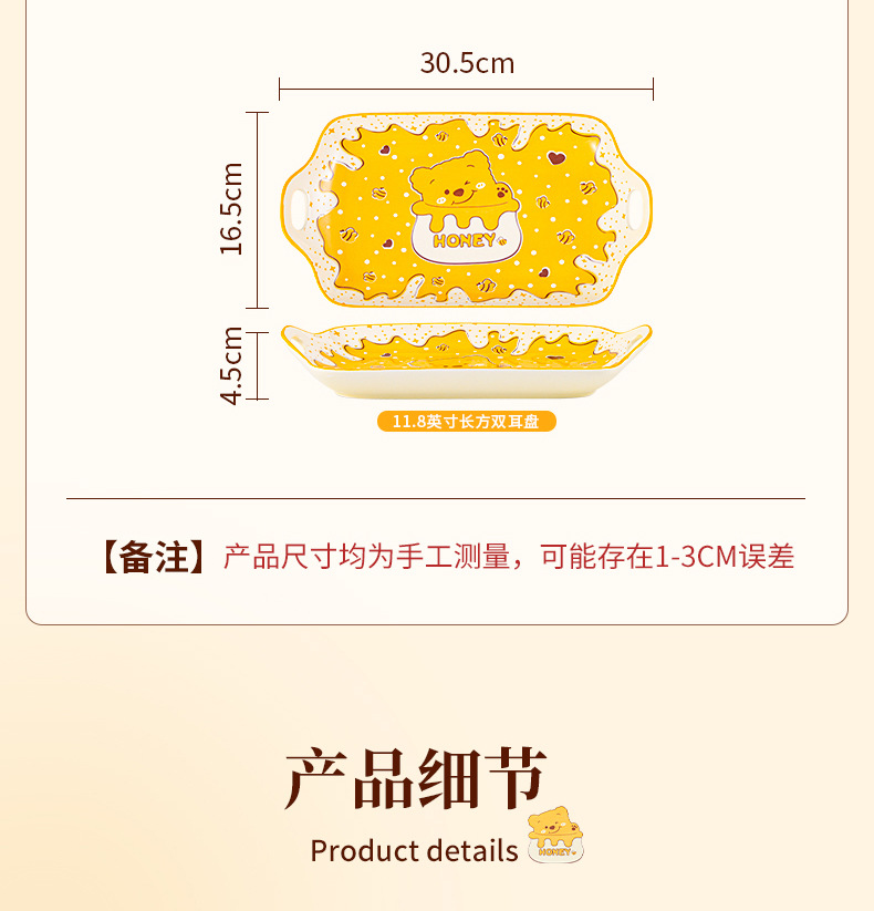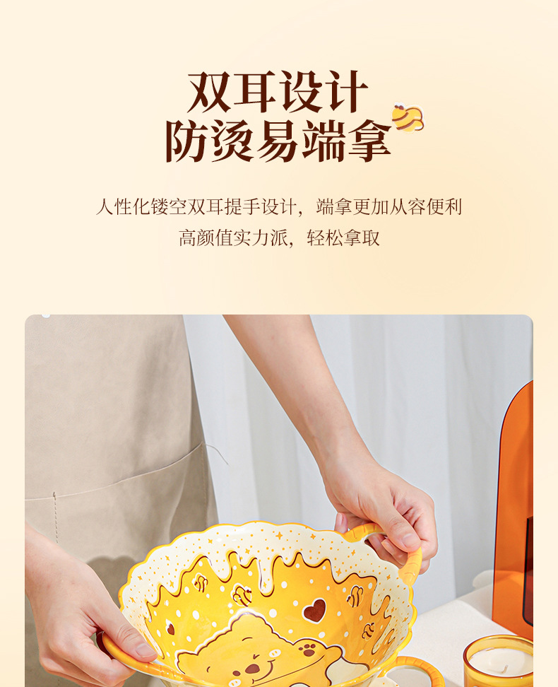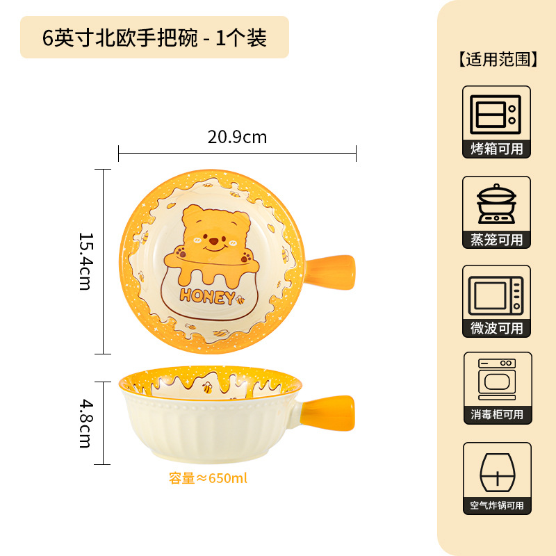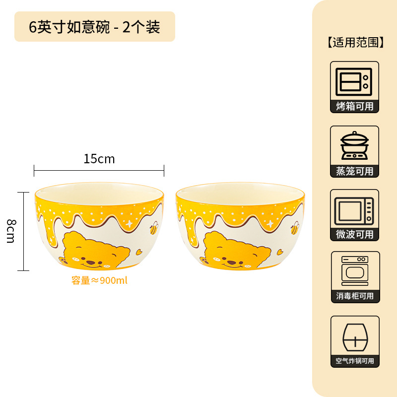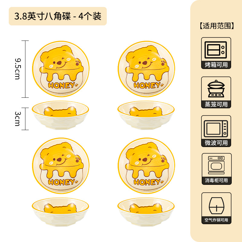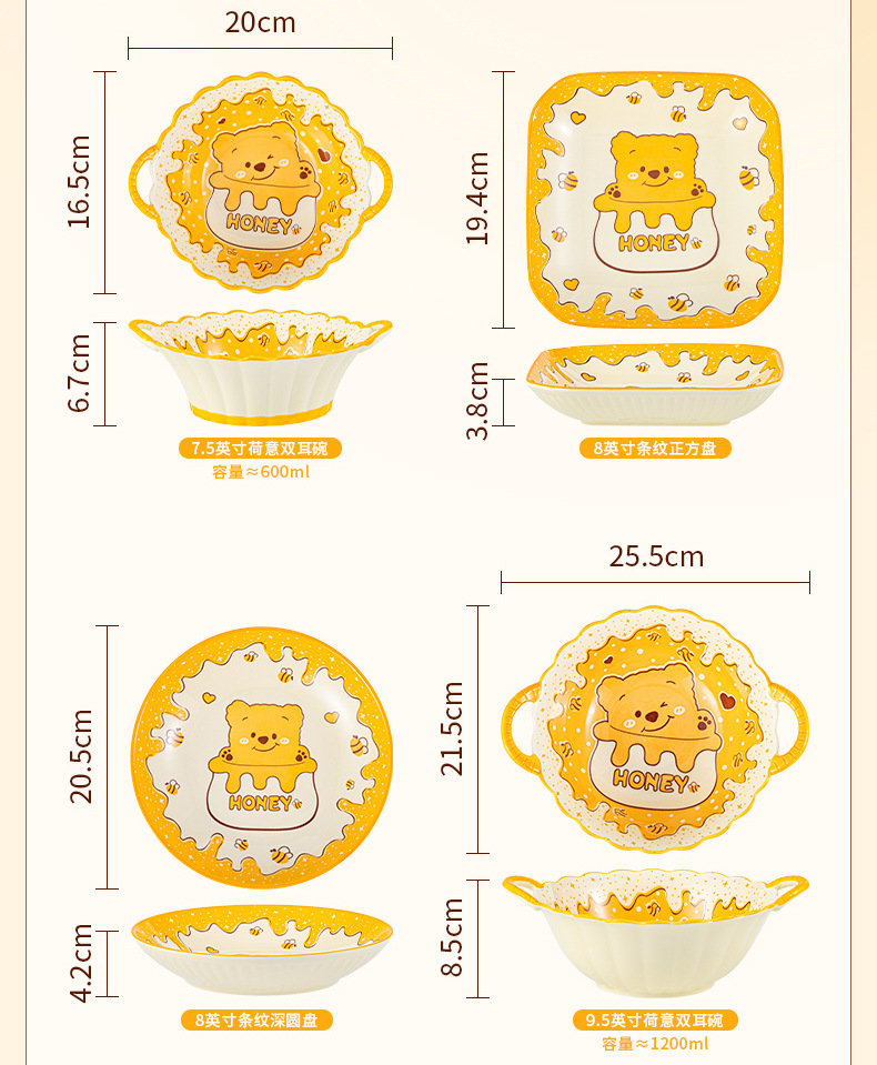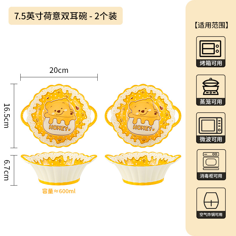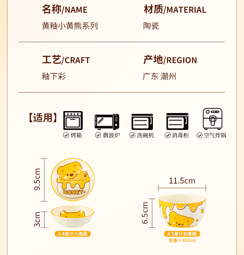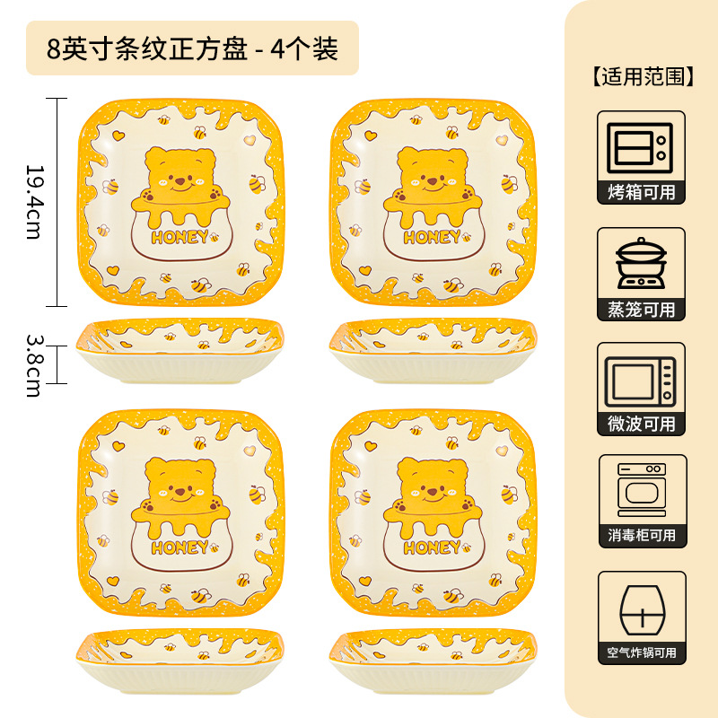 卡通可爱黄釉小黄熊陶瓷餐具盘子碗碟套装家用批发米饭碗菜盘鱼盘