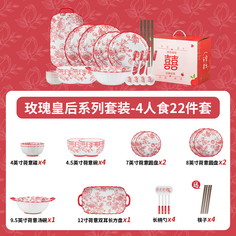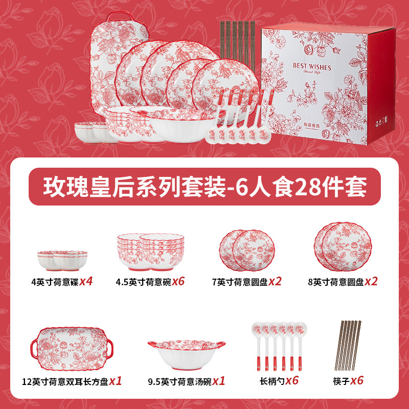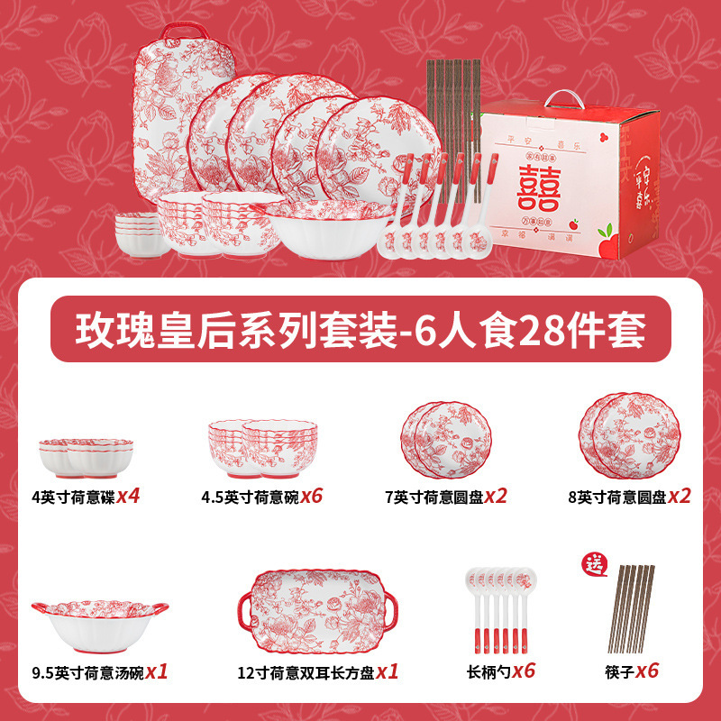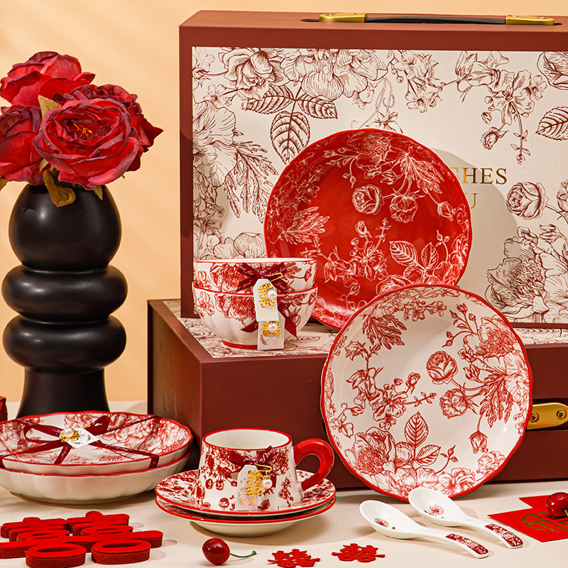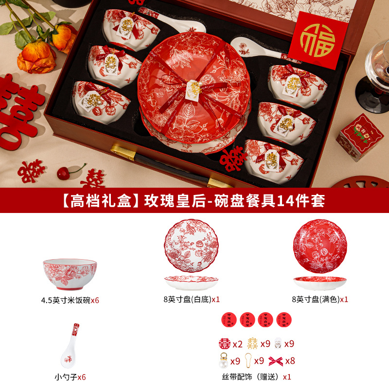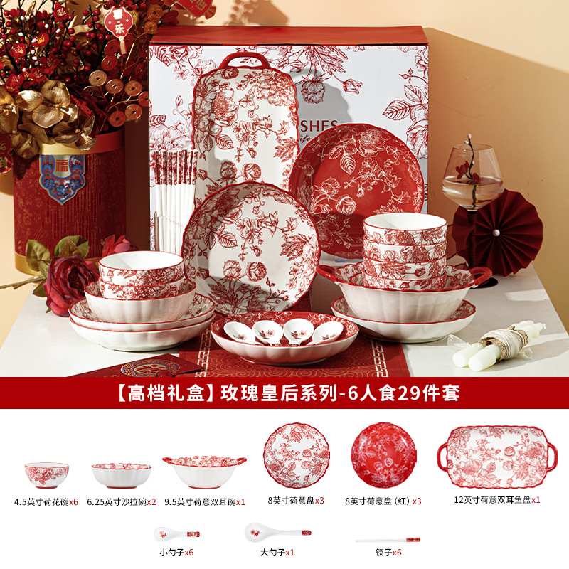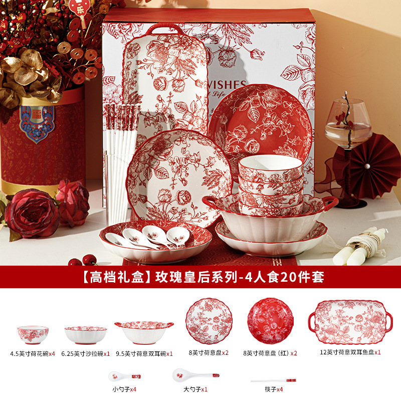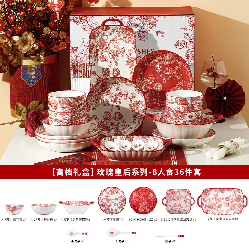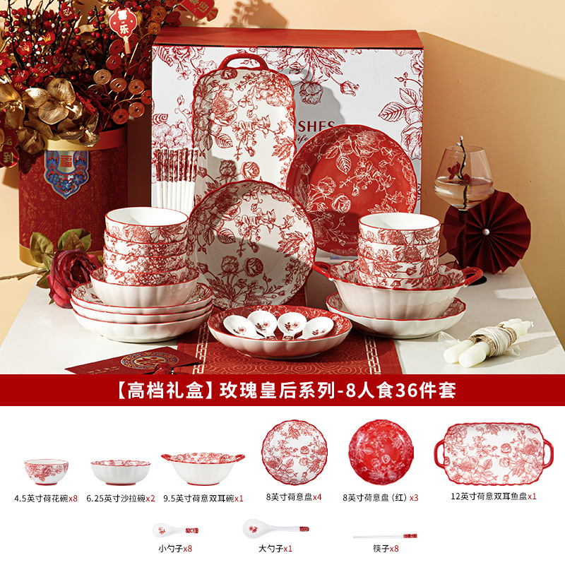 碗家用中式乔迁新婚礼物高档碗碟套装陶瓷碗结婚礼盒套装陶瓷餐具