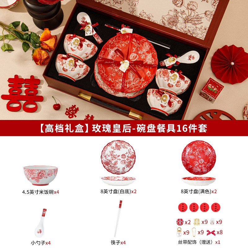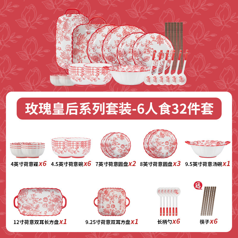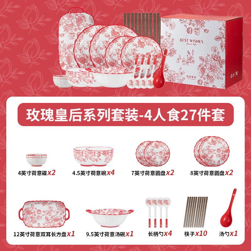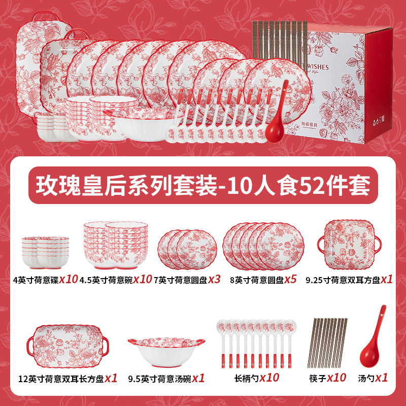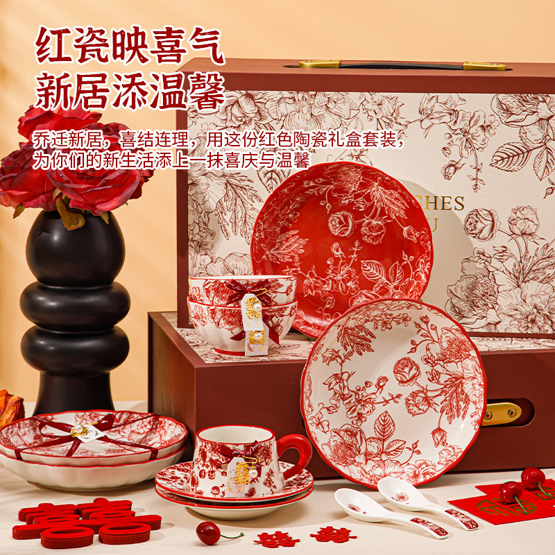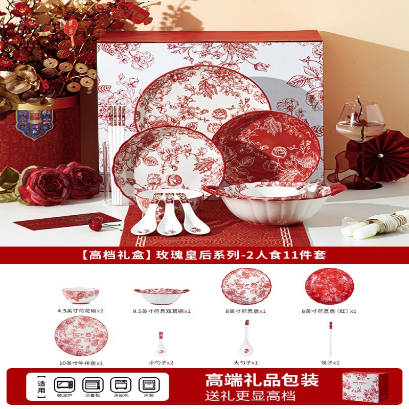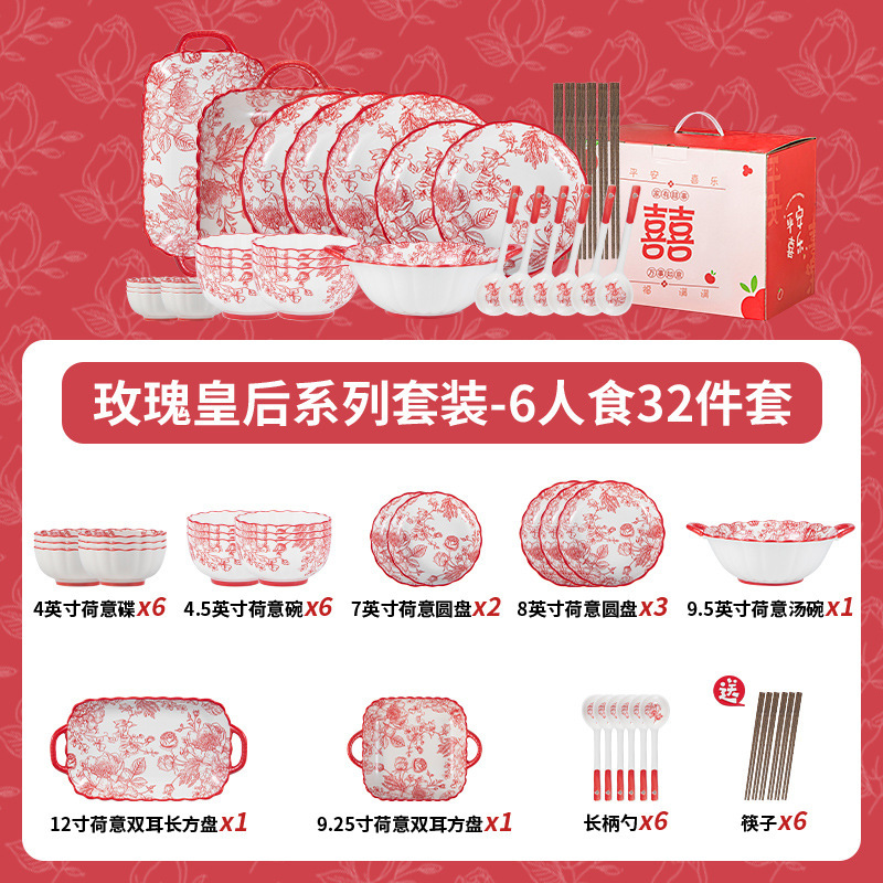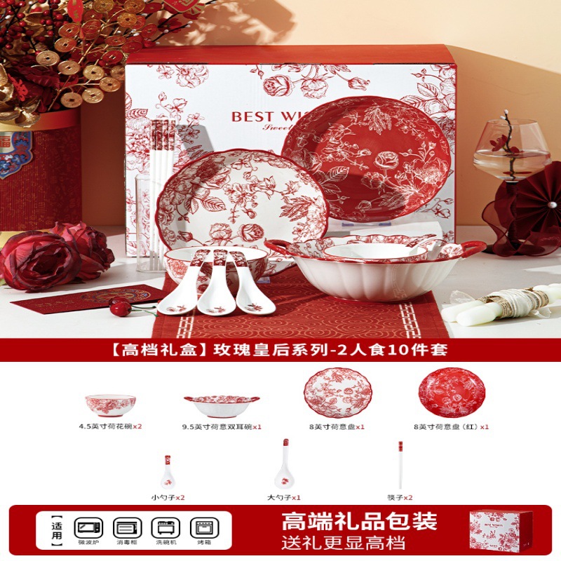 碗家用中式乔迁新婚礼物高档碗碟套装陶瓷碗结婚礼盒套装陶瓷餐具