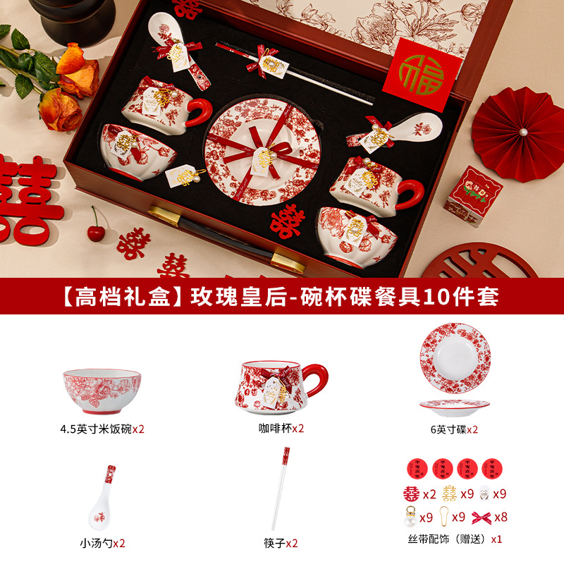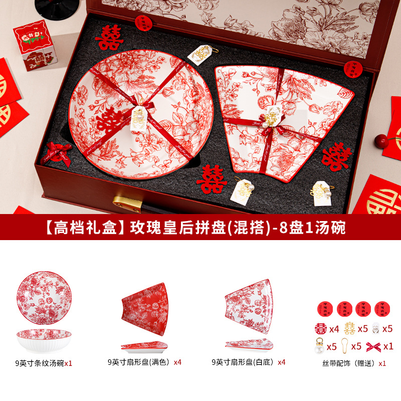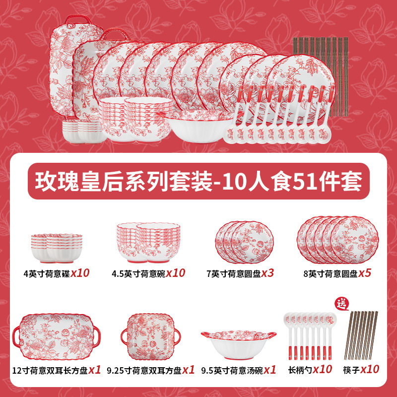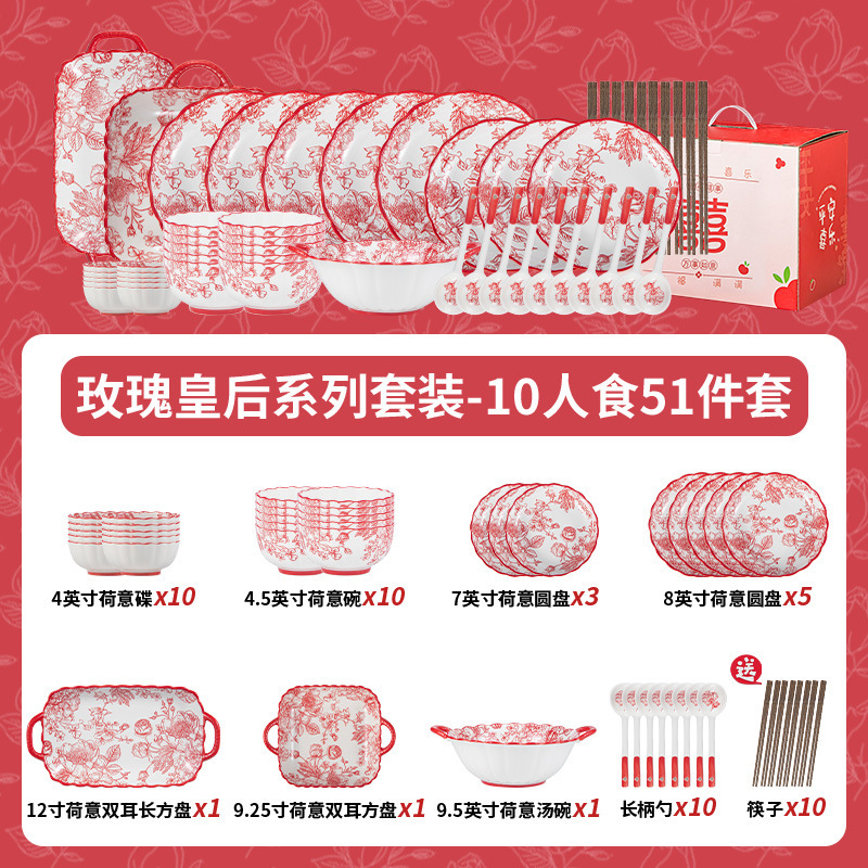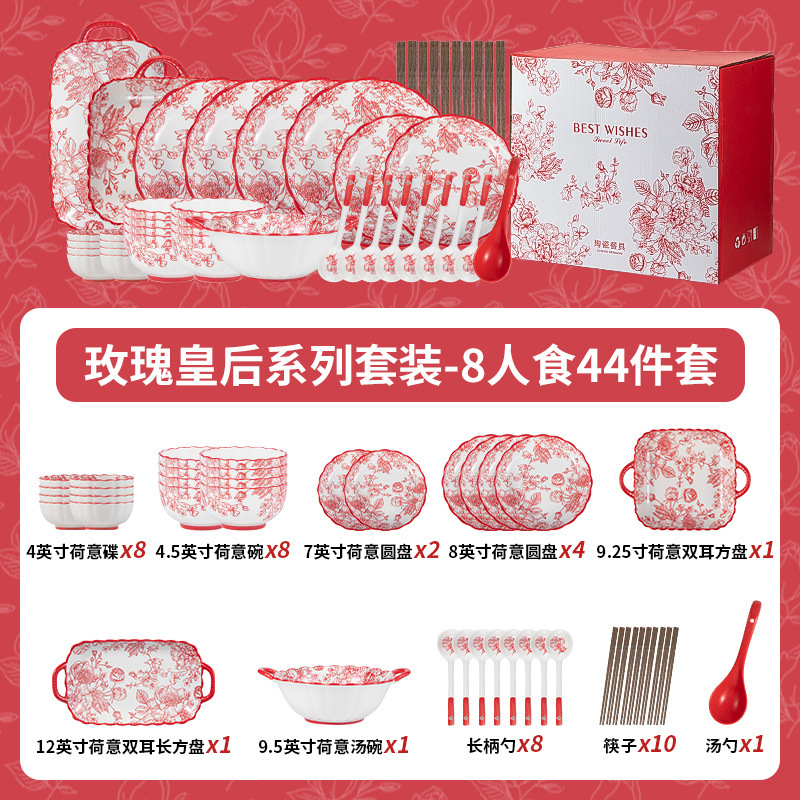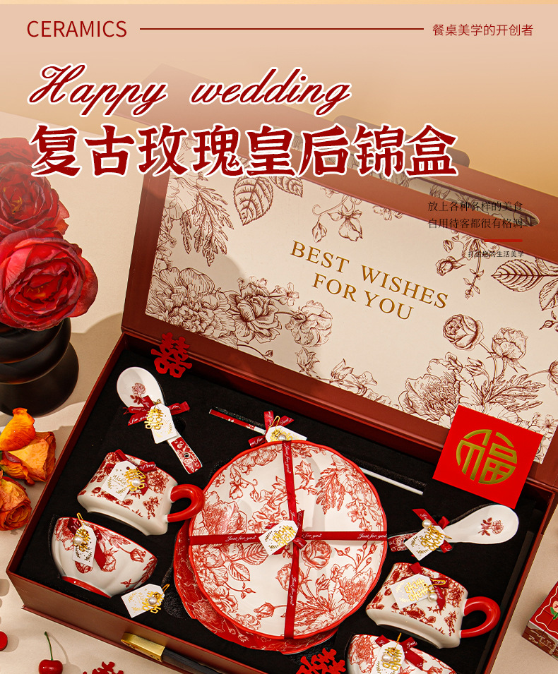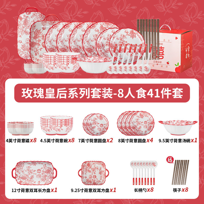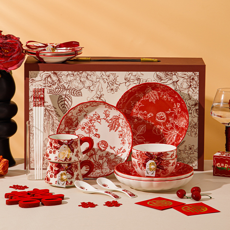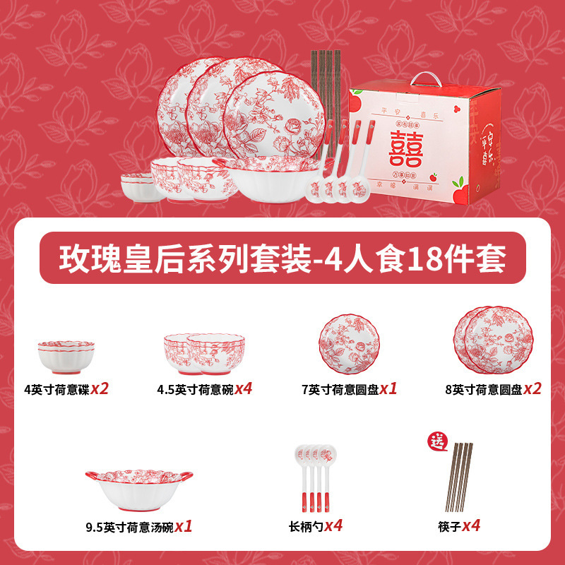碗家用中式乔迁新婚礼物高档碗碟套装陶瓷碗结婚礼盒套装陶瓷餐具