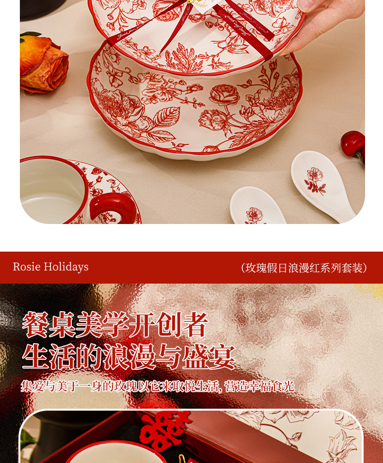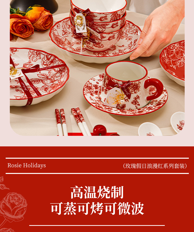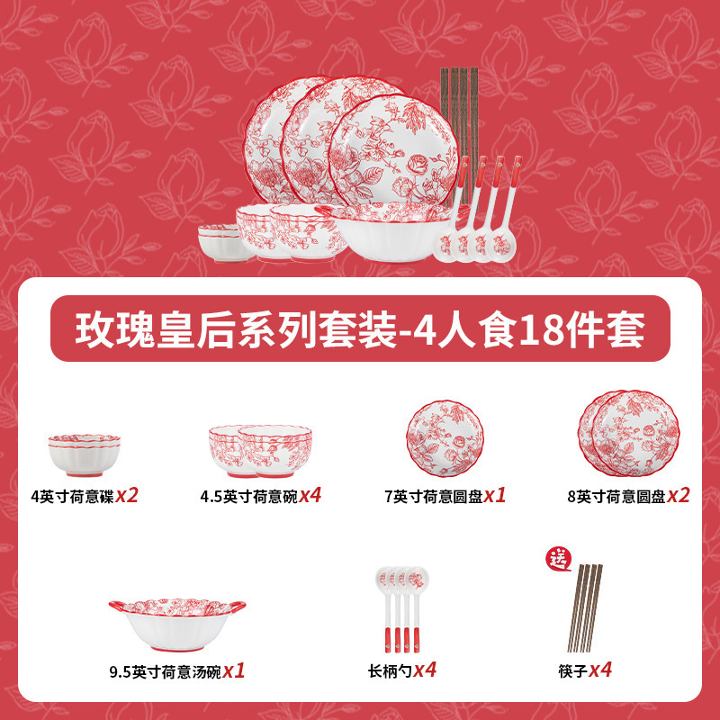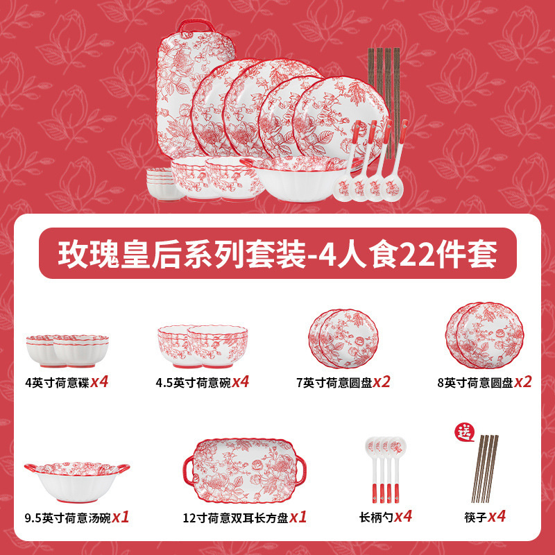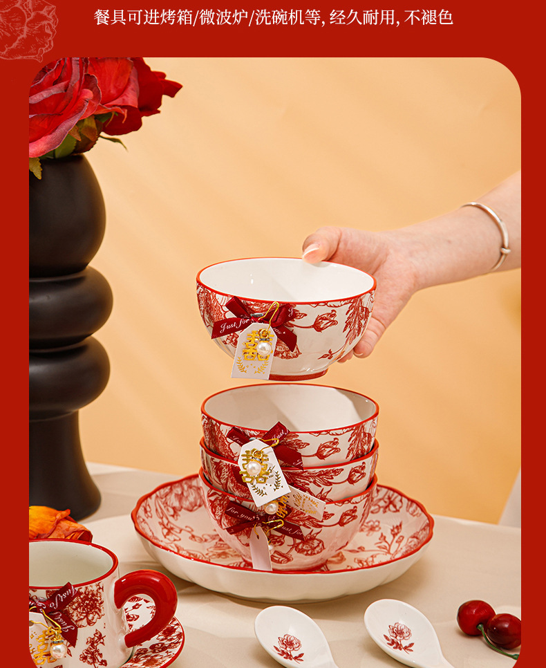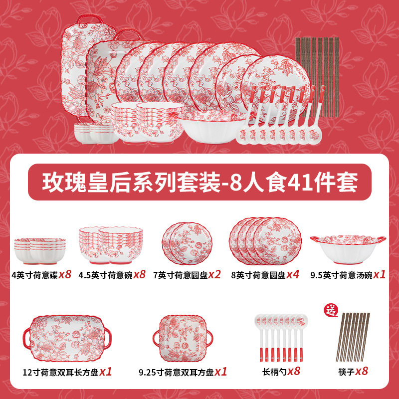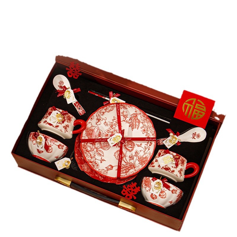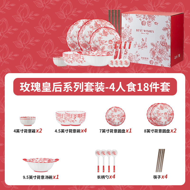 碗家用中式乔迁新婚礼物高档碗碟套装陶瓷碗结婚礼盒套装陶瓷餐具