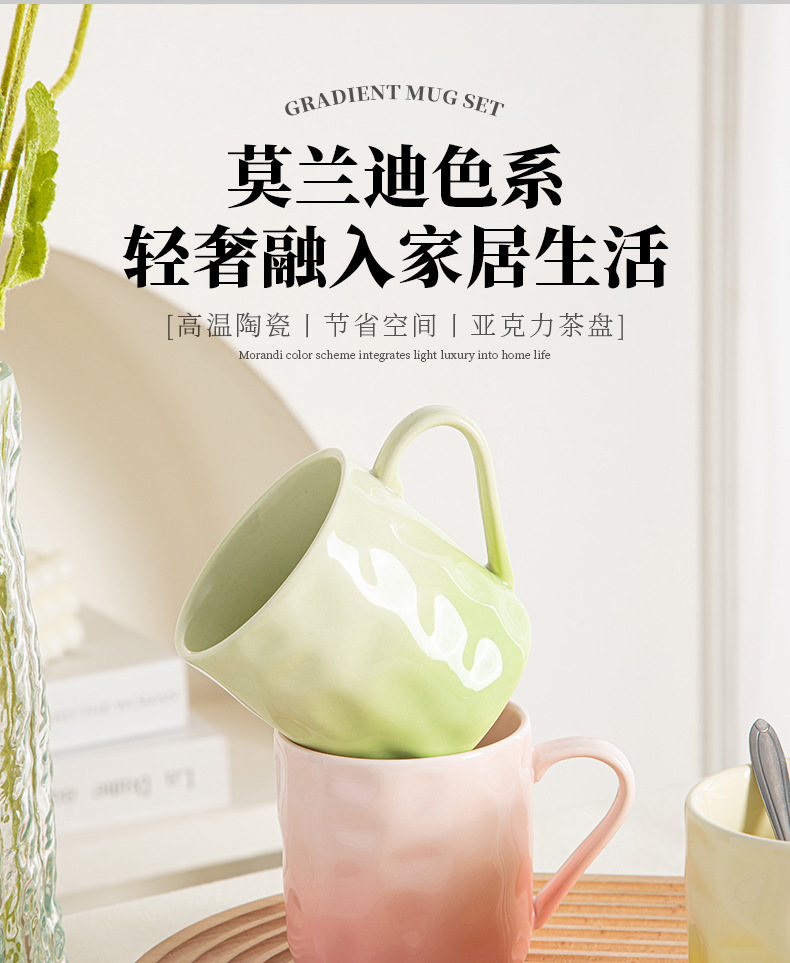 定制高颜值渐变马克杯水杯家用高级感陶瓷杯子早餐杯牛奶杯咖啡杯
