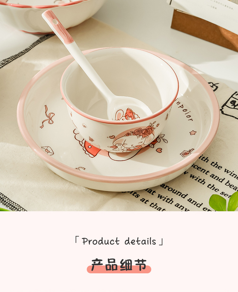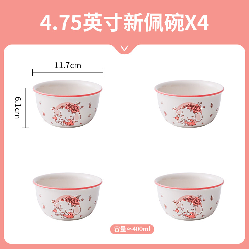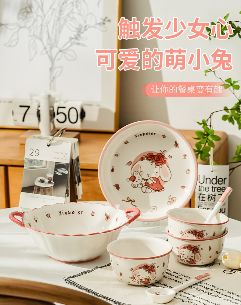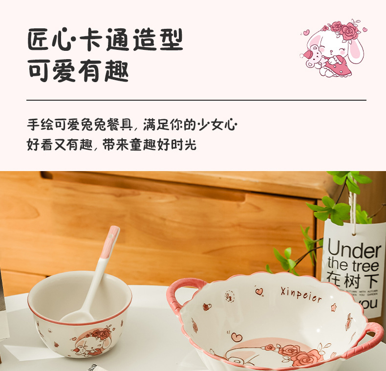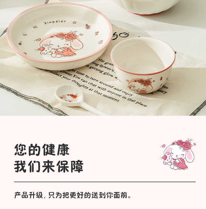 ins风高颜值卡通碗家用碗批发儿童陶瓷餐具米饭碗沙拉碗饭碗盘