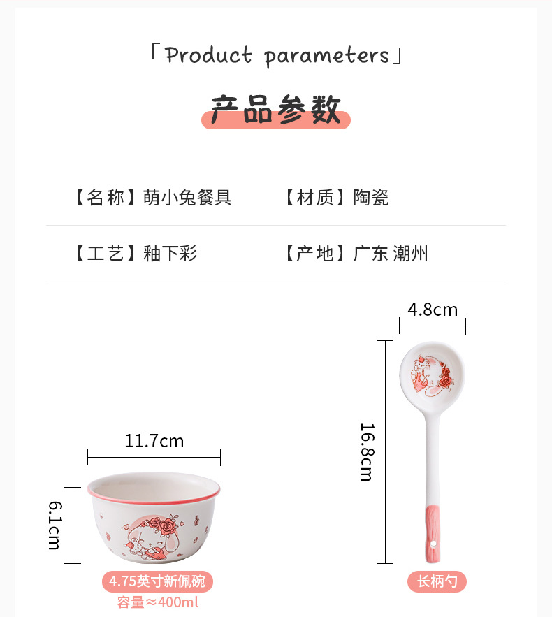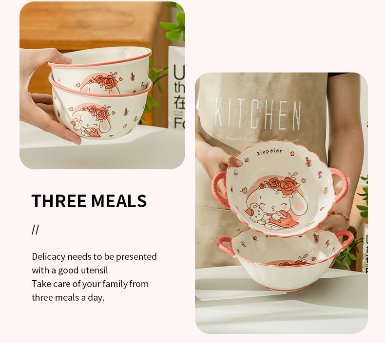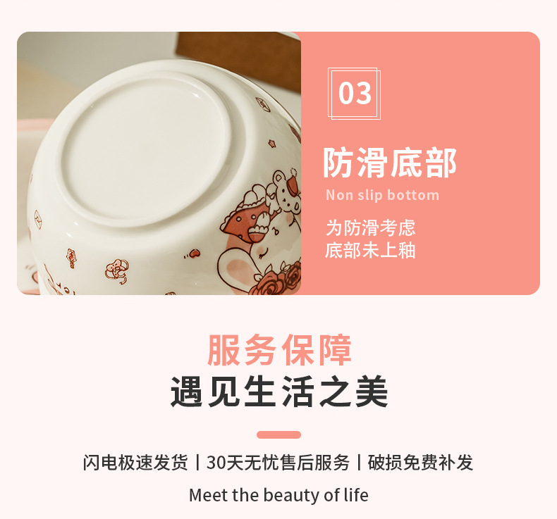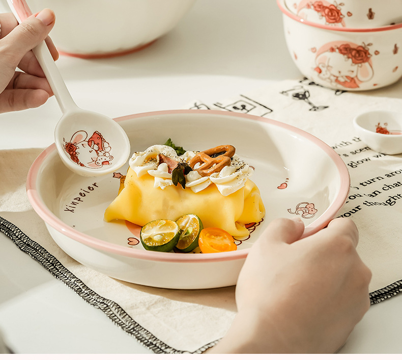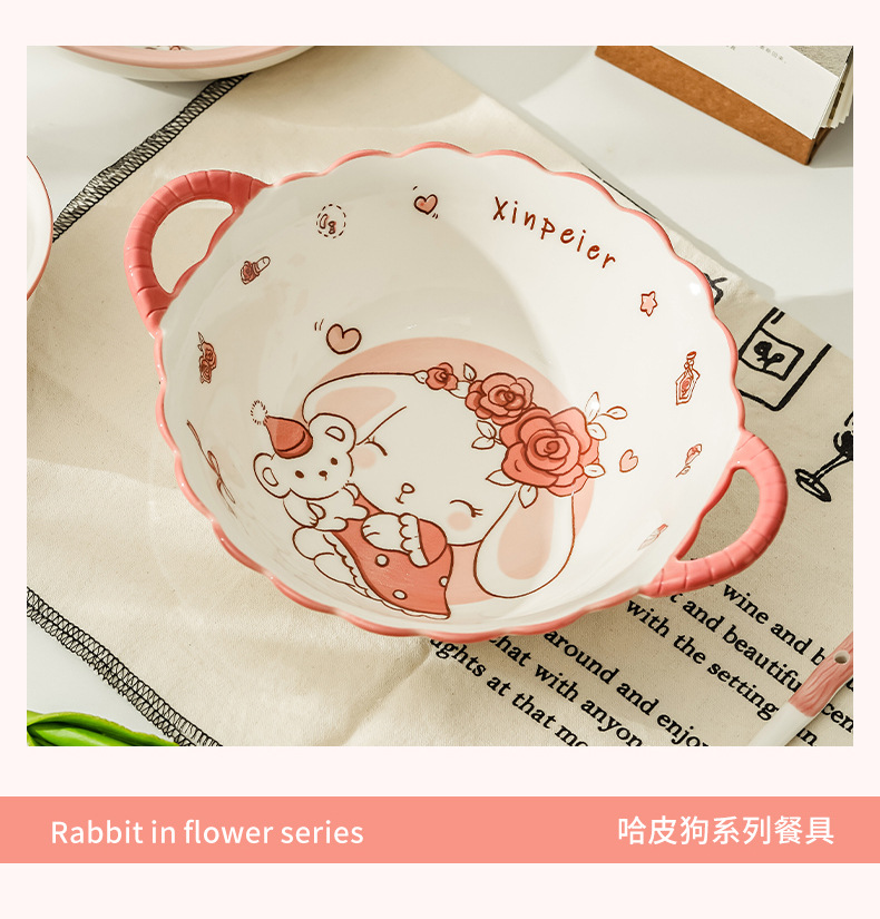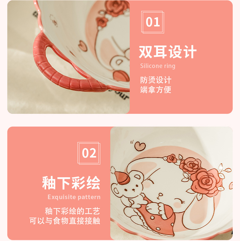 ins风高颜值卡通碗家用碗批发儿童陶瓷餐具米饭碗沙拉碗饭碗盘