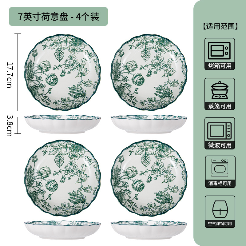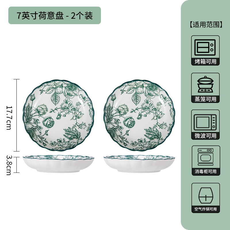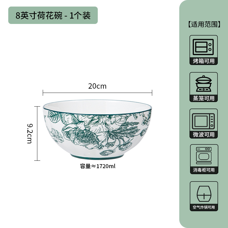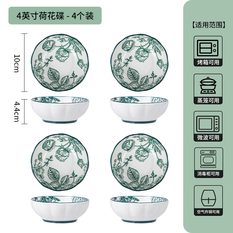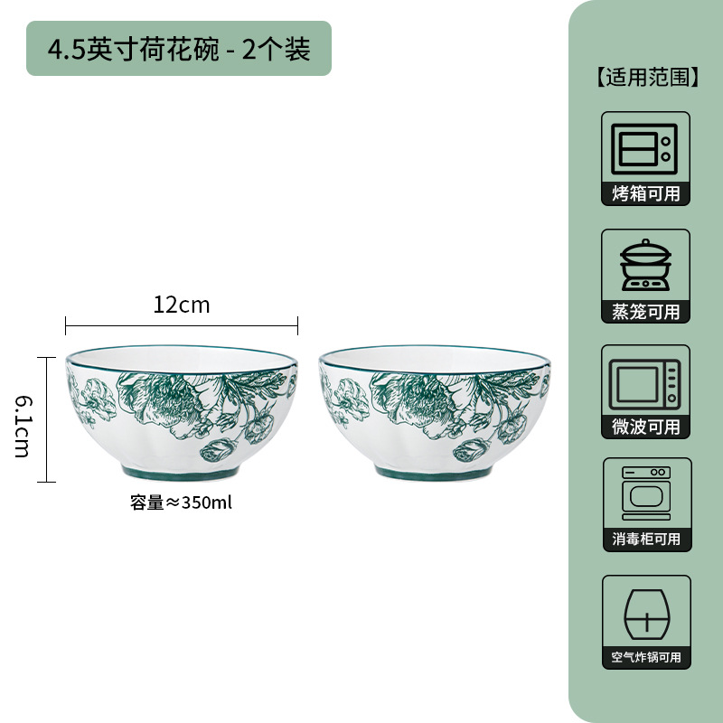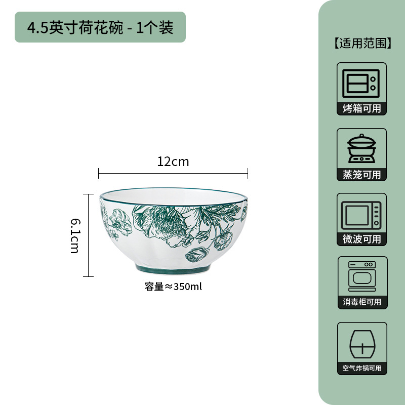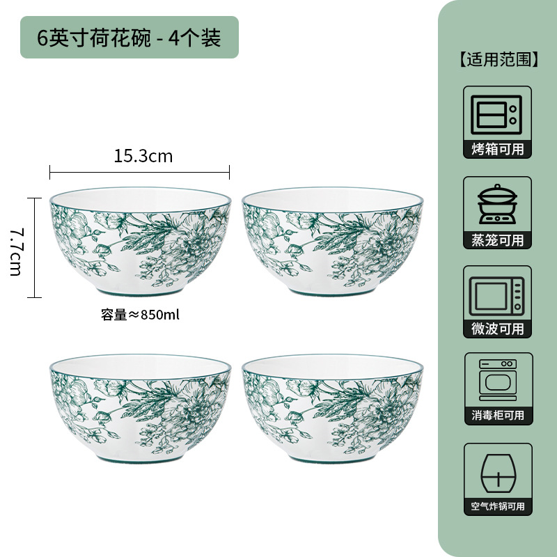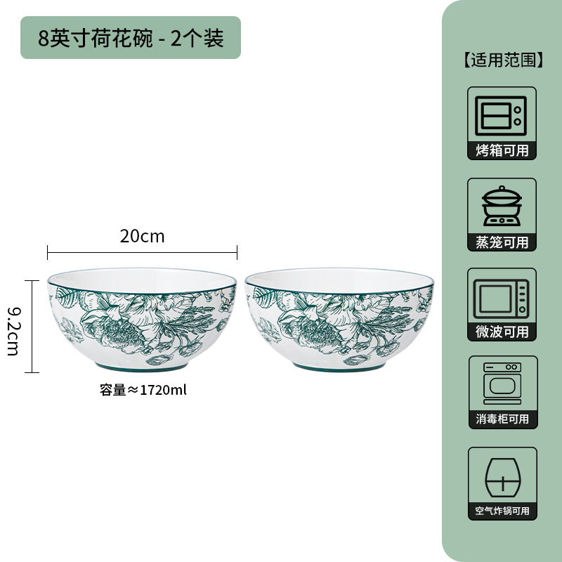 日式新中式风餐具家用碗碟套装釉下彩陶瓷碗碟子盘子汤碗陶瓷餐具