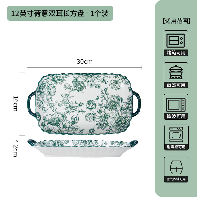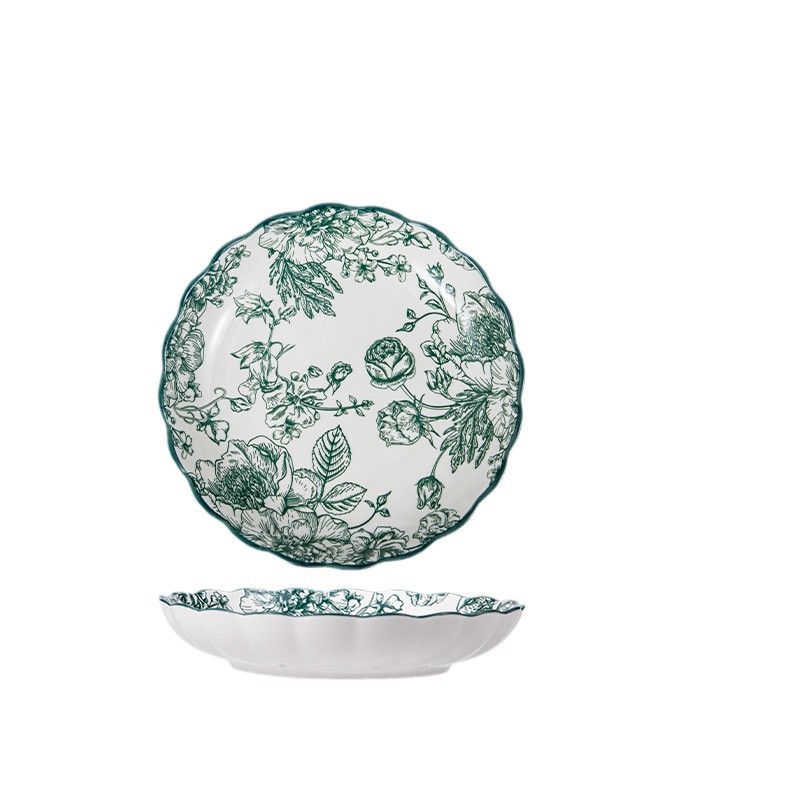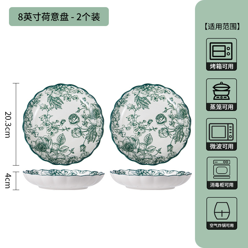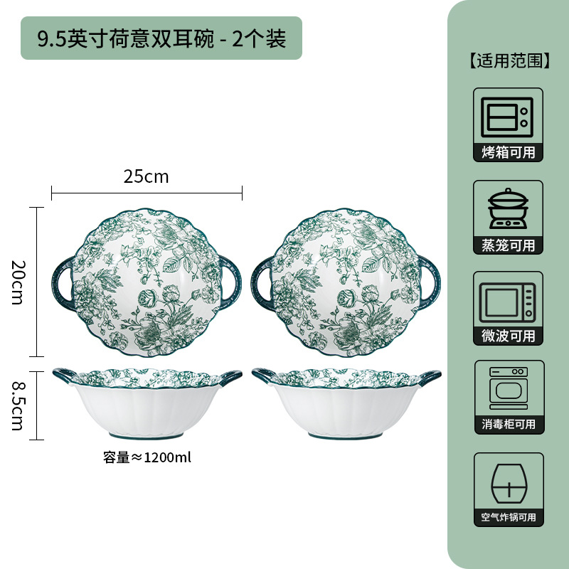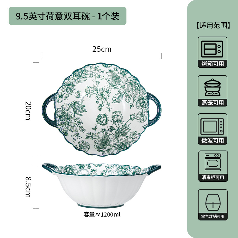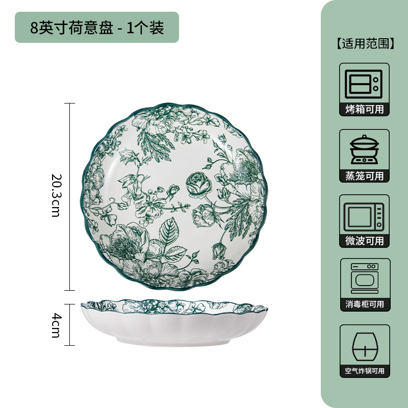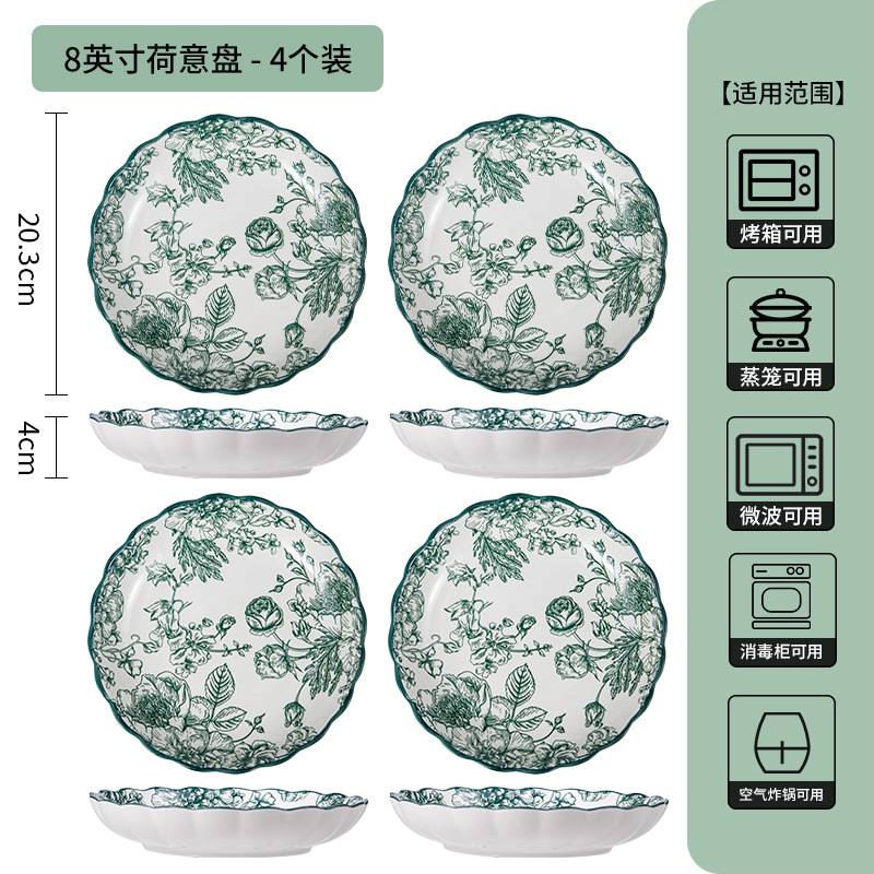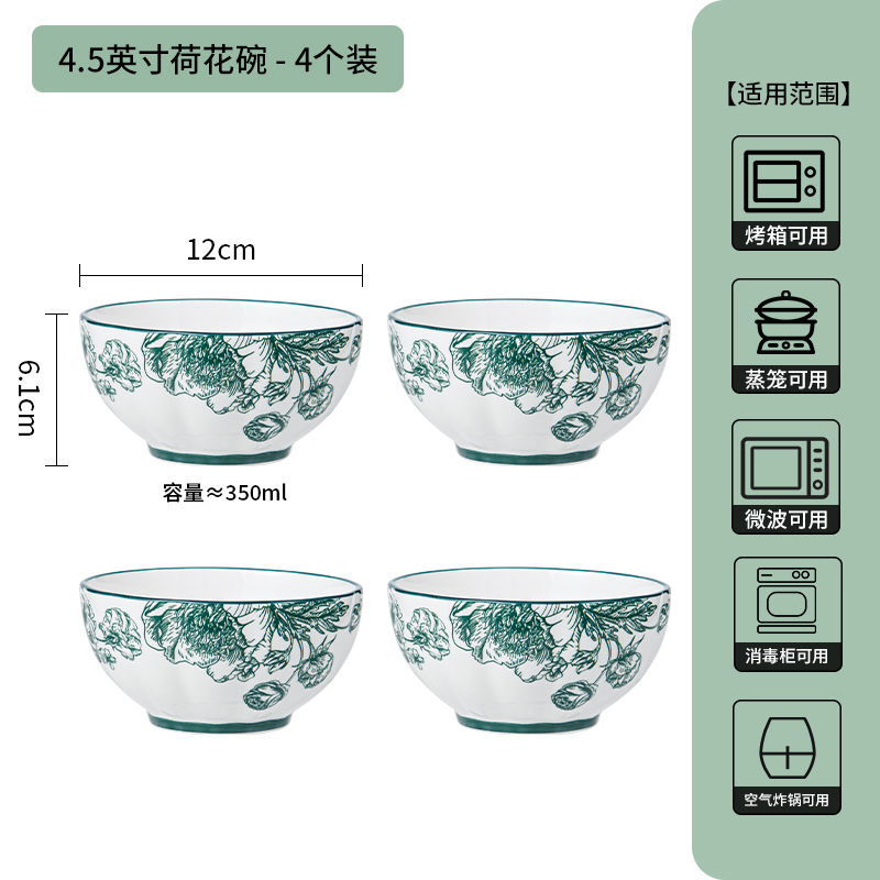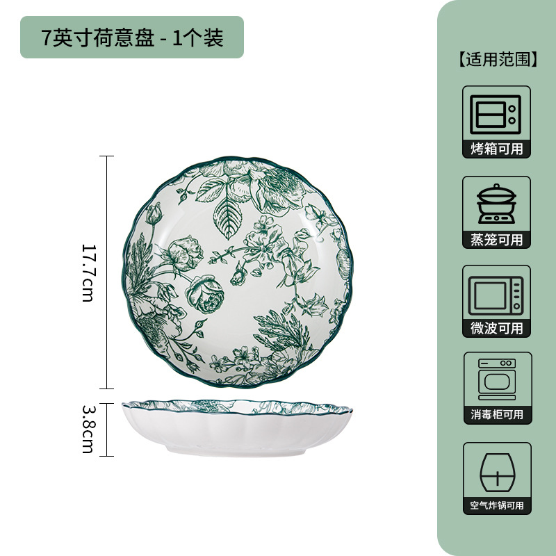 日式新中式风餐具家用碗碟套装釉下彩陶瓷碗碟子盘子汤碗陶瓷餐具