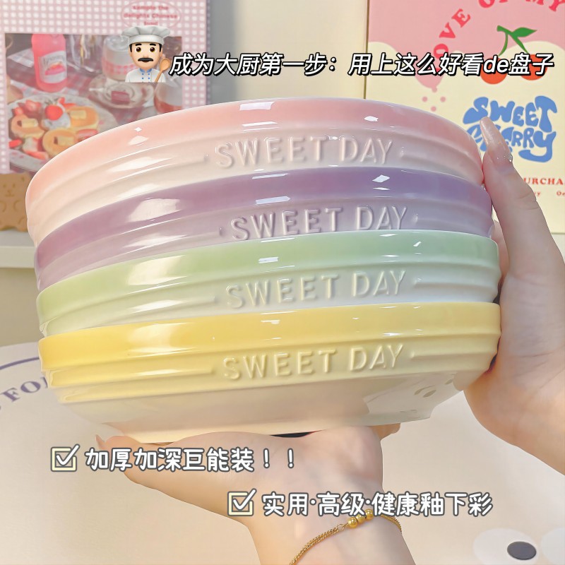 高颜值ins风创意家用渐变陶瓷盘菜盘餐盘意面盘釉下彩陶瓷餐具