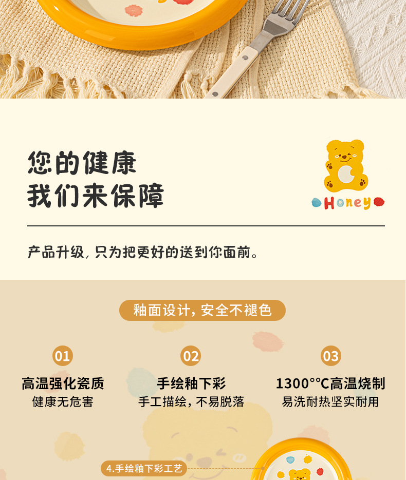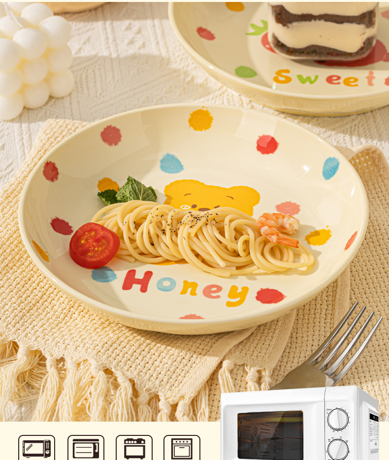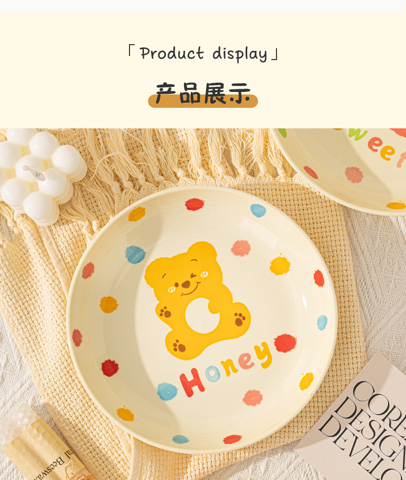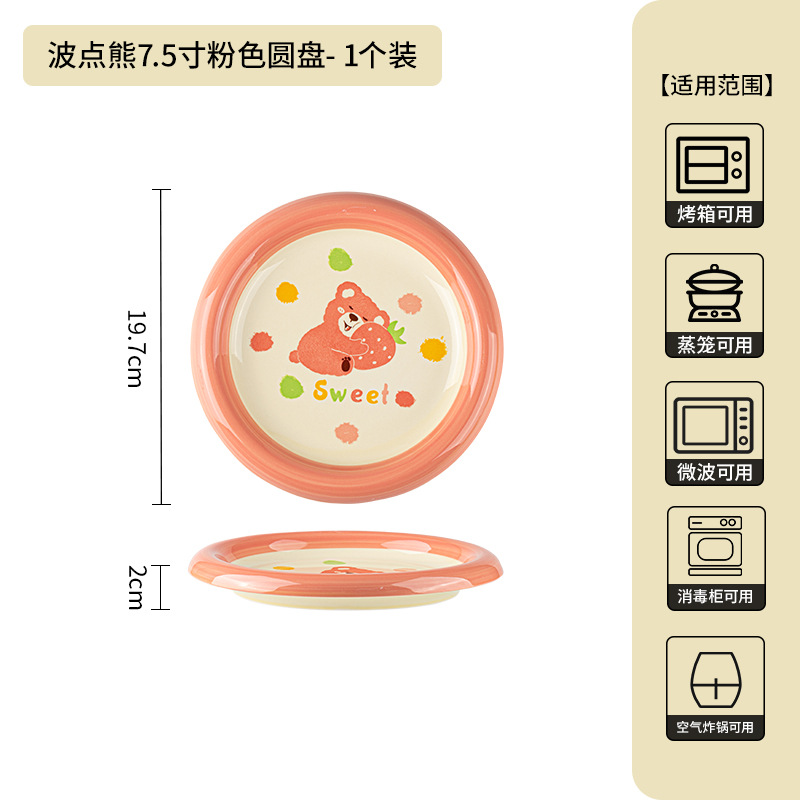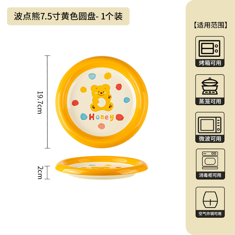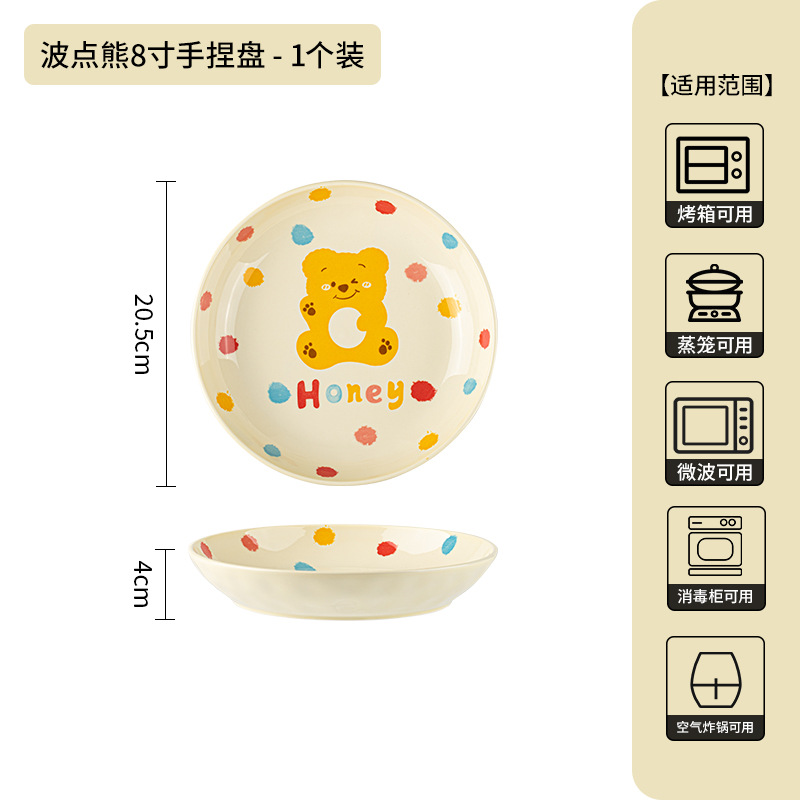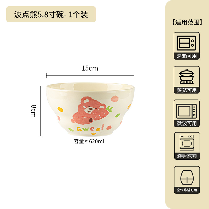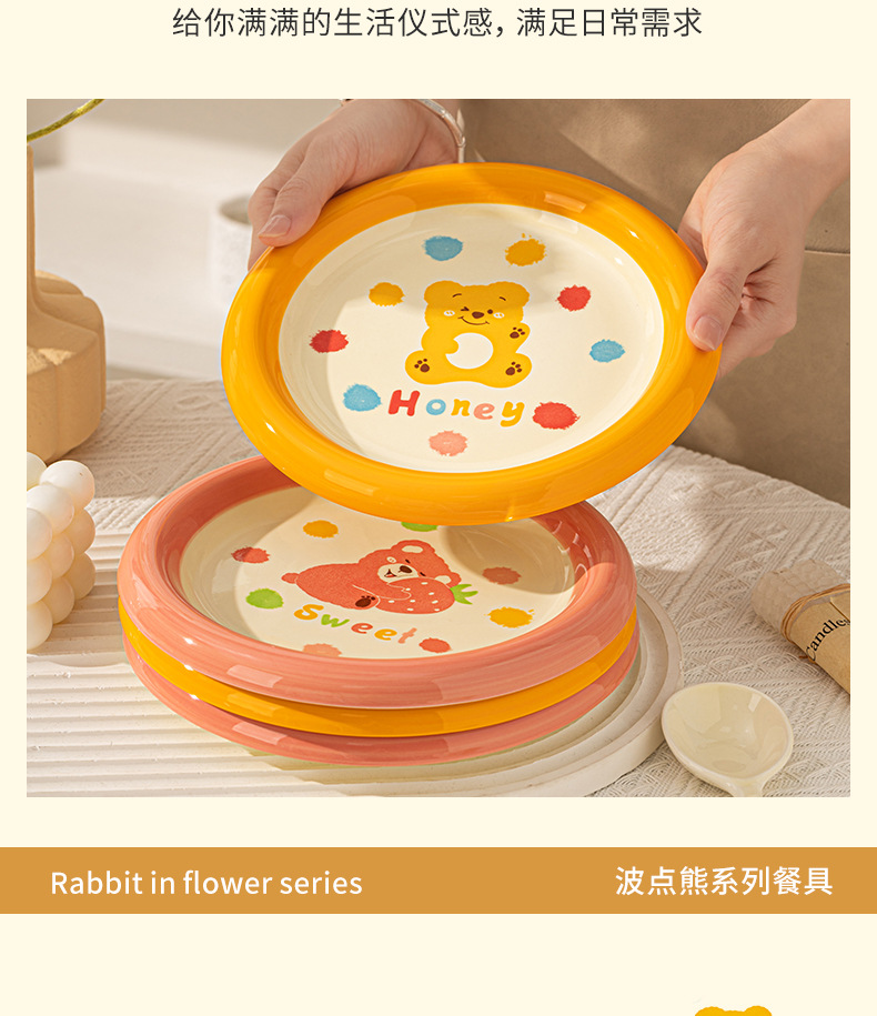 卡通创意波点熊家用陶瓷碗盘子可爱奶油风碗碟套装米饭碗陶瓷餐具