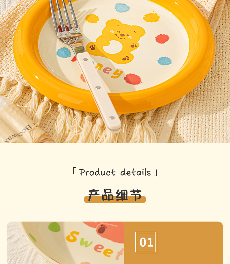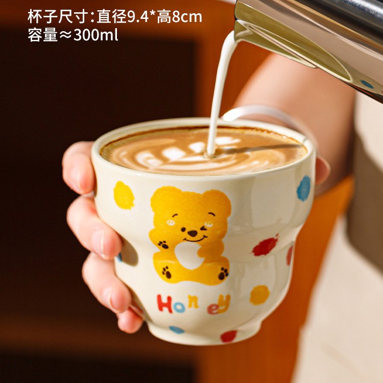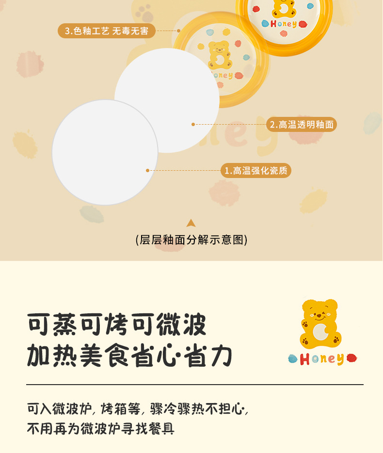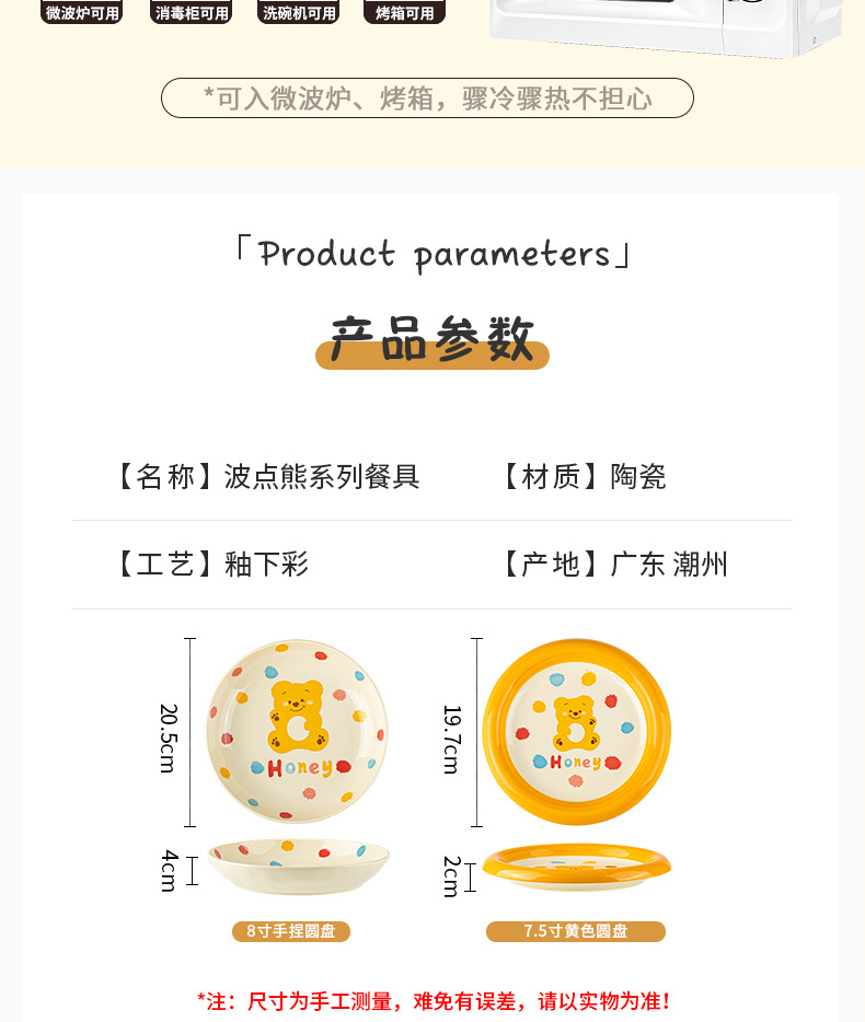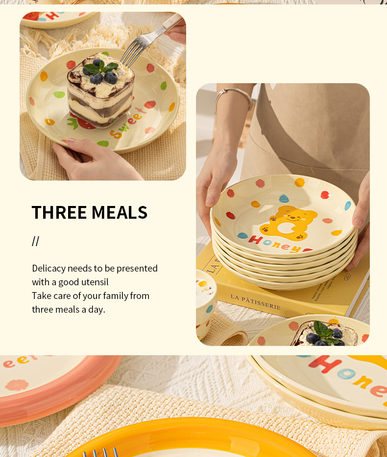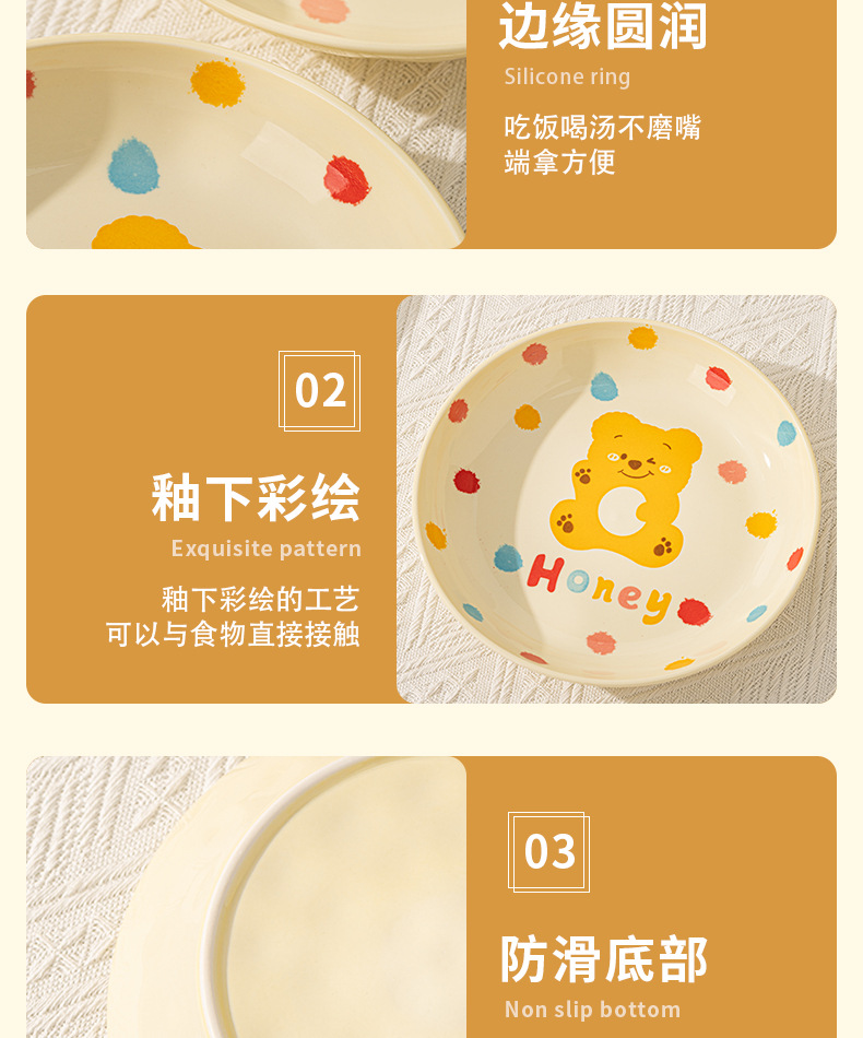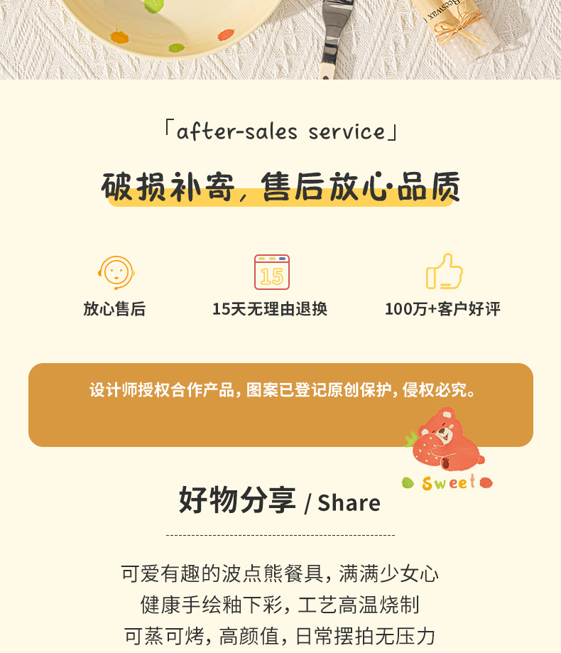 卡通创意波点熊家用陶瓷碗盘子可爱奶油风碗碟套装米饭碗陶瓷餐具