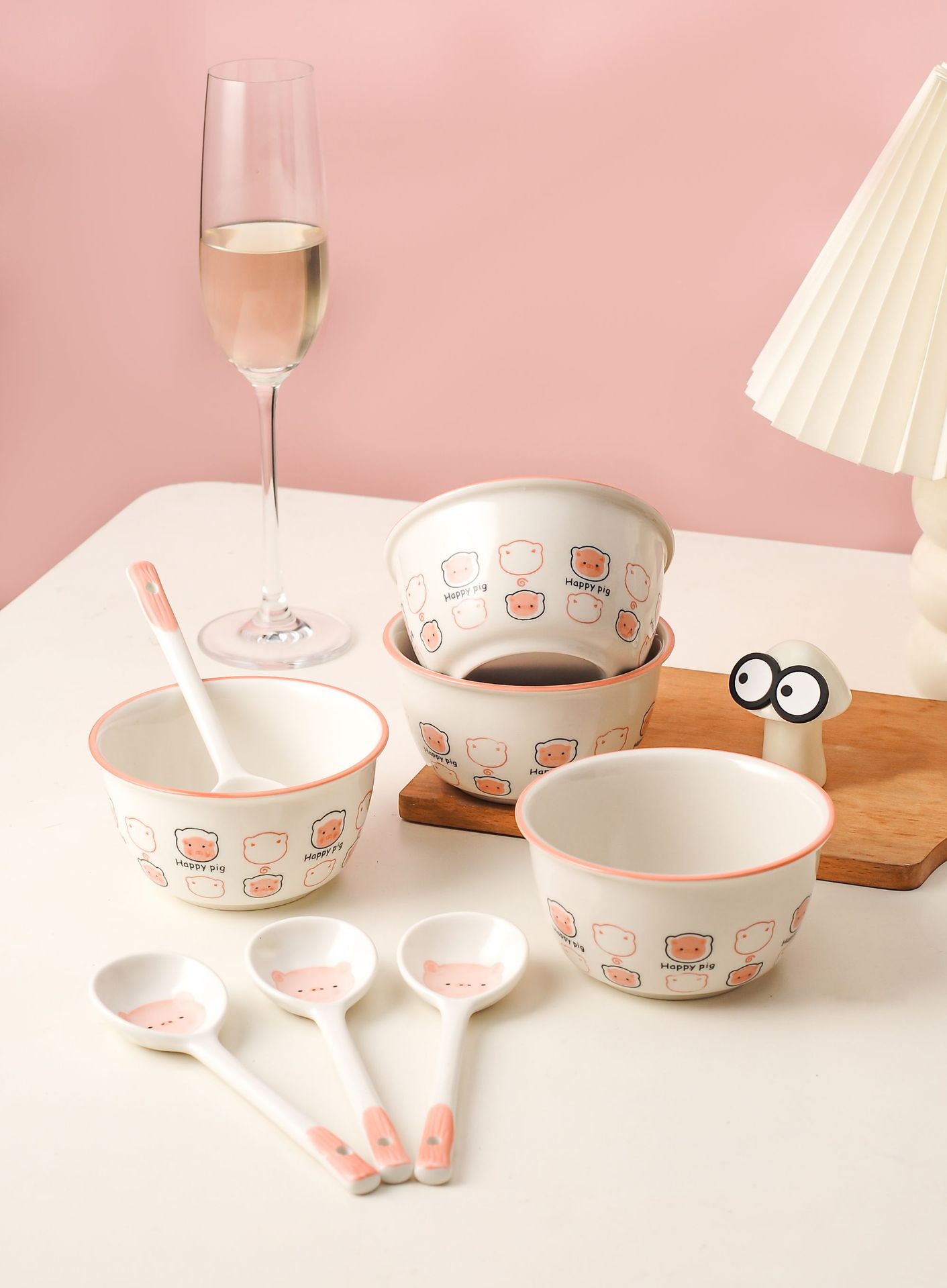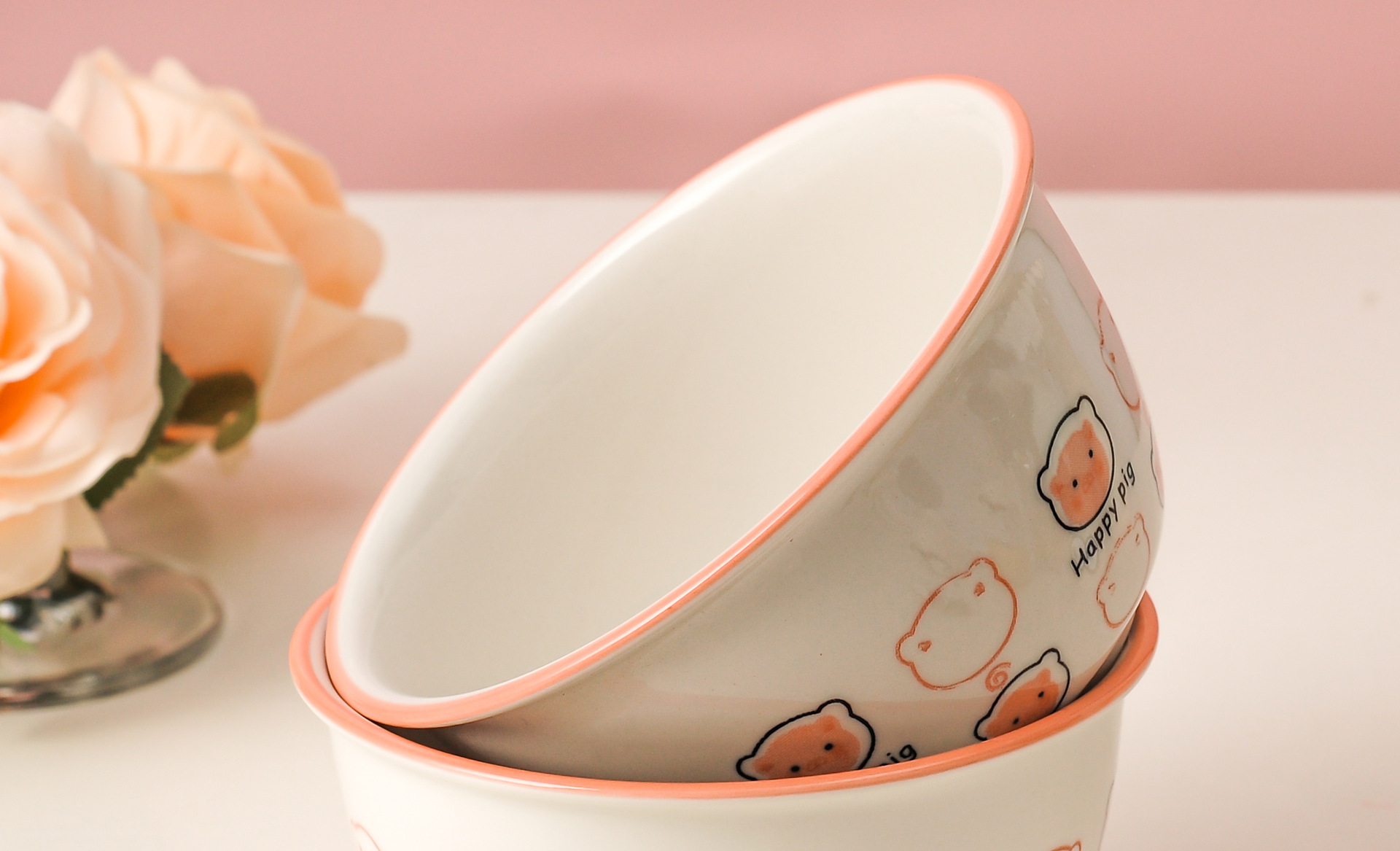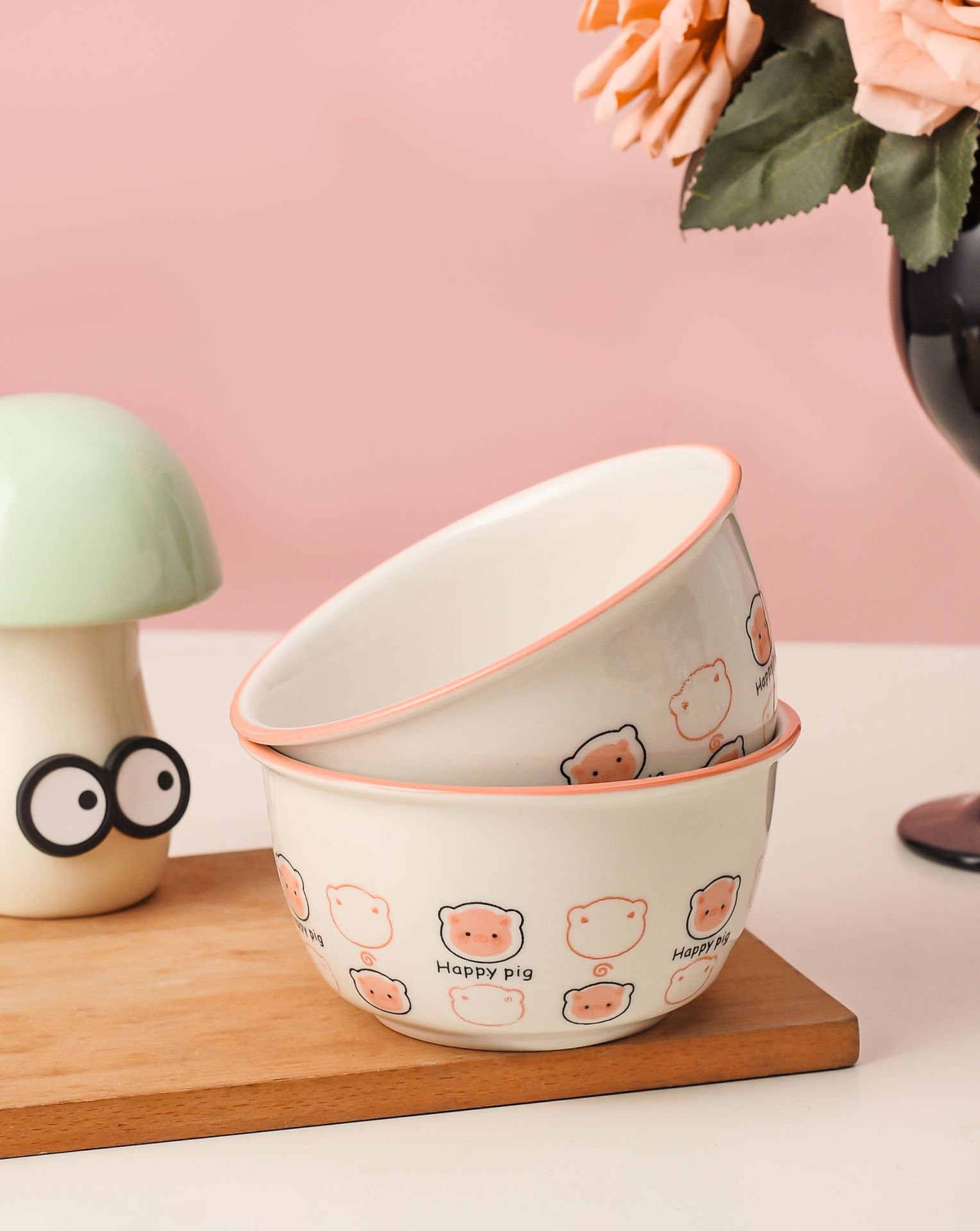 pig ceramic rice bowl suit household cute good-looking instant noodles yogurt bowl personal dedicated tableware one portion