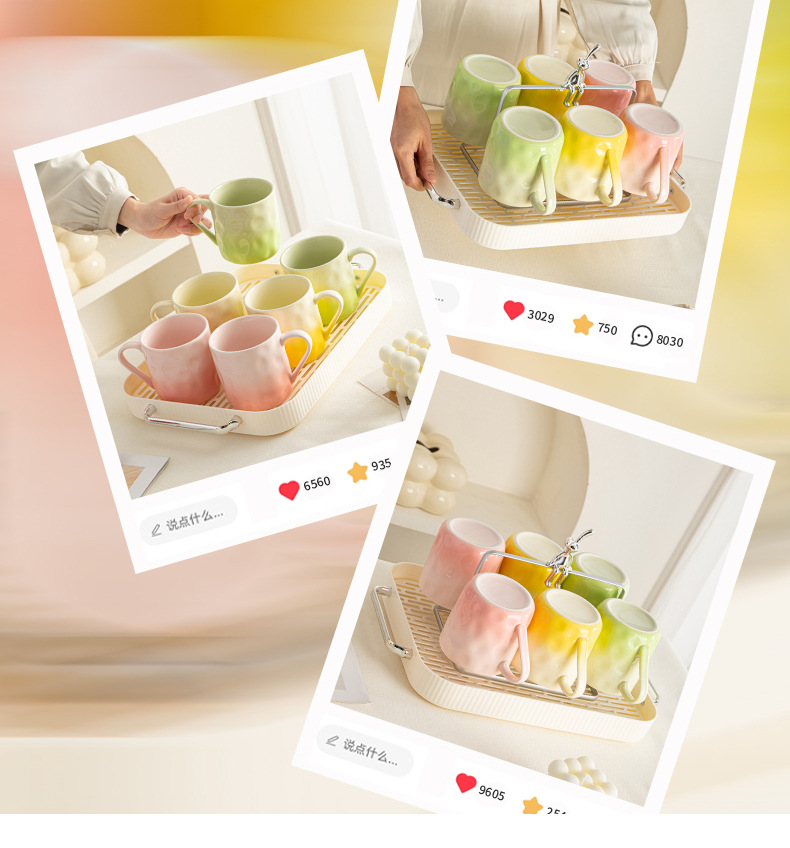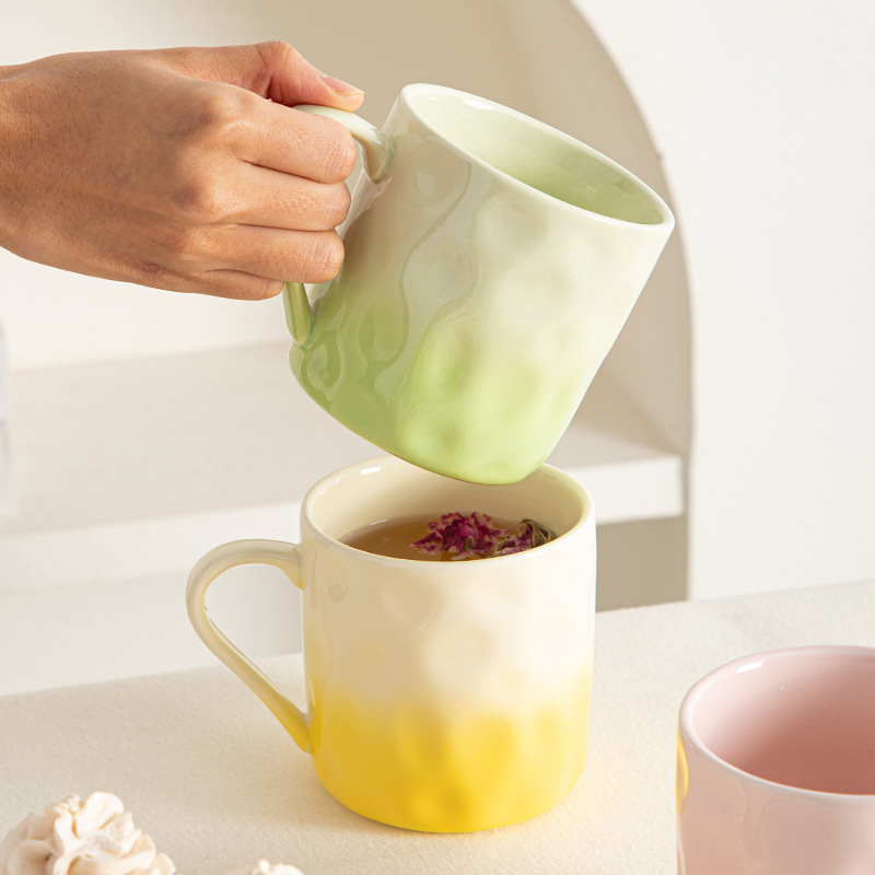 高颜值渐变马克杯女水杯家用设计感陶瓷杯子情侣早餐杯牛奶咖啡杯