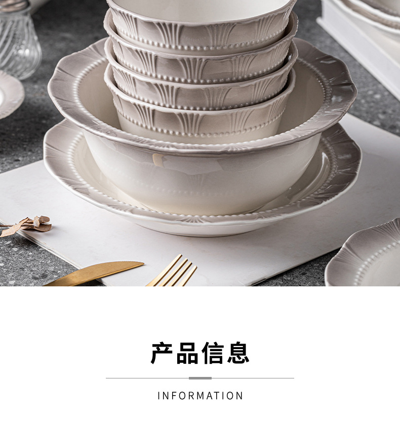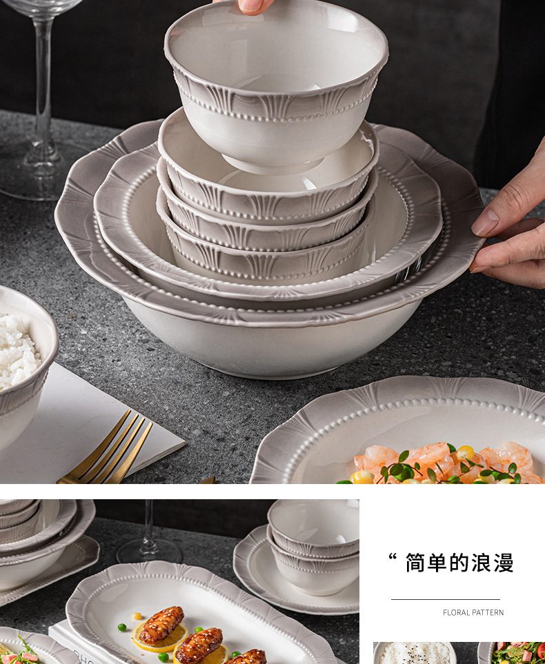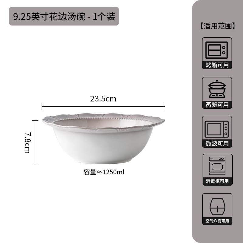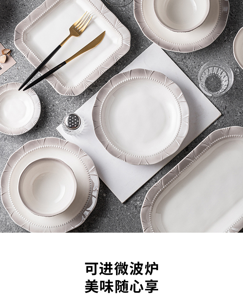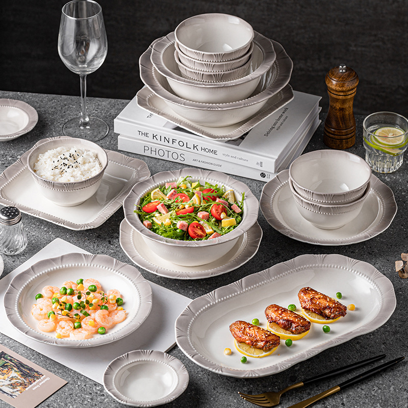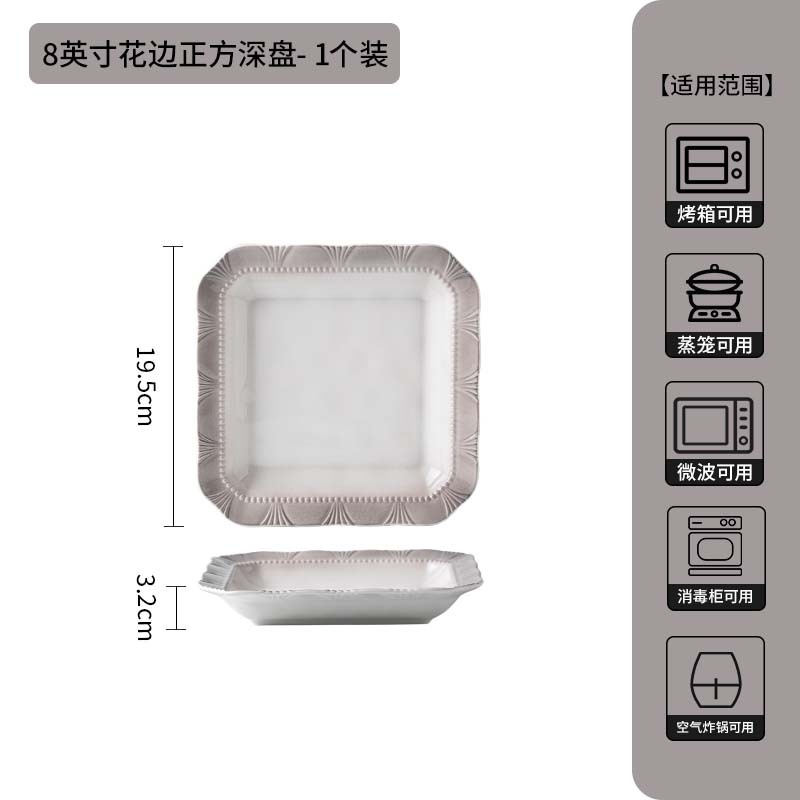 法式花边碗家用盘子米饭碗高级感西餐盘方盘鱼盘汤碗碟子陶瓷餐具