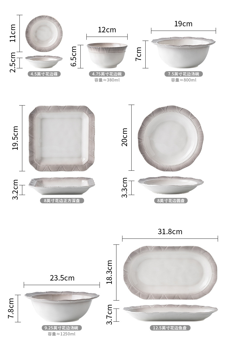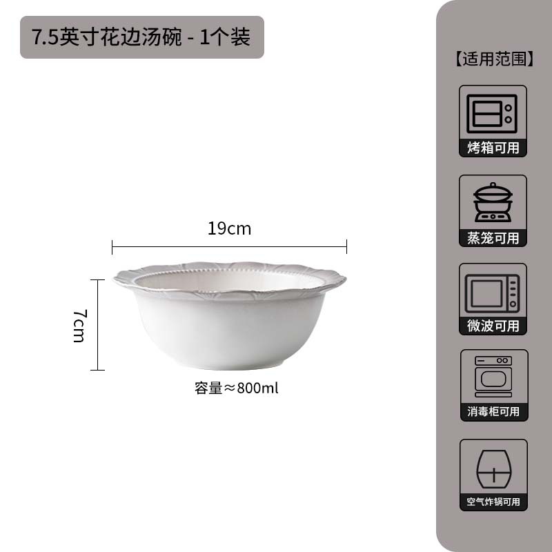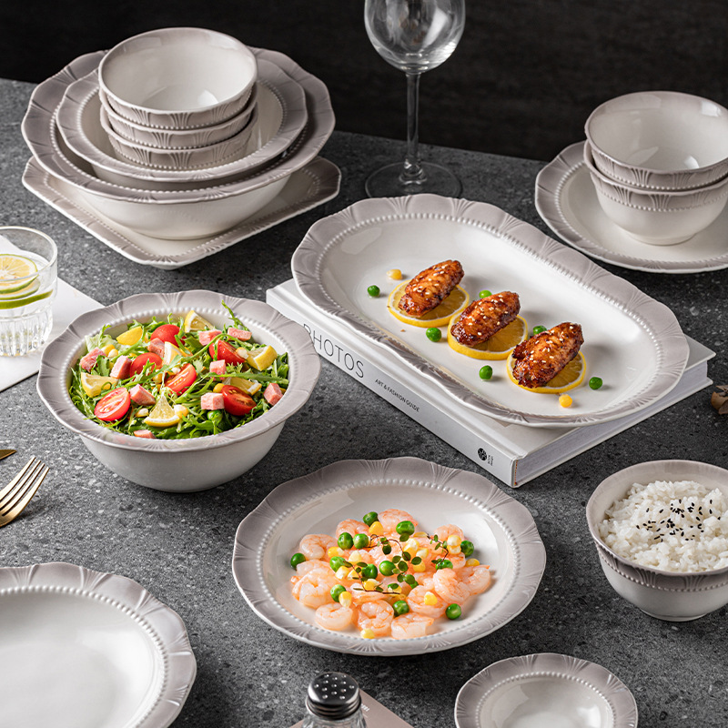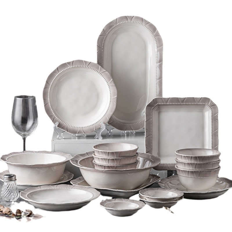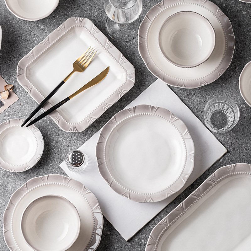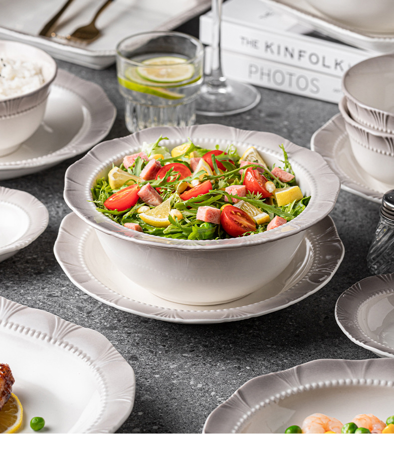 法式花边碗家用盘子米饭碗高级感西餐盘方盘鱼盘汤碗碟子陶瓷餐具