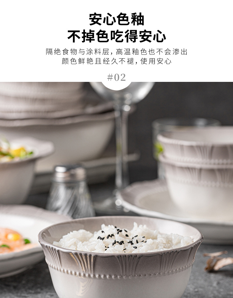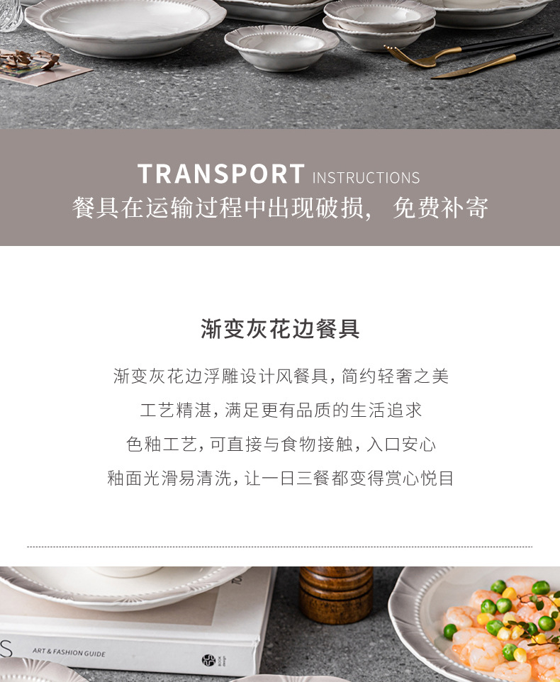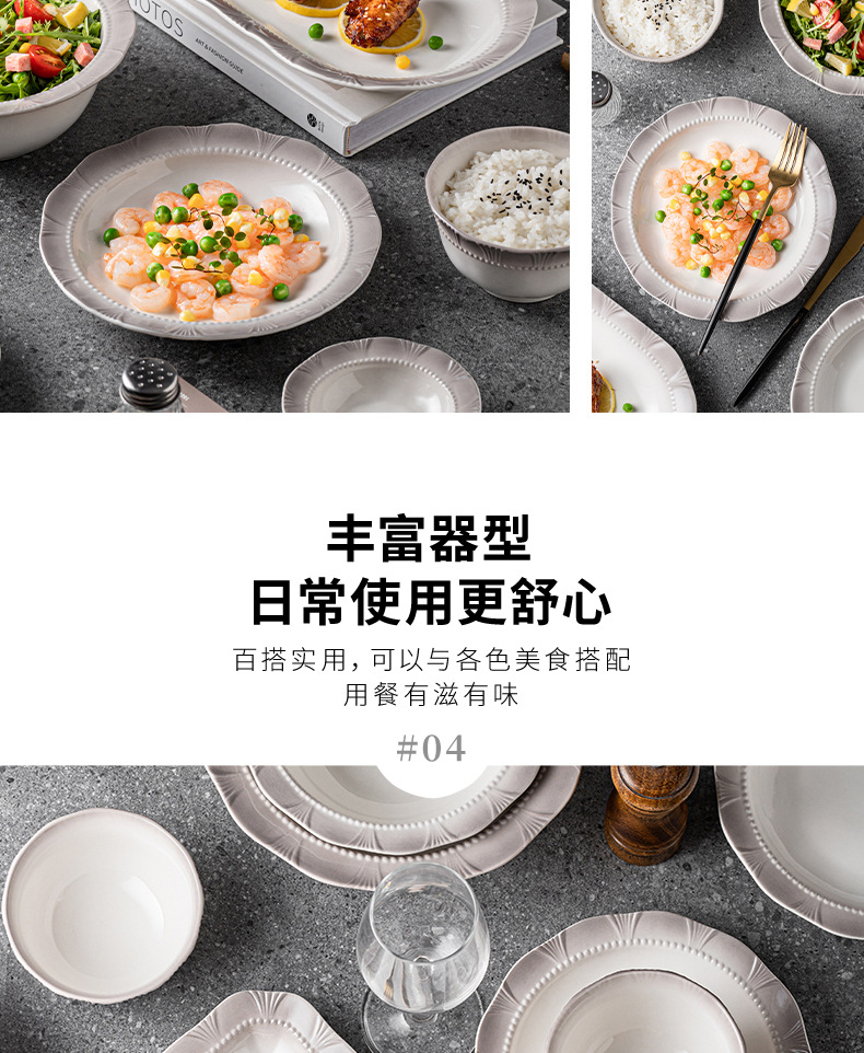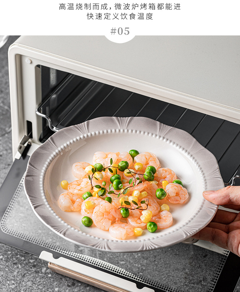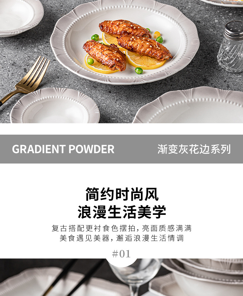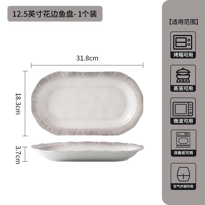 法式花边碗家用盘子米饭碗高级感西餐盘方盘鱼盘汤碗碟子陶瓷餐具