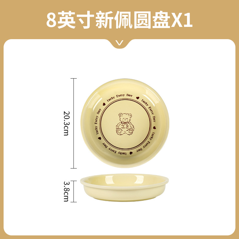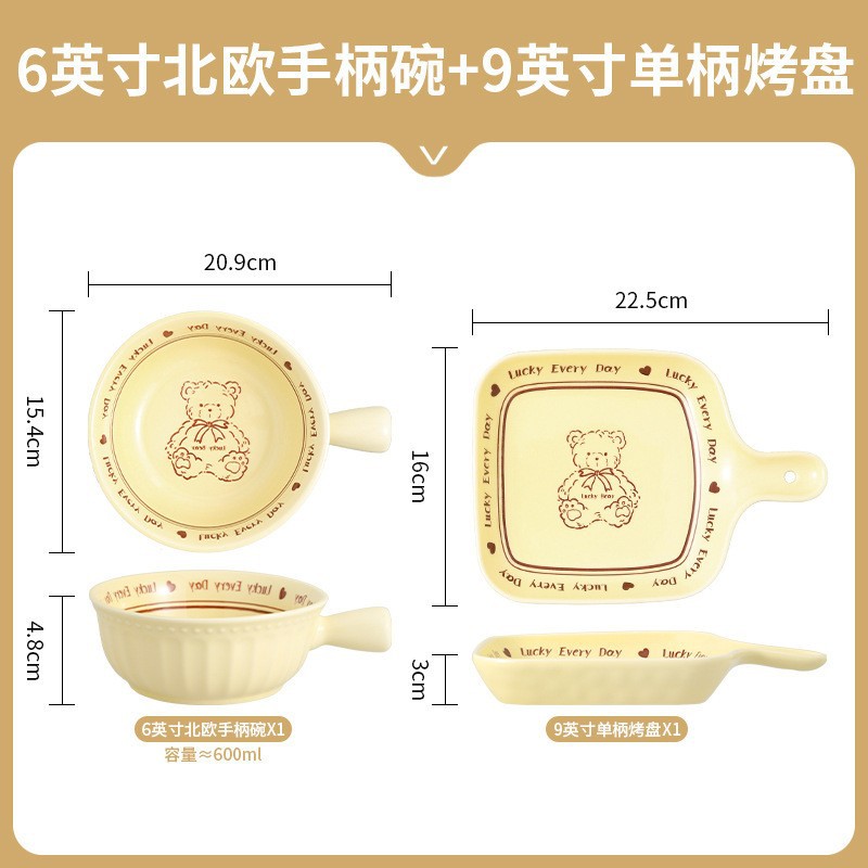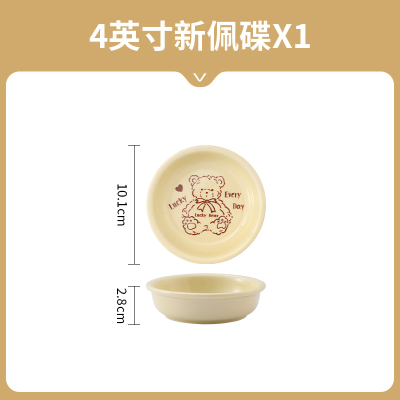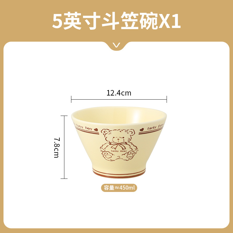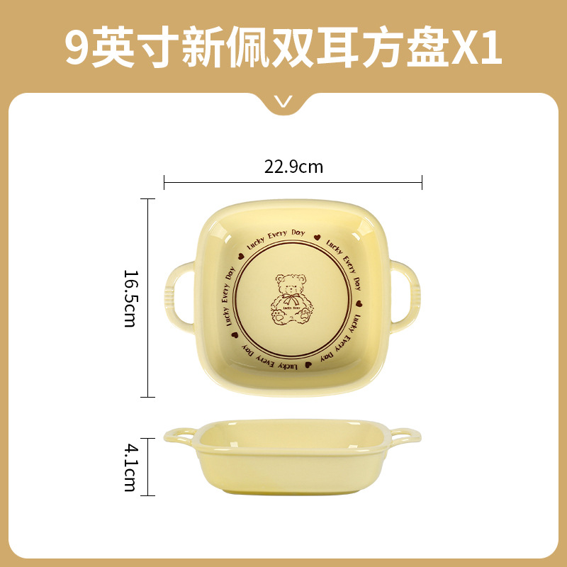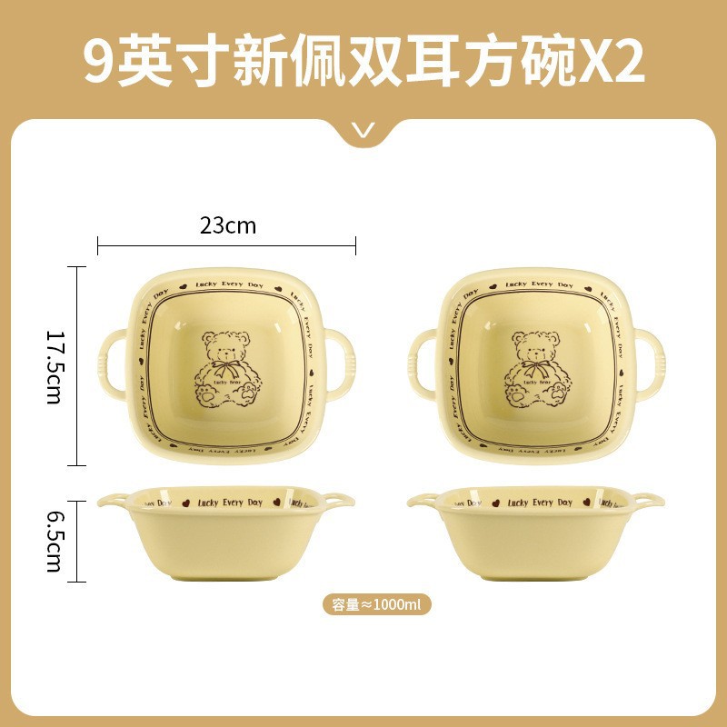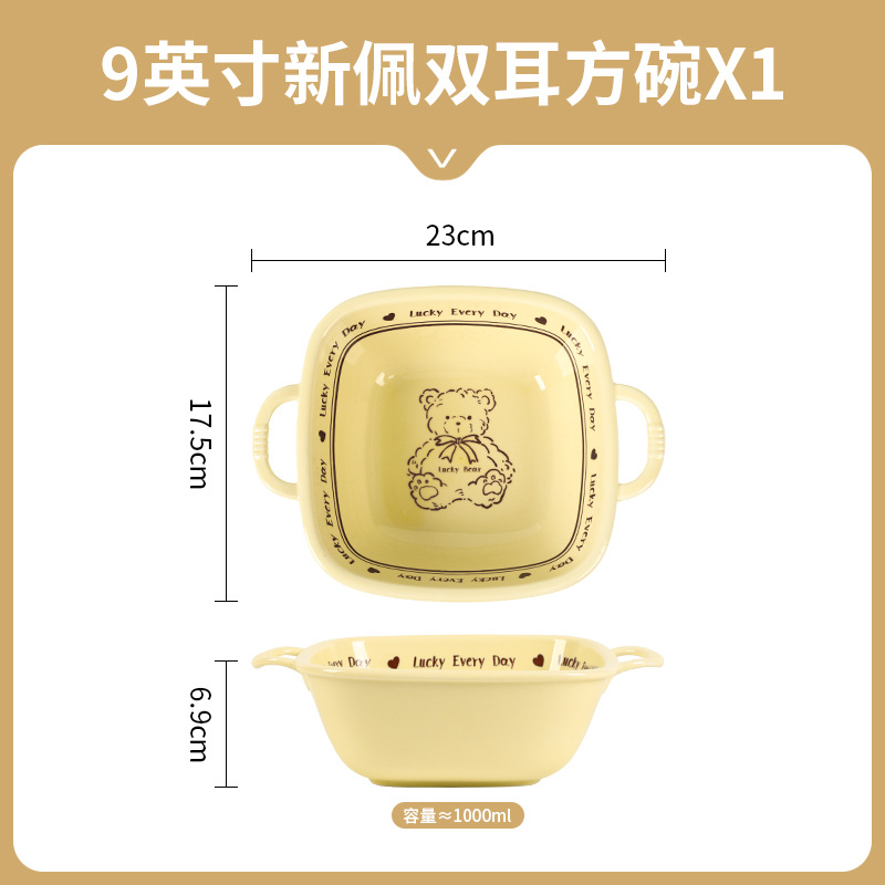 幸运熊儿童餐具 批发碗盘子组合家用卡通陶瓷碗碟盘子饭碗双耳碗