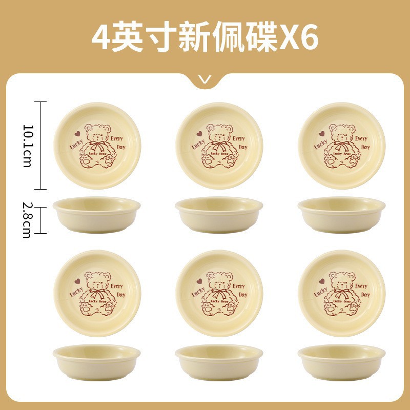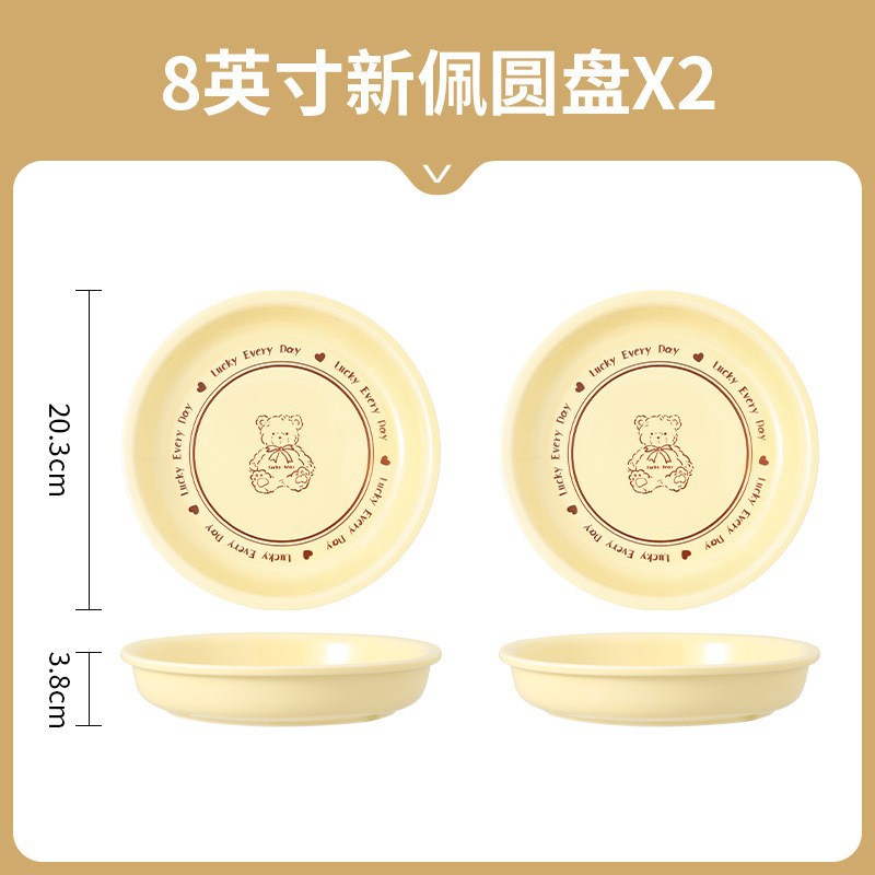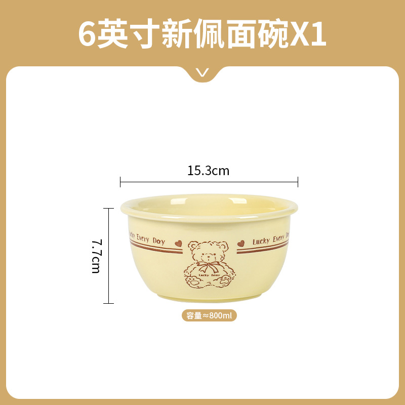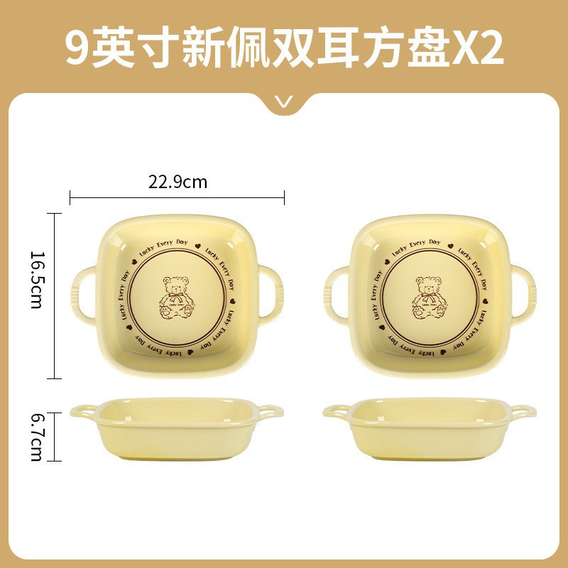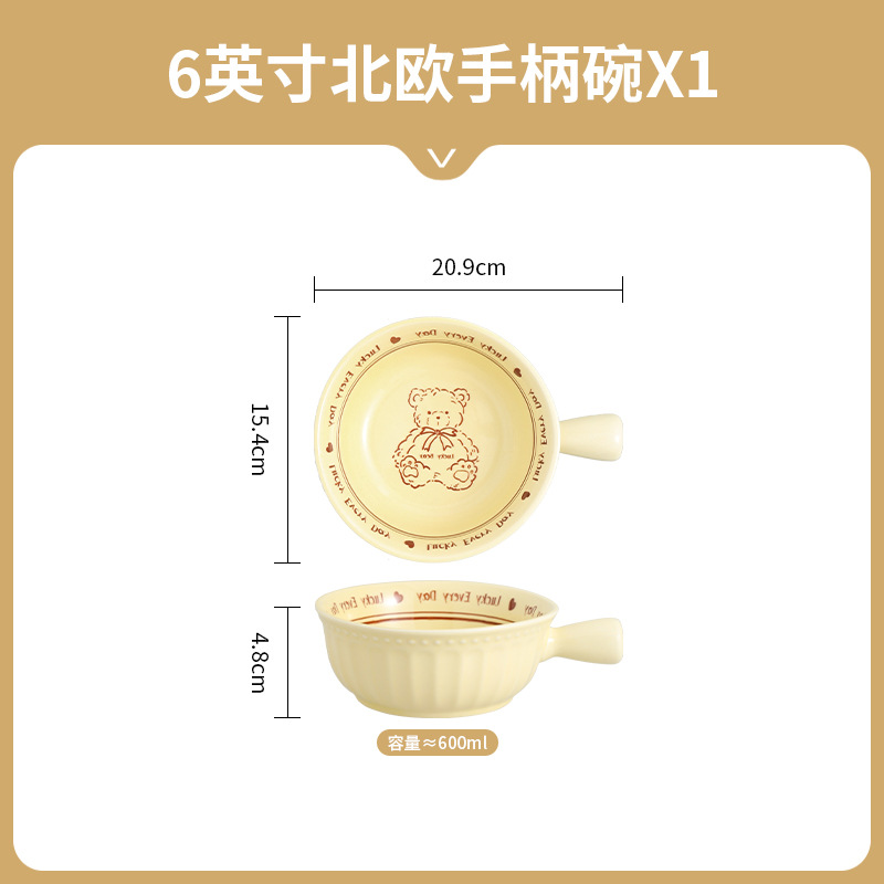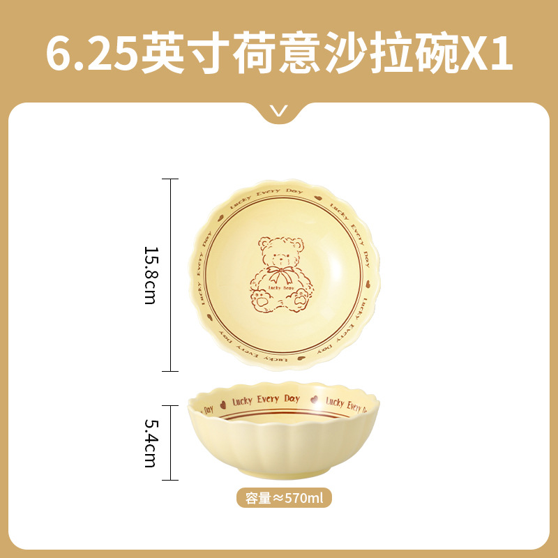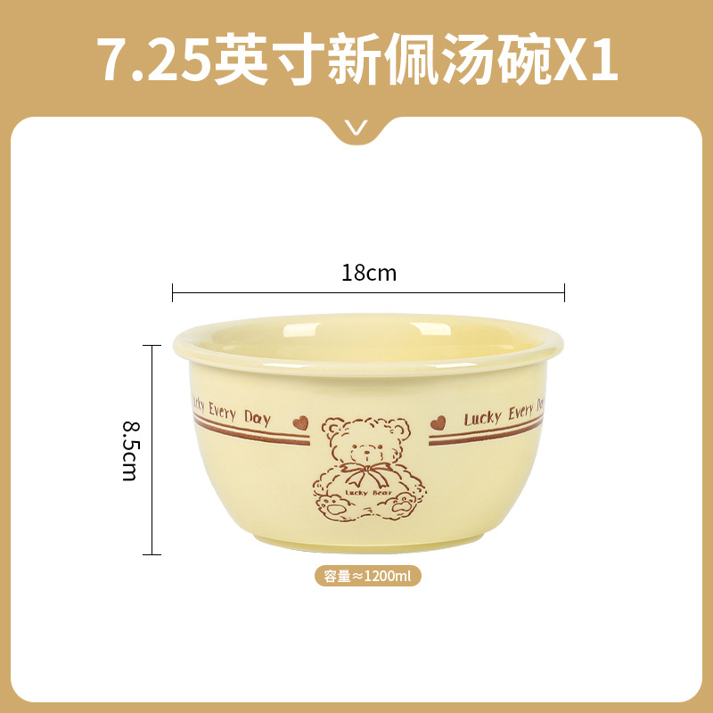 幸运熊儿童餐具 批发碗盘子组合家用卡通陶瓷碗碟盘子饭碗双耳碗