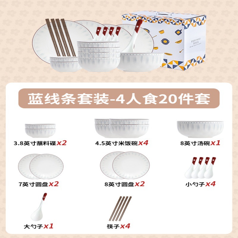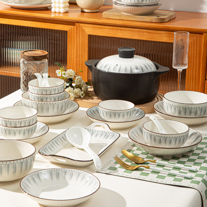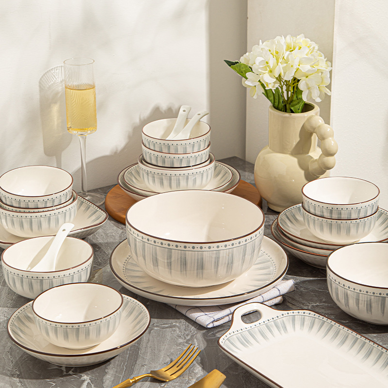 简约陶瓷碗盘子组合家用釉下彩碗碟套装米饭碗菜盘汤碗陶瓷餐具