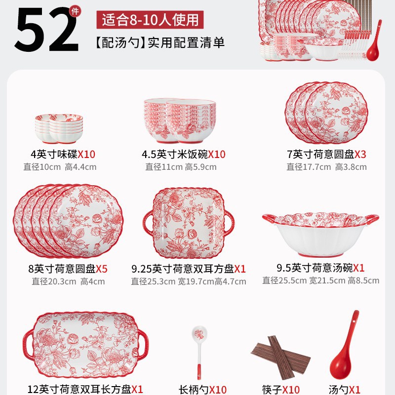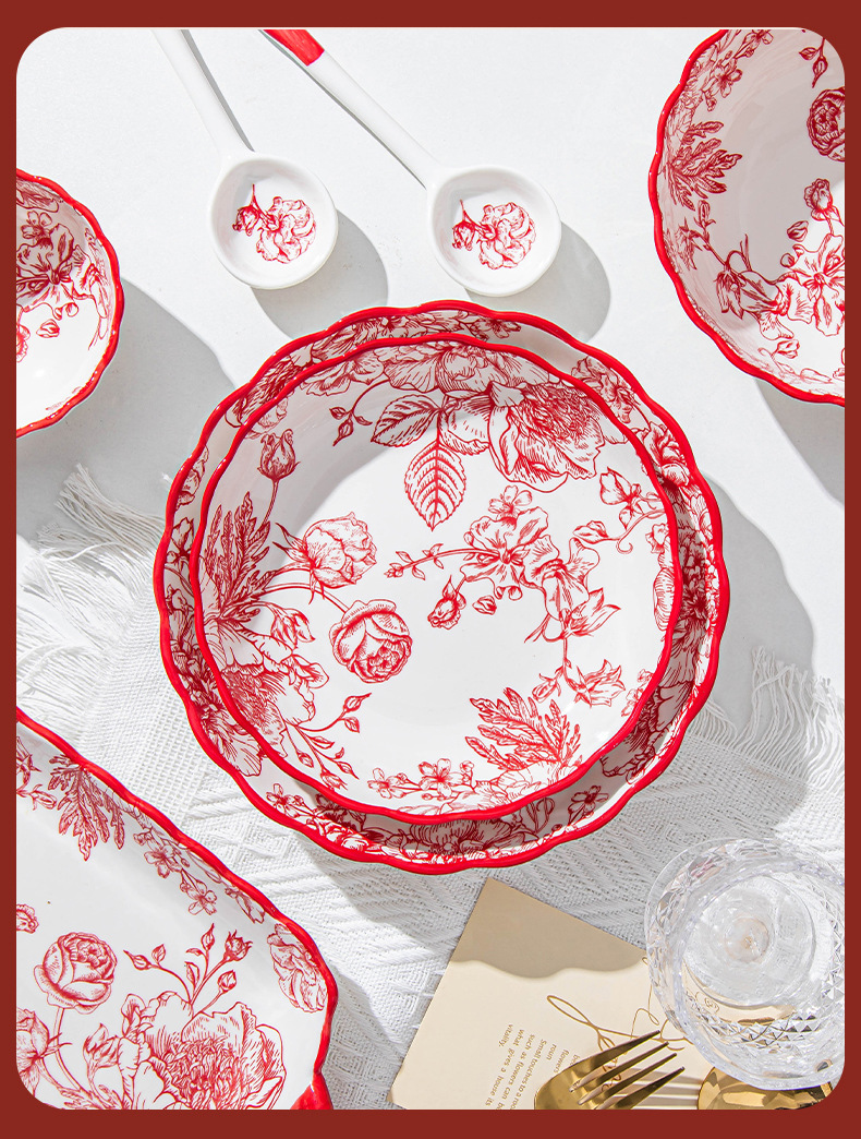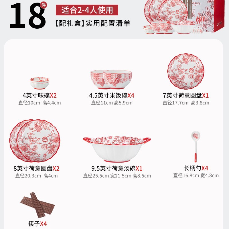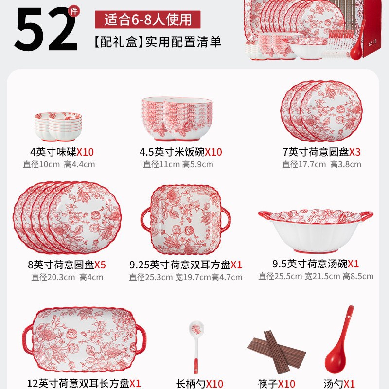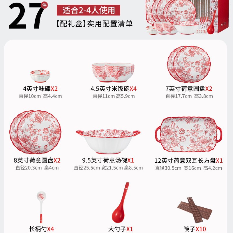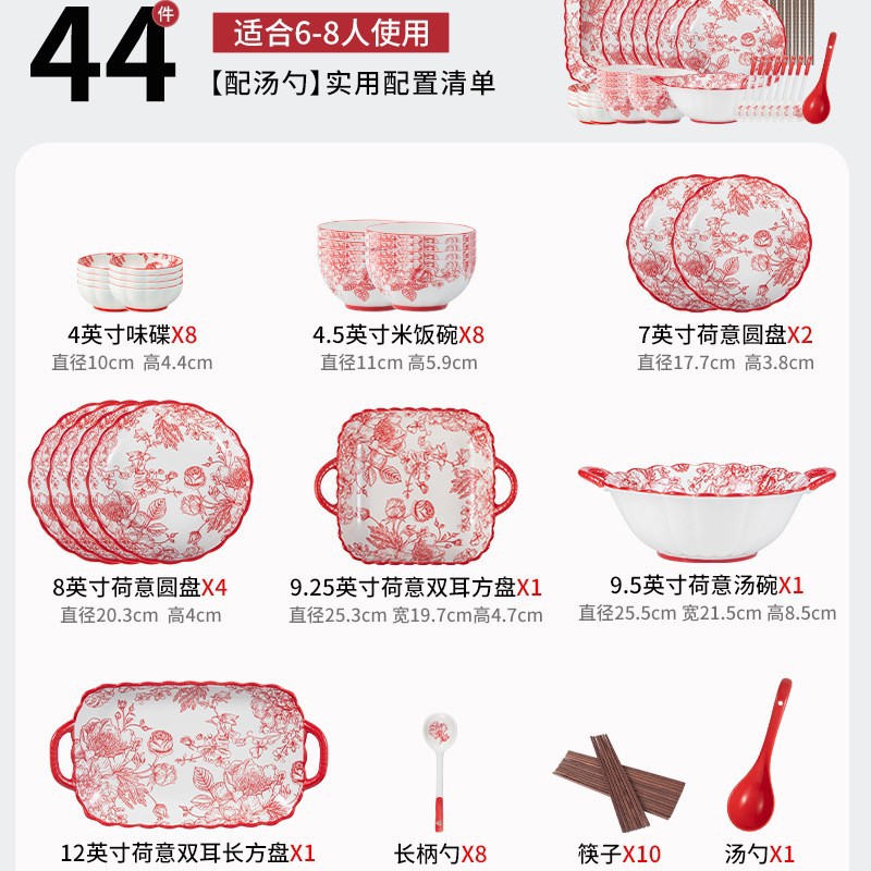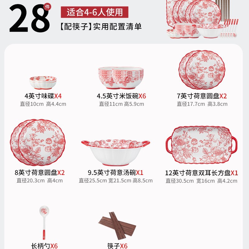 新中式餐具套装国风碗碟盘套装家用新婚礼物玫瑰皇后盘筷餐具套装