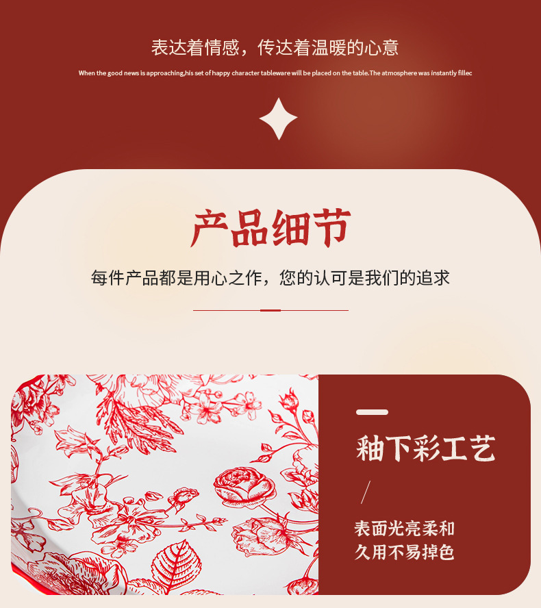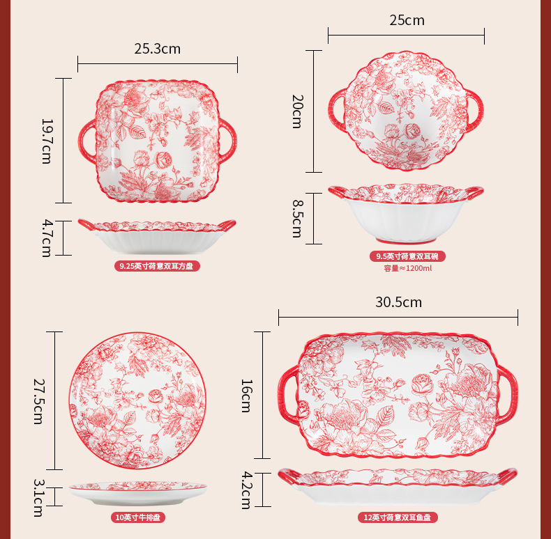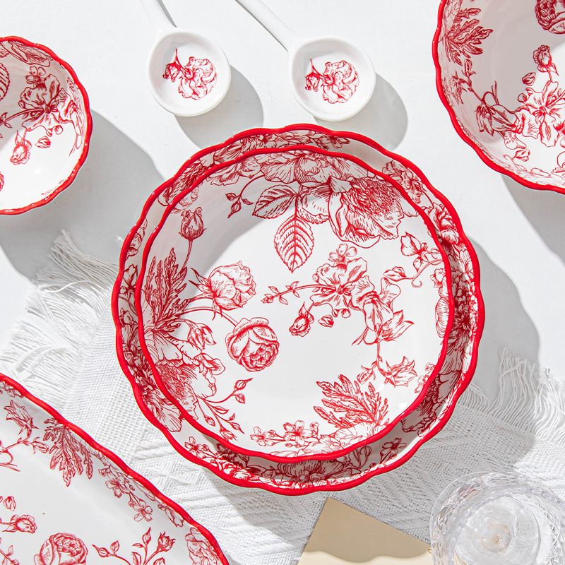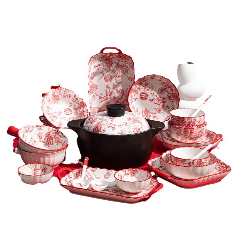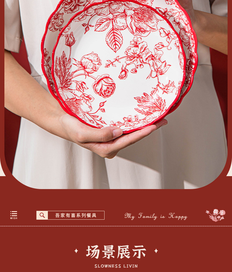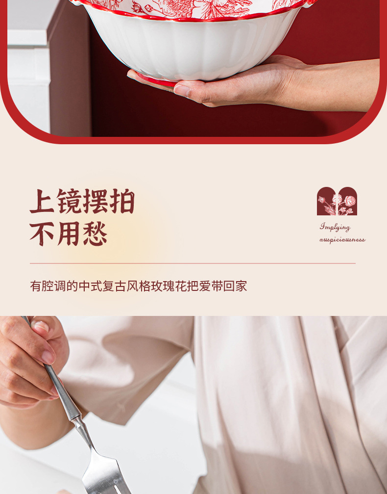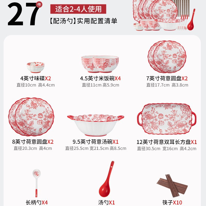 新中式餐具套装国风碗碟盘套装家用新婚礼物玫瑰皇后盘筷餐具套装