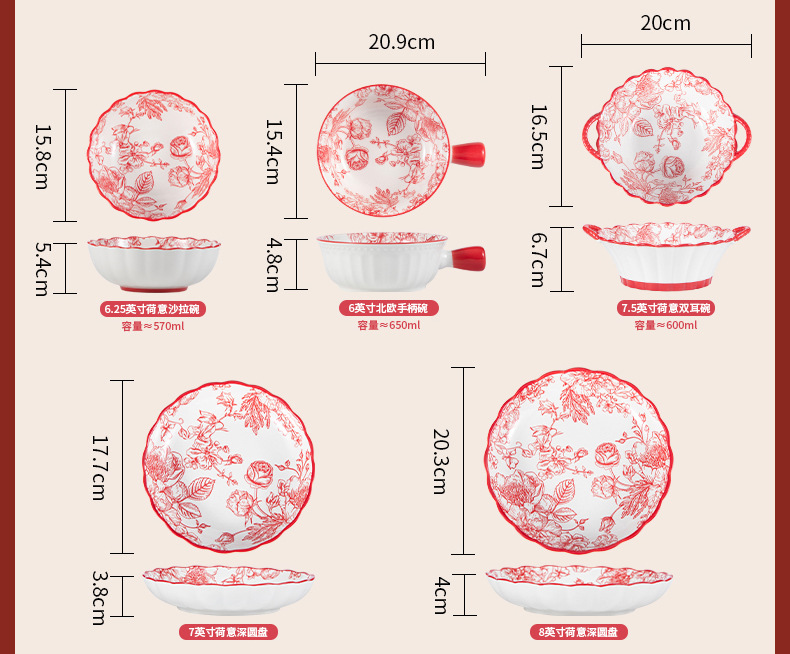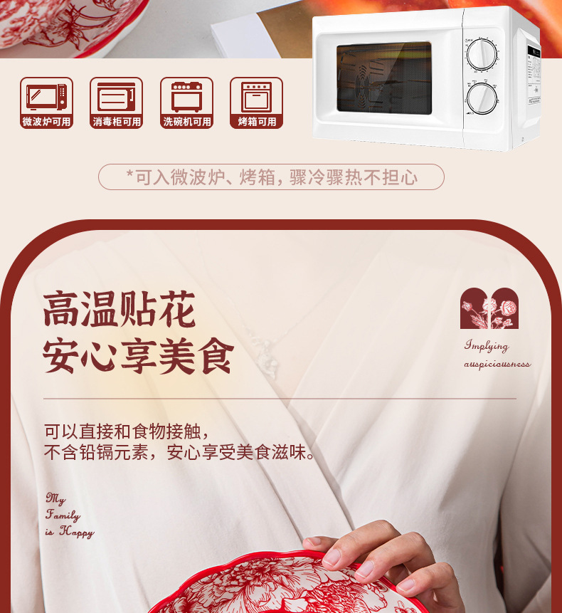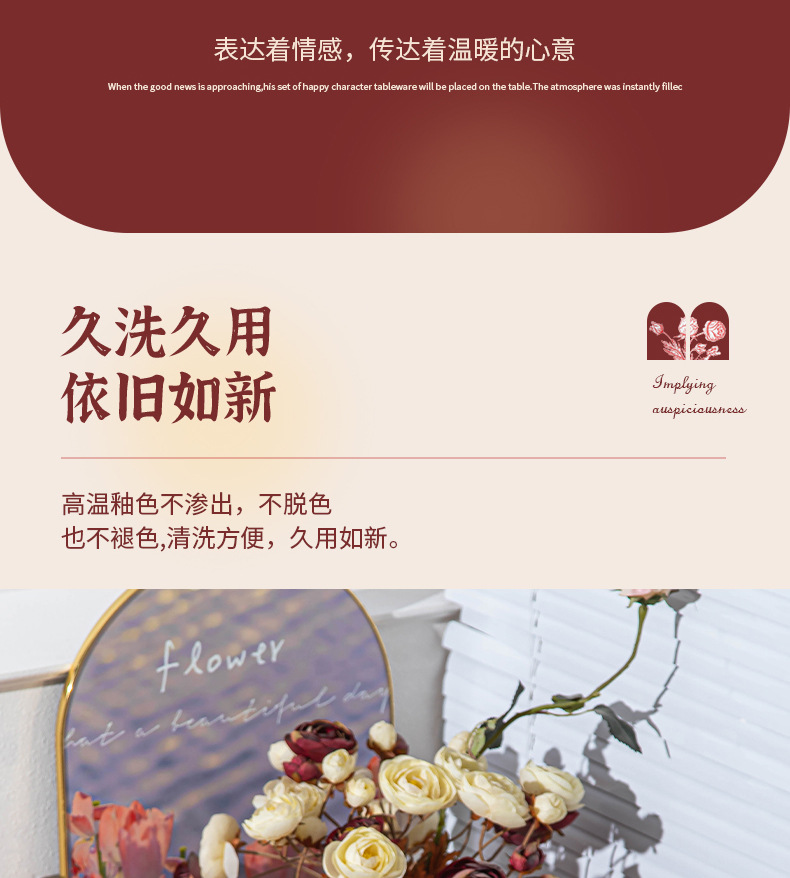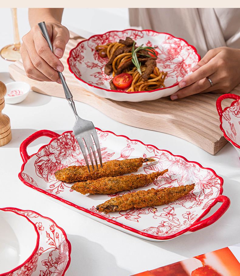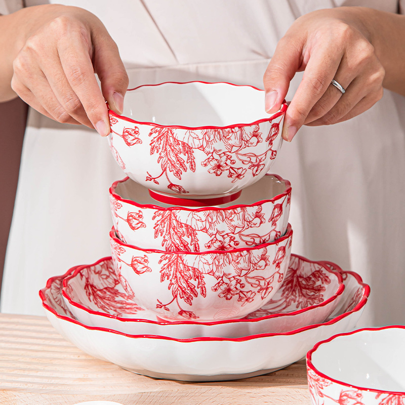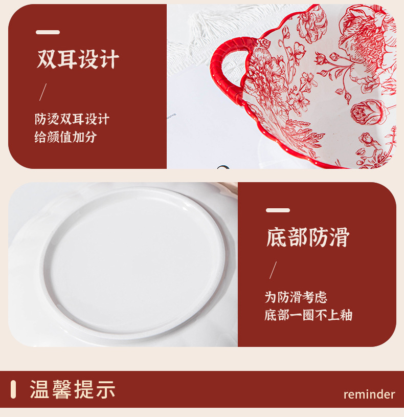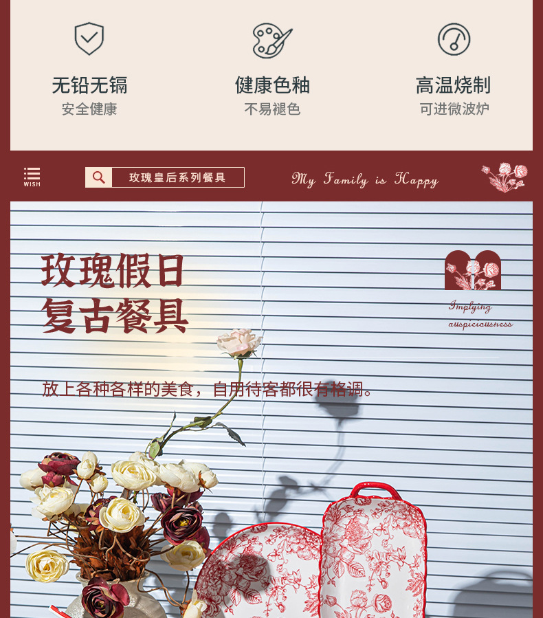 新中式餐具套装国风碗碟盘套装家用新婚礼物玫瑰皇后盘筷餐具套装