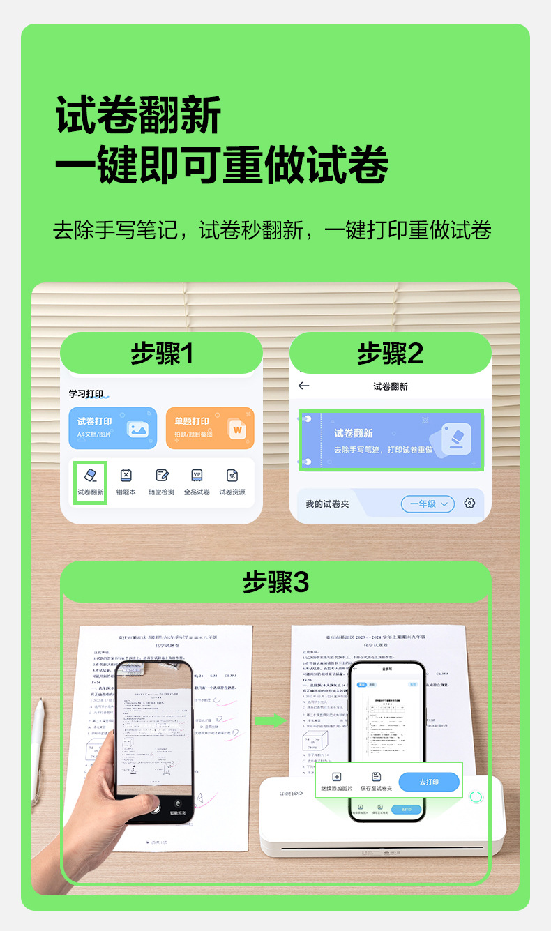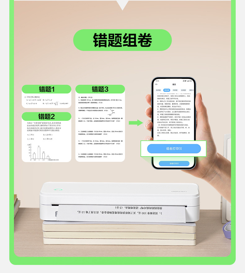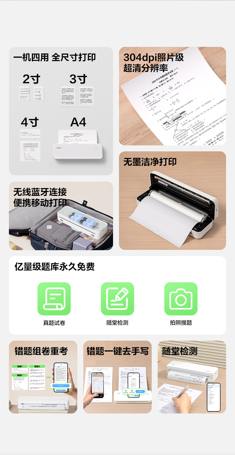 得力X8高清错题打印机A4家用小型初高中学生便携式试卷作业学习机