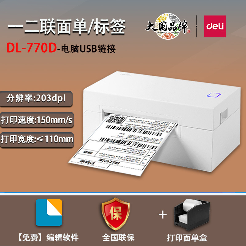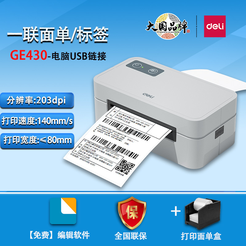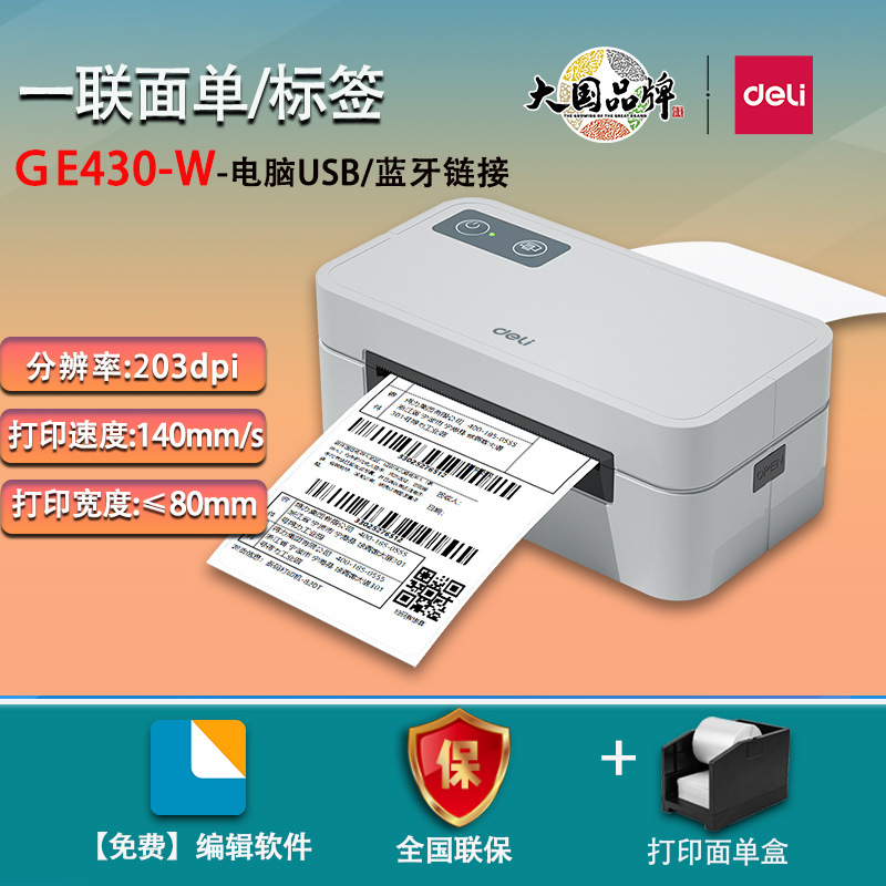 得力GE430快递单打印机一联电子面单热敏标签条码不干胶打单机