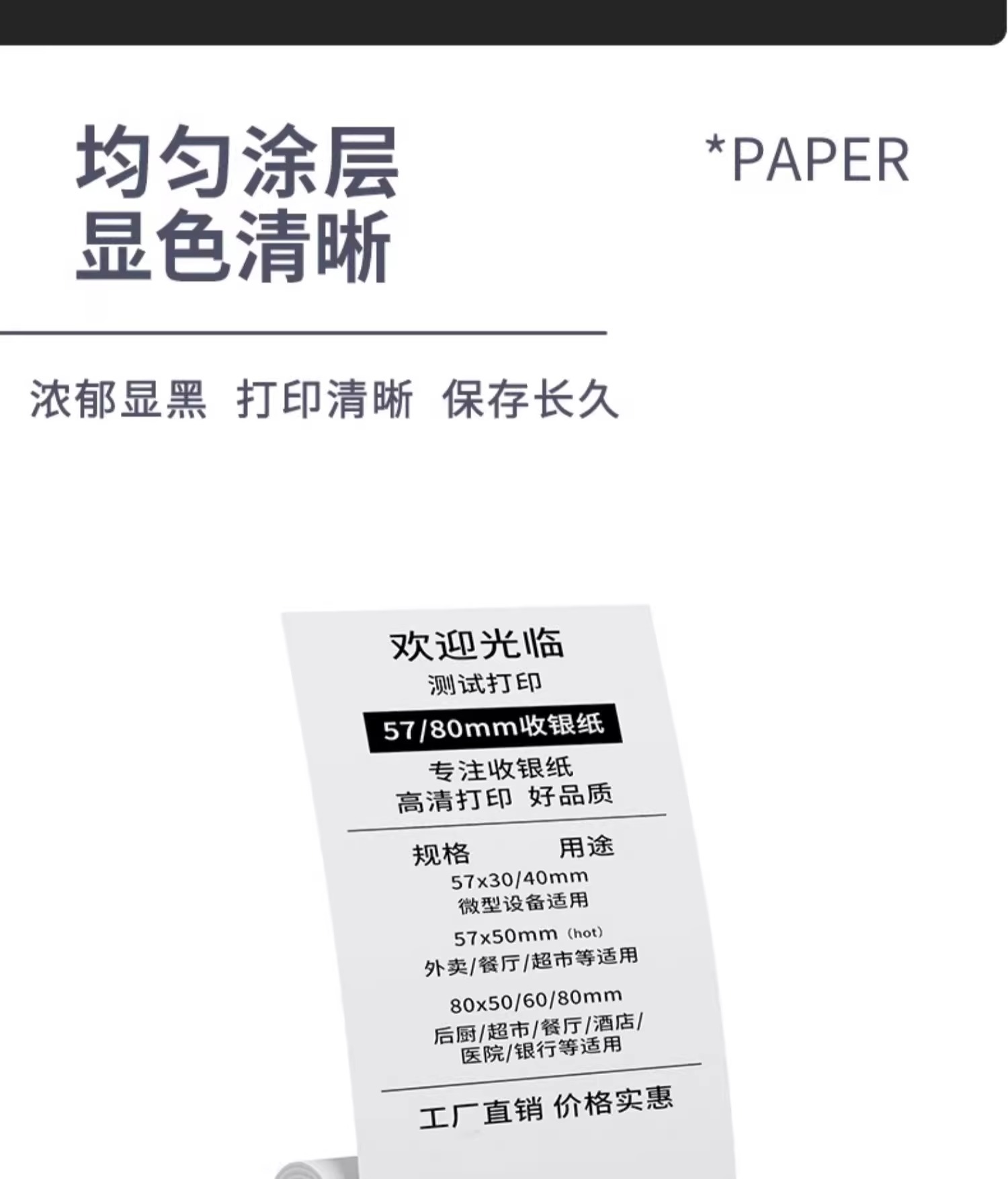 热敏打印纸无管芯收银纸57x50超市美团外卖收银纸80x80后厨小票纸