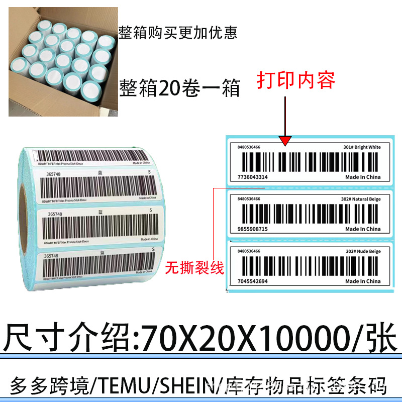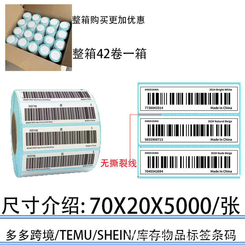 | 30x20-2000 sheets/roll (blue background-no tear line)(30x20-2000张/卷(蓝底-无撕线)) | USD $0.72 | 50000 volume available |