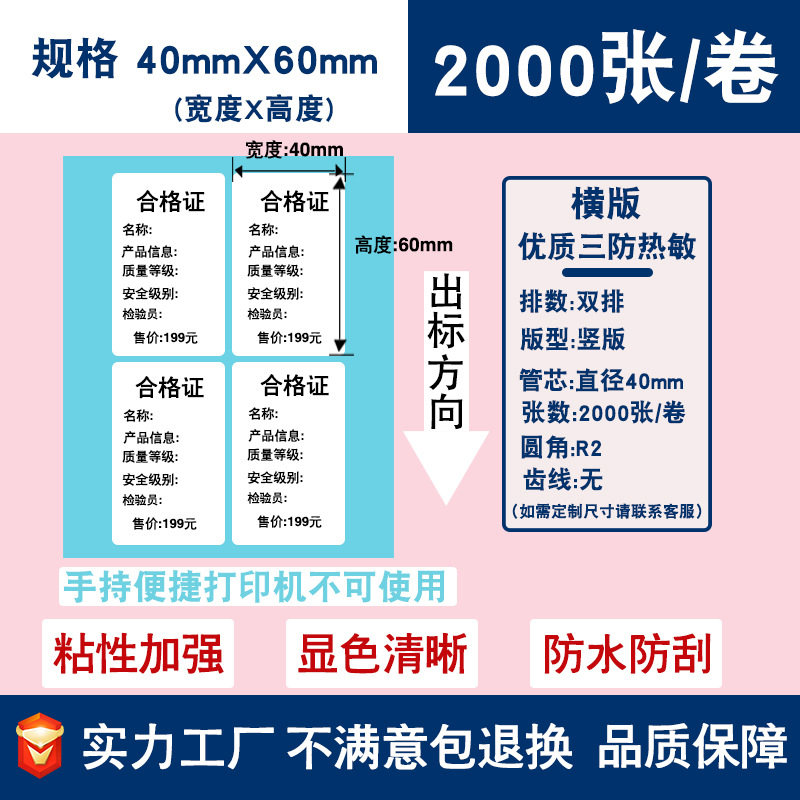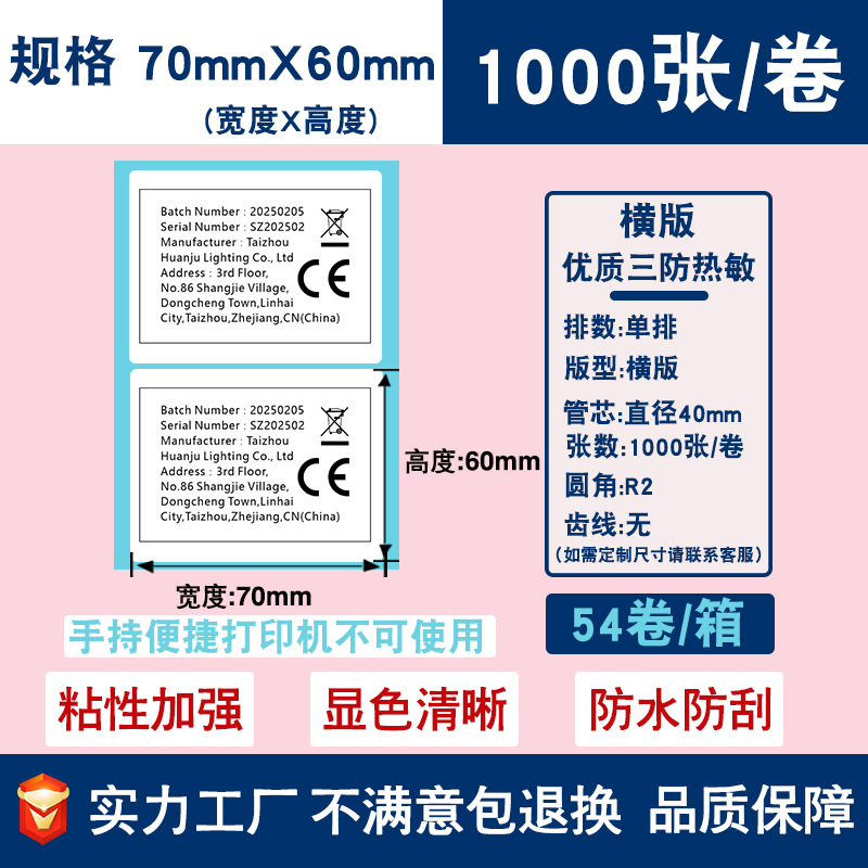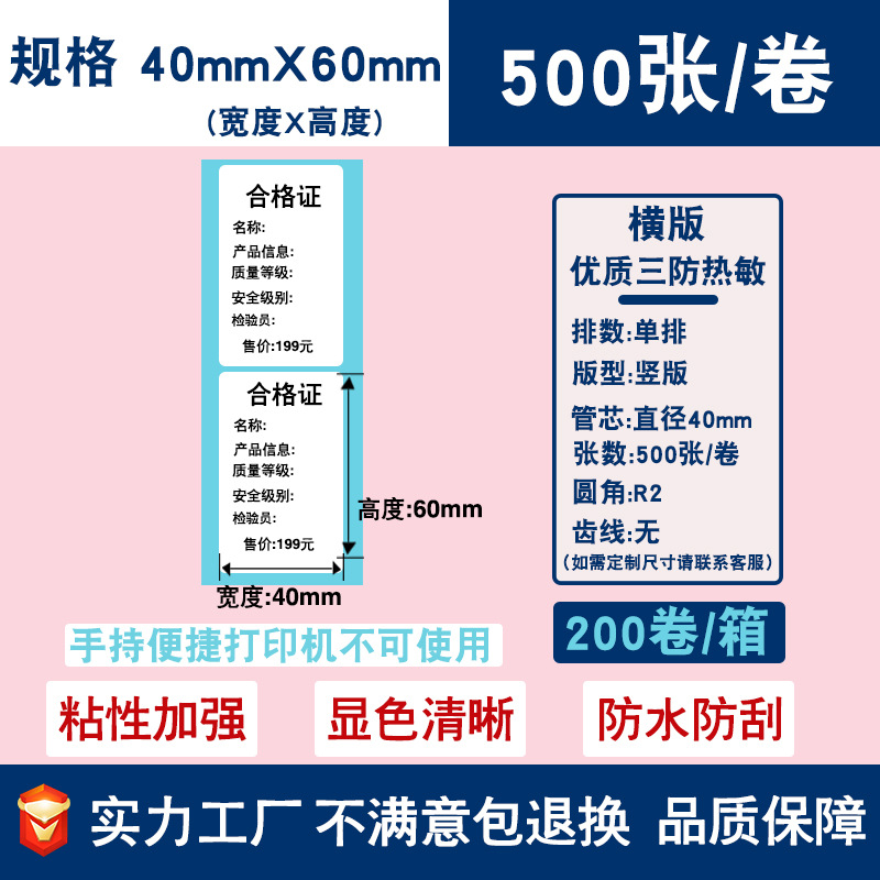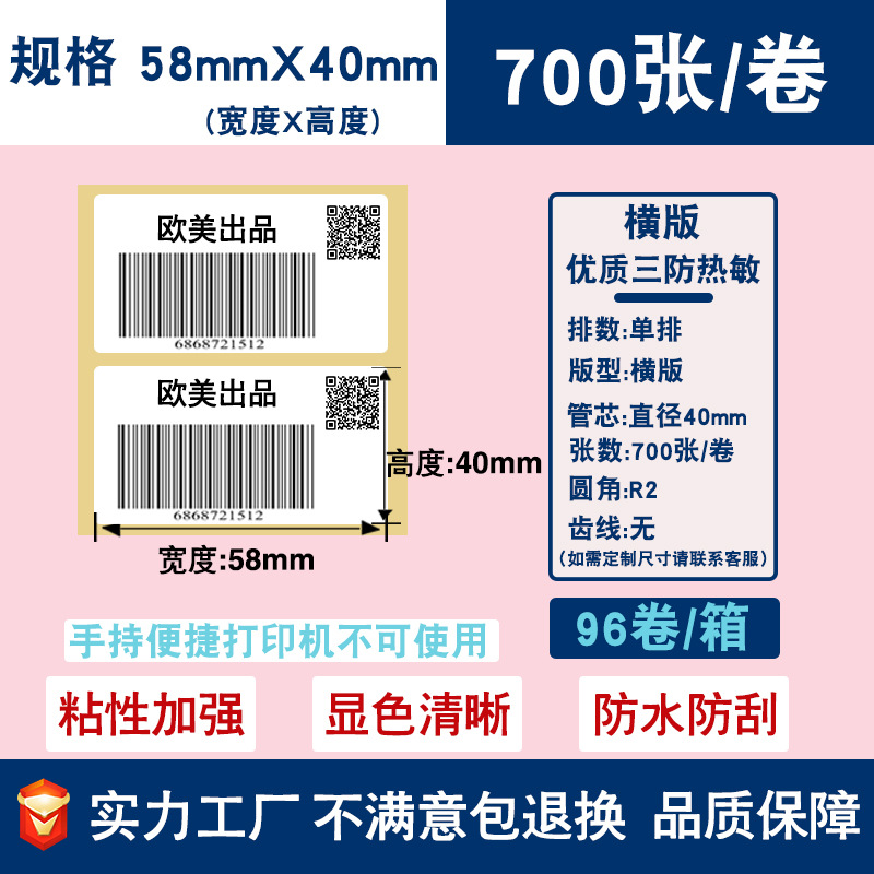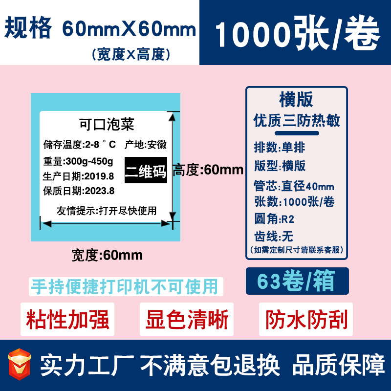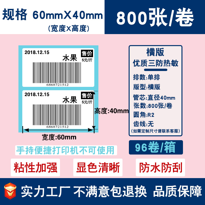 三防热敏标签纸不干胶60×40电子称打印纸价格热敏标签条码贴纸