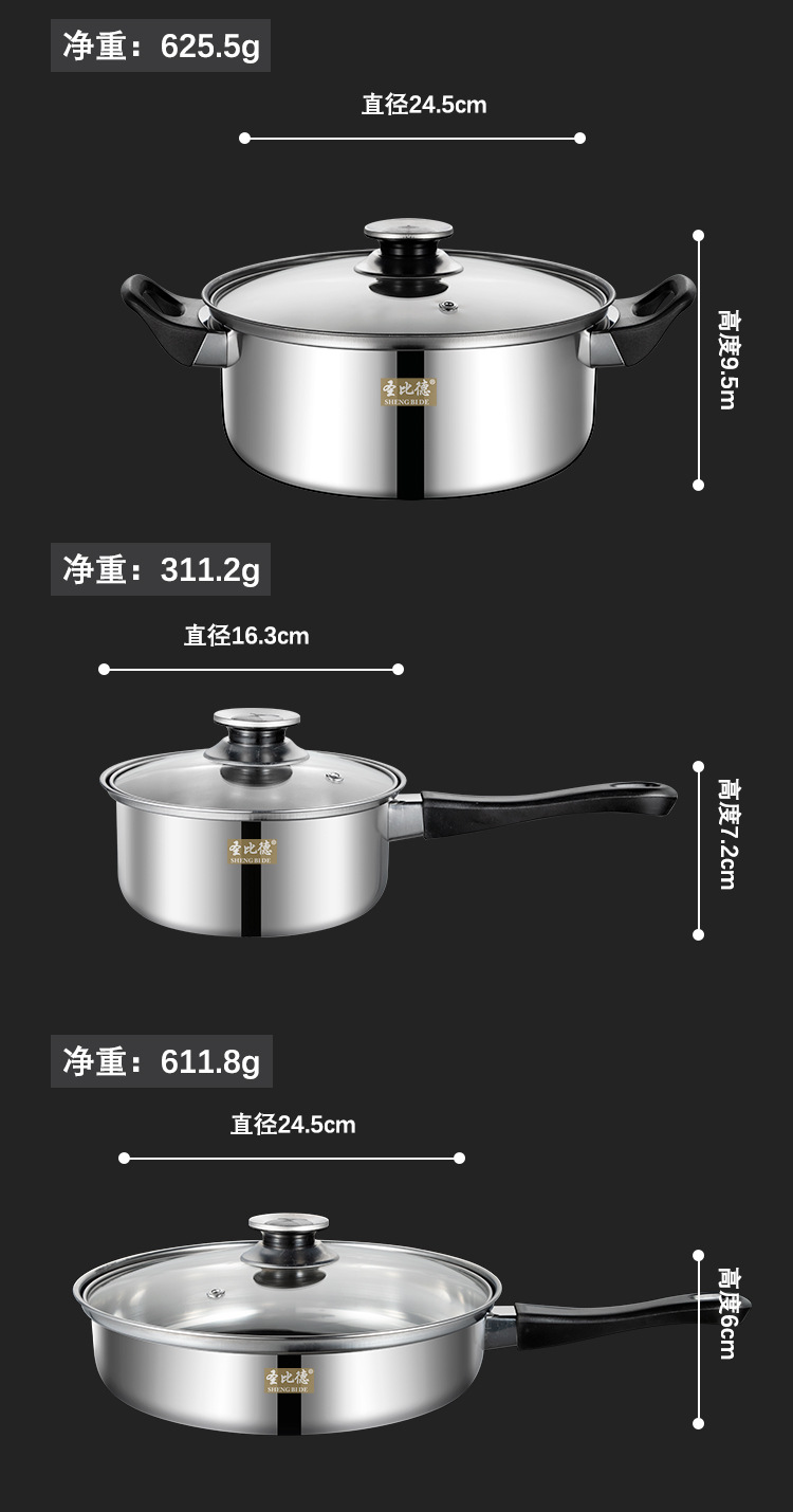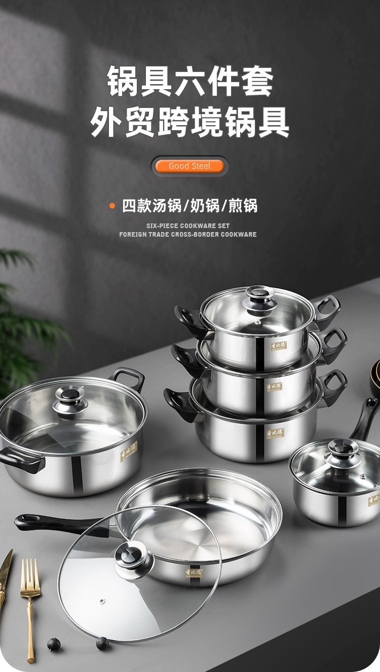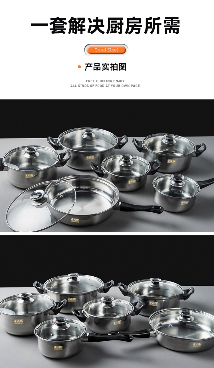 跨境爆品货源锅具12件套不锈钢厨房烹饪套装锅可拆卸手把12件套锅