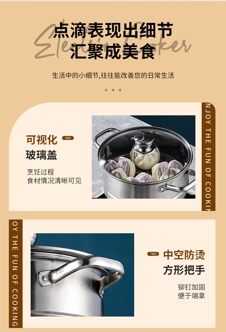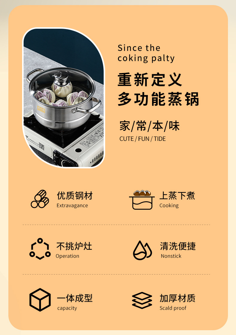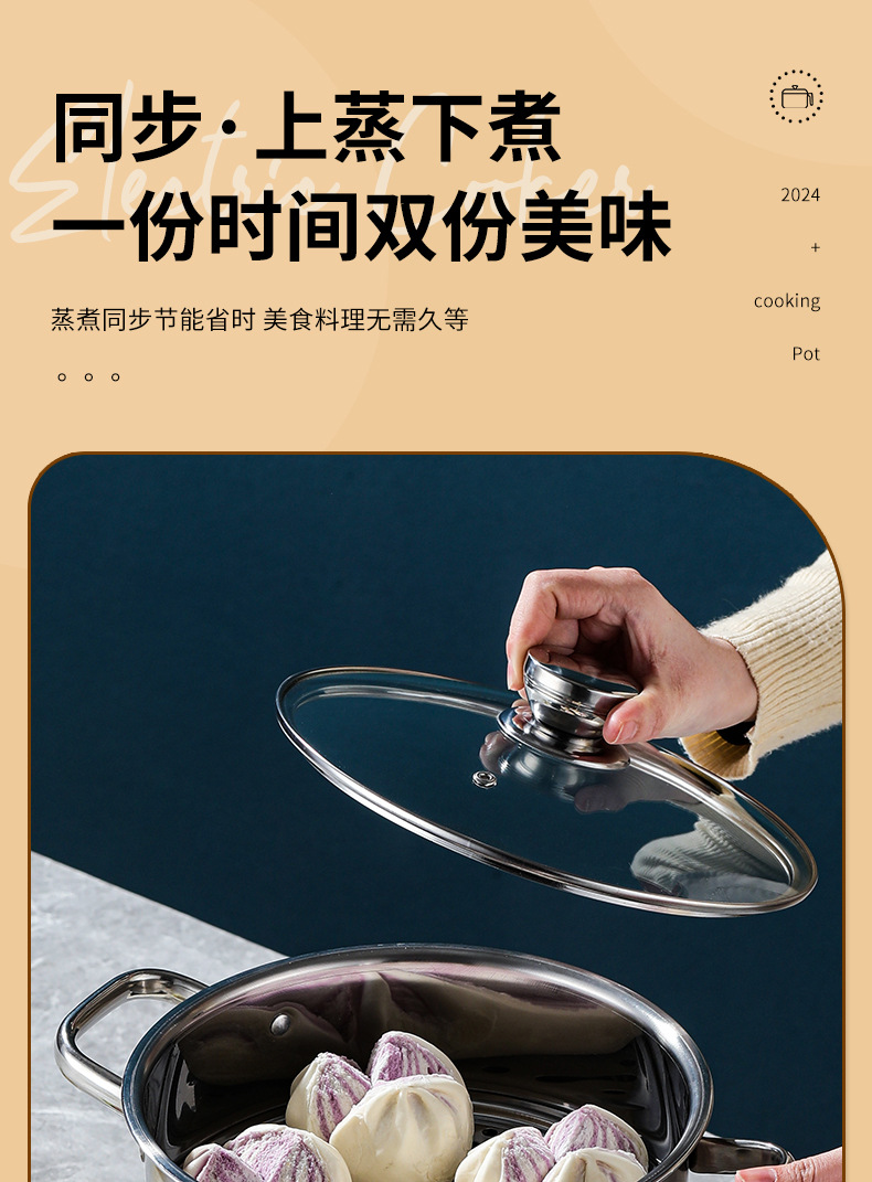 新款促销不锈钢双层蒸锅带蒸片电磁炉适用开业随手礼品不锈钢蒸锅